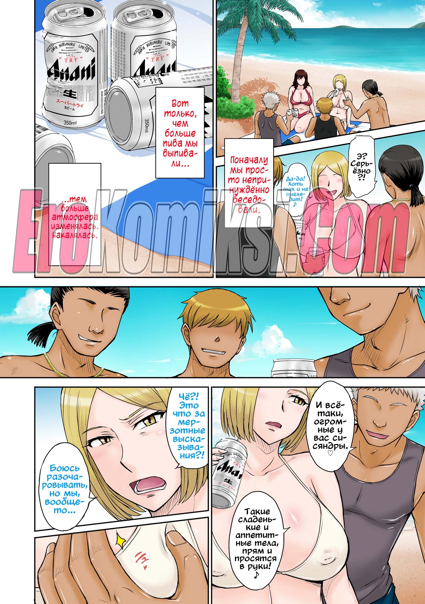 Порно комикс Островной курорт для небезопасной ебли замужних домохозяек Две горячих сисястых милфы отправились на курорт, чтобы отдохнуть от своих мужей. Там на них положили глаз несколько молодых парней, которые стали ласкать сучек, после чего мощно их выебали.