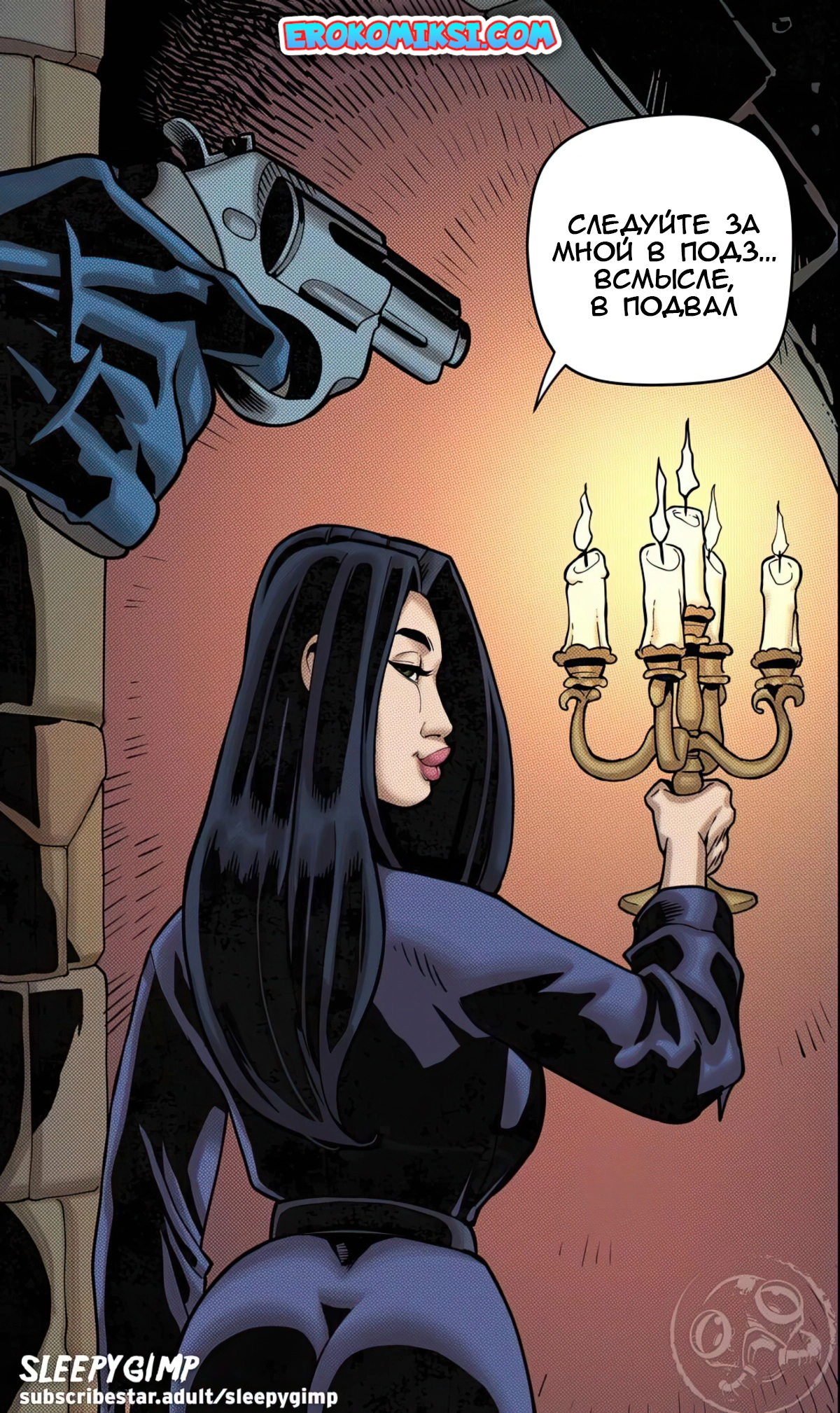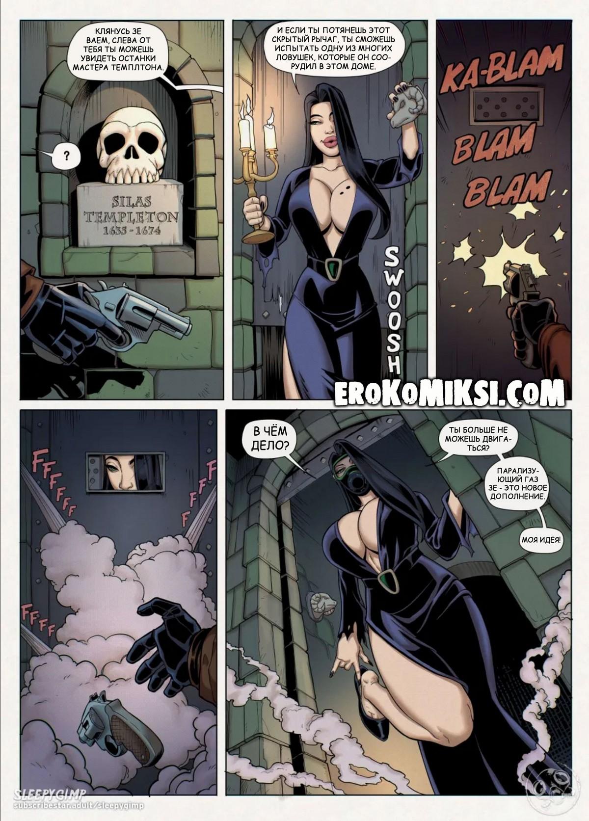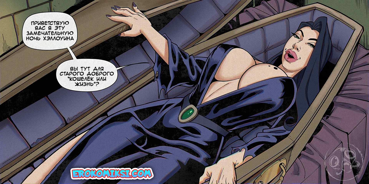 Порно комикс Отродье зла. К Эвелине заявился грабитель и не когда-нибудь, а в ночь Хэллоуина. Милфа встретила его как полагается и отвела парня в своё подземелье, чтобы заманить его в ловушку…