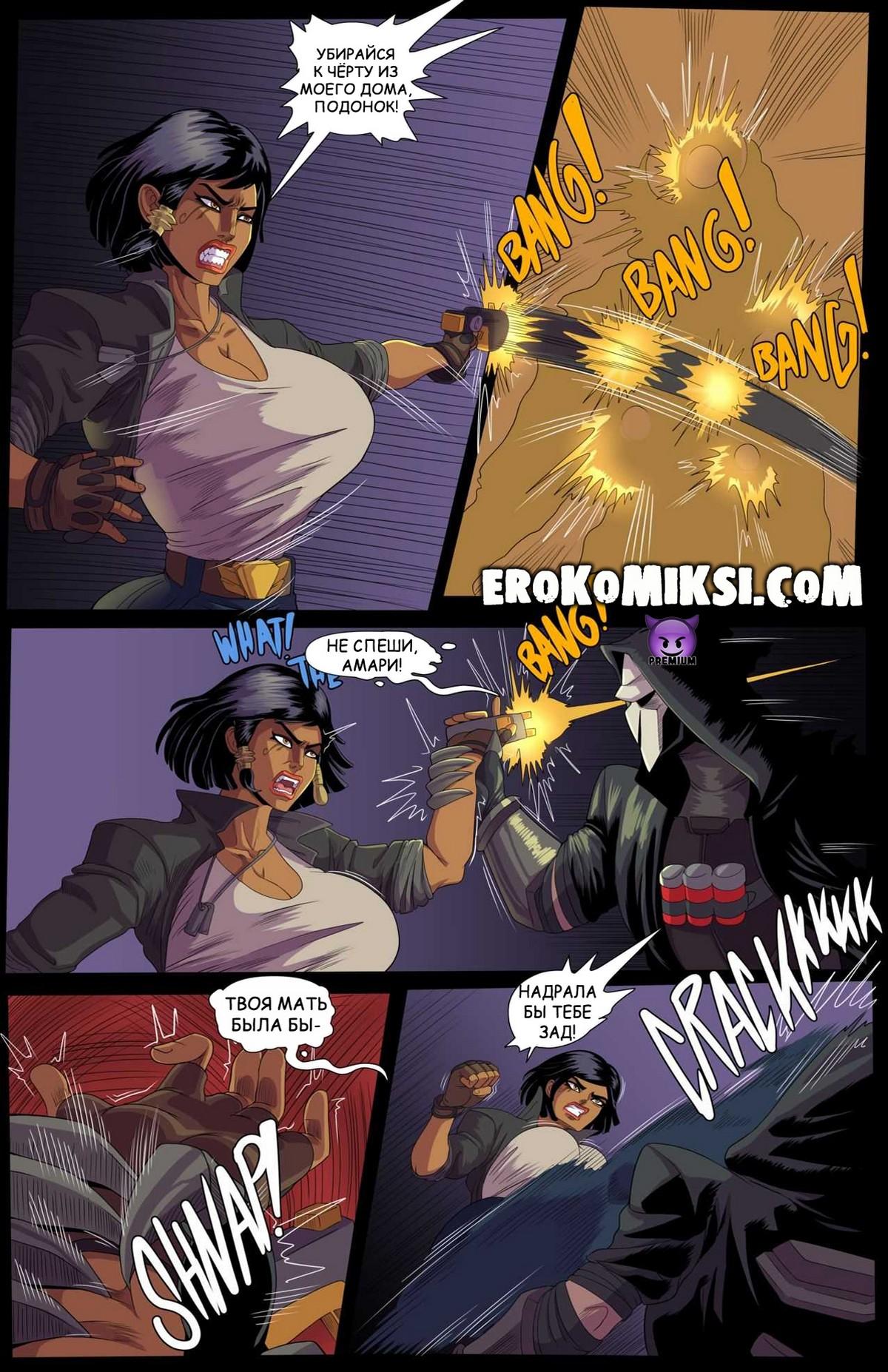 Порно комикс Овервотч. Цель — Фарра. Жнец и его отряд должны были убить Фарру, но прежде чем это сделать, Жнец делает ей визит к ней домой. После недолго разговора он насильно рвёт всю одежду на ней и трахает её тугую киску…