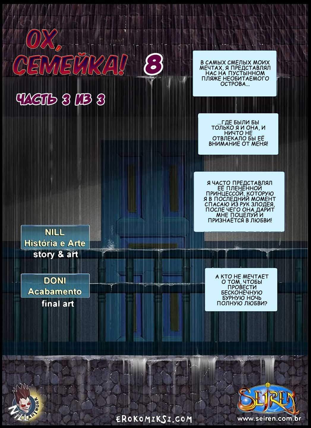 Секс комиксы Ох семейка продолжаются. В этой, уже 8 части, 3 эпизоде порно комикса рассказывается о том, как после череды случайных совпадений, Артур остался на целую ночь наедине с Анной в загородном доме. Он очень давно мечтал получить шанс остаться с ней наедине и со временем уже практически перестал надеяться, но его мечты сбылись!