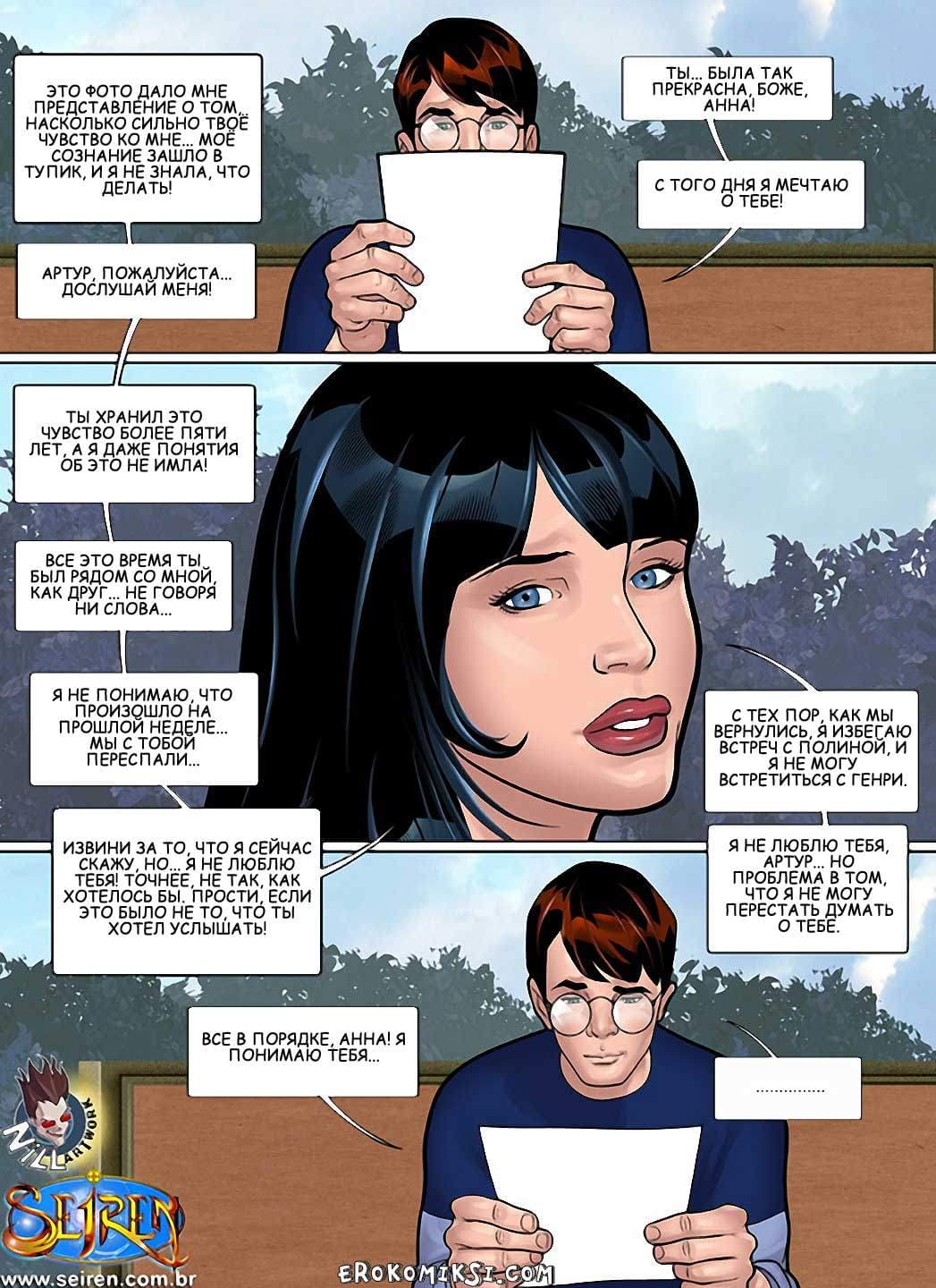 Ох, семейка порно комикс, который увлек многих! В 9 части, 2 эпизоде все начинается с того, что на вечеринке в клубе, где отмечает свой день рождения одна экзальтированная дама, безудержный групповой секс в полном разгаре. Специально нанятые мужчины вовсю трахают приглашённых на праздник дам. А в это время Анна договорилась с Артуром о встрече, чтобы сказать ему, что им не стоит переоценивать значение того, что они переспали…