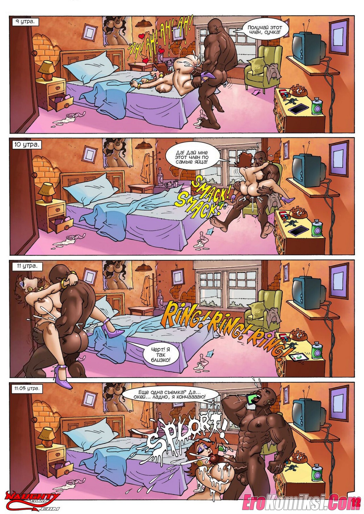 Порно комикс Озорные ночи. Naughty Nights. NaughtyComix У черного парня нет денег, чтобы платить за жилье. Он пошел искать работу и попал на съемки порно. Там он решил поучаствовать в съемках и понравился актрисам и режиссеру, который взял его на работу.