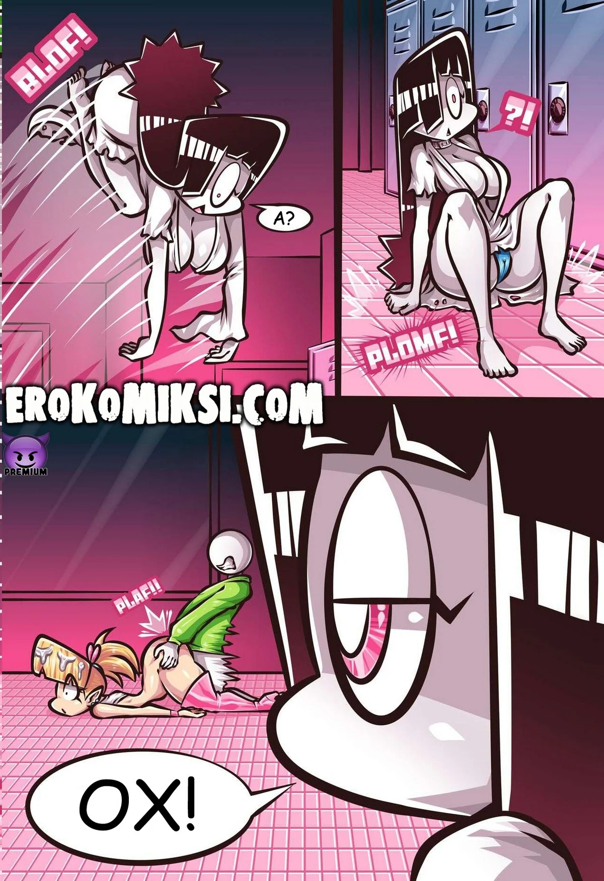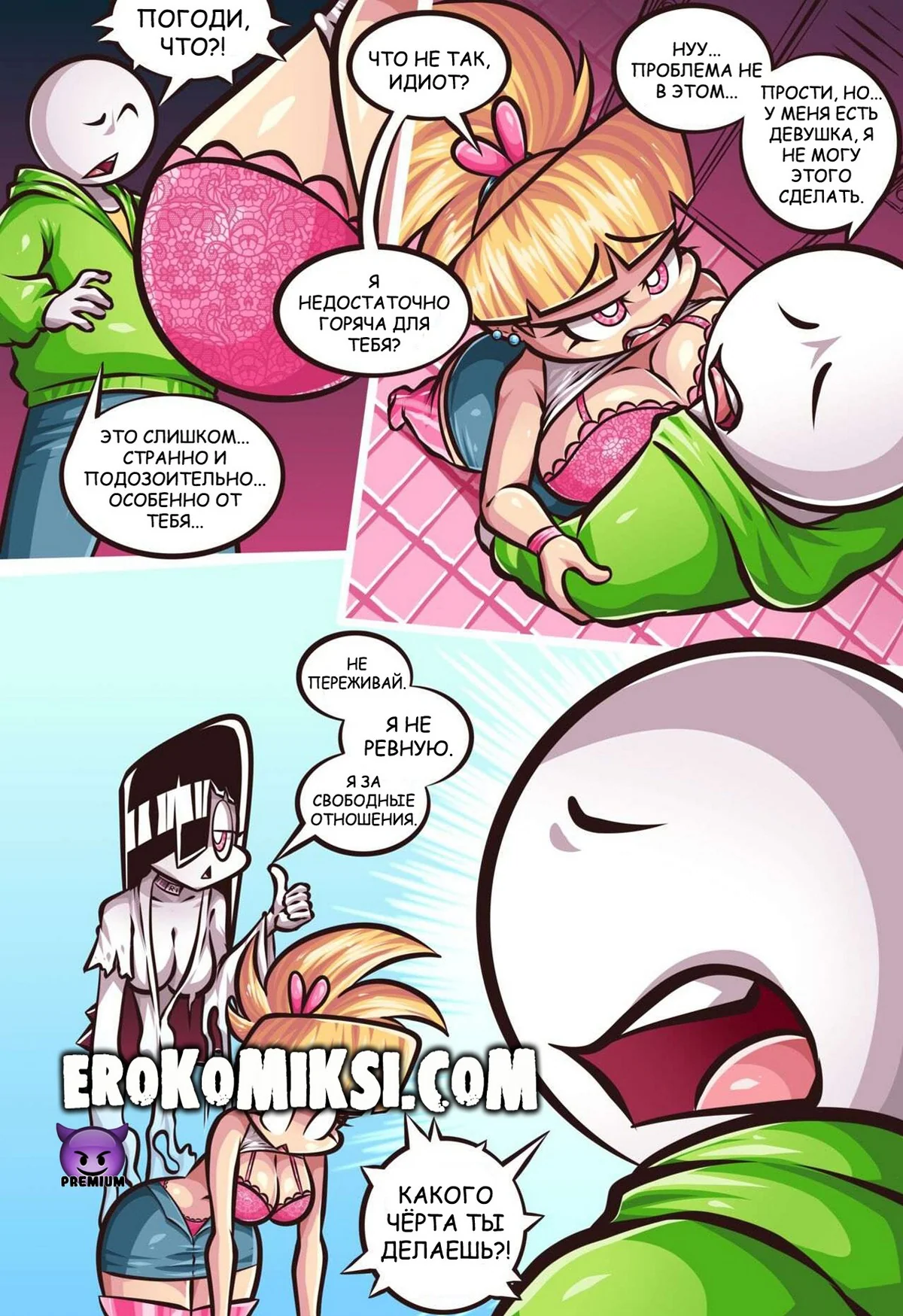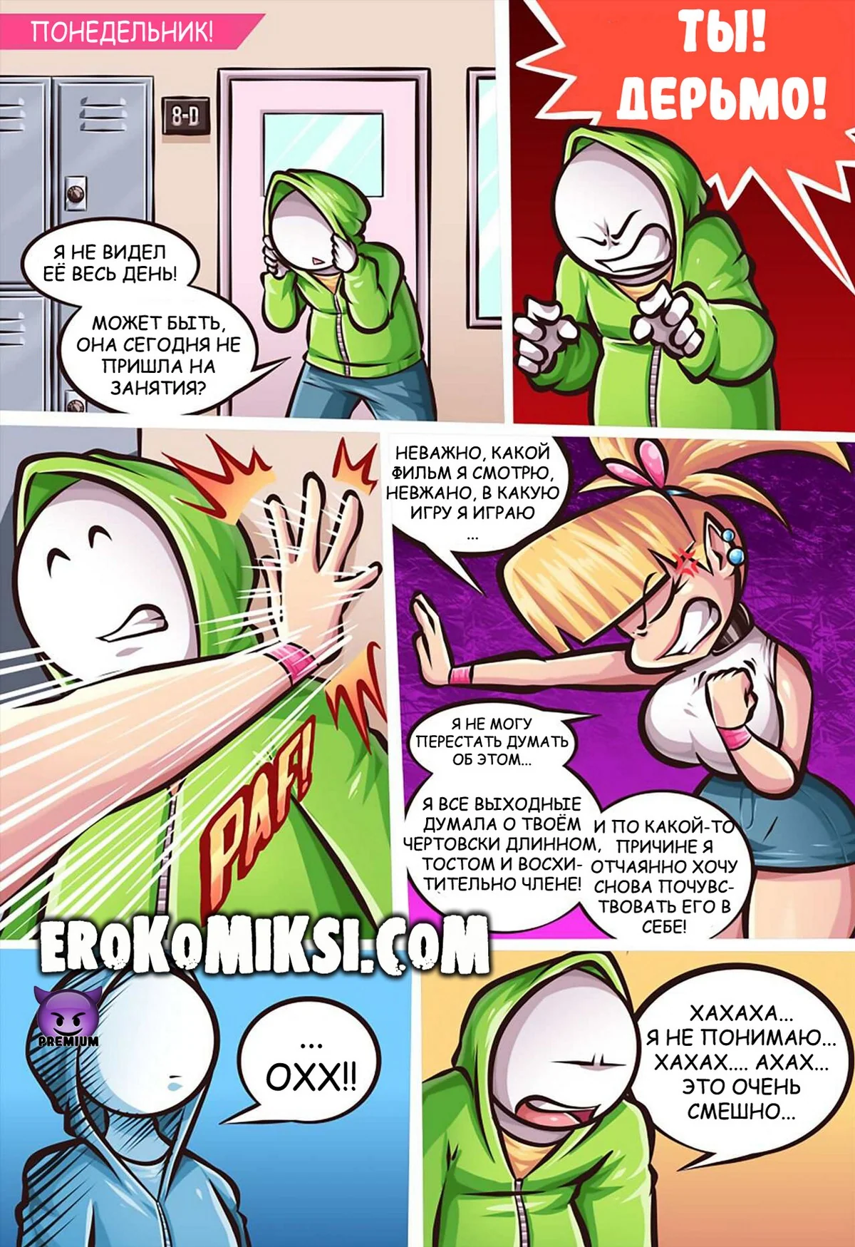 Порно комикс Паранормальное удовольствие. Часть 2. Нашего главного героя прессует его одногруппницу Хлоя — сексуальная и очень наглая девушка, которая имеет привилегии в университете из-за того, что ей отец директор. Призрак-подруга решает помочь герою и вселяется в неё для того, чтобы он отымел её во все дыры…