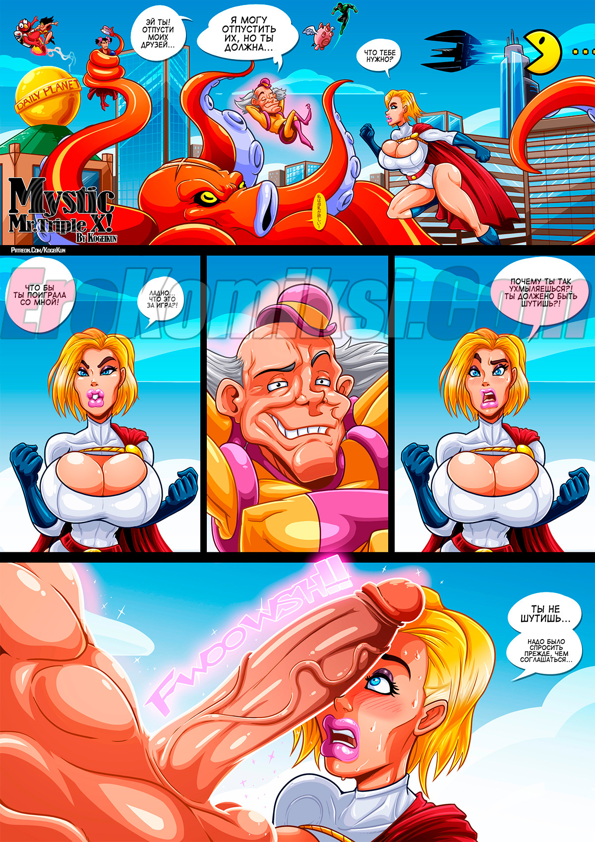 Мир снова захватило зло, но наши супер герои спасут всех. Но на этот раз Злодей оказался слишком силён и схватил почти всех героев, надежда осталась только на «Пауэргёрл», которая заключила сделку, чтобы освободить её друзей… А какие условия выполнение этой сделки были, можно узнать дальше в комиксе…