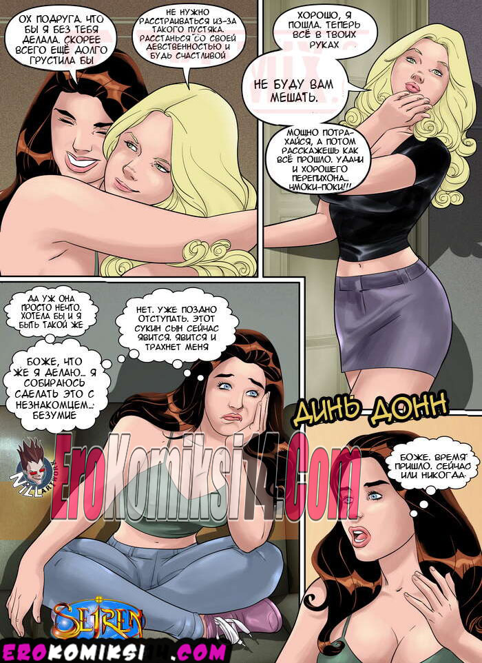 Порно комикс Первые утехи. Часть 2 First Caresses. Часть 2. Seiren Горячая аппетитная дама узнала о том, что ее любимый ей нагло изменил, поэтому ее подруга из лучших побуждений решила помочь ей расслабиться. Она пригласила своего дружка, обладающего толстым членом, чтобы он жестко трахнул ее подружку и помог ей забыть на некоторое время все проблемы.