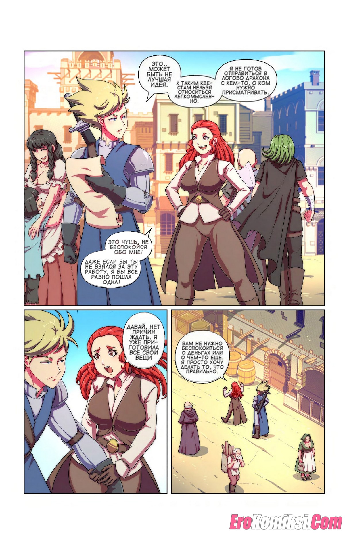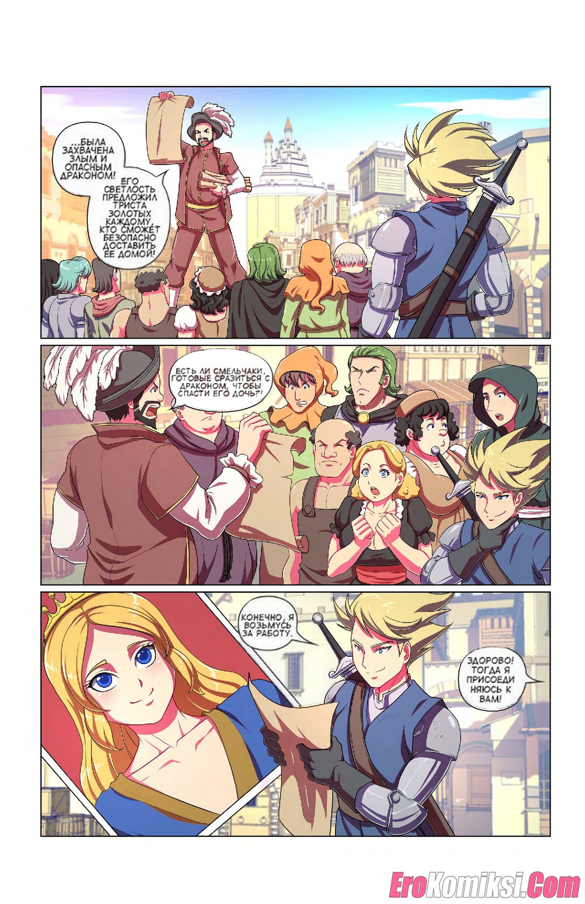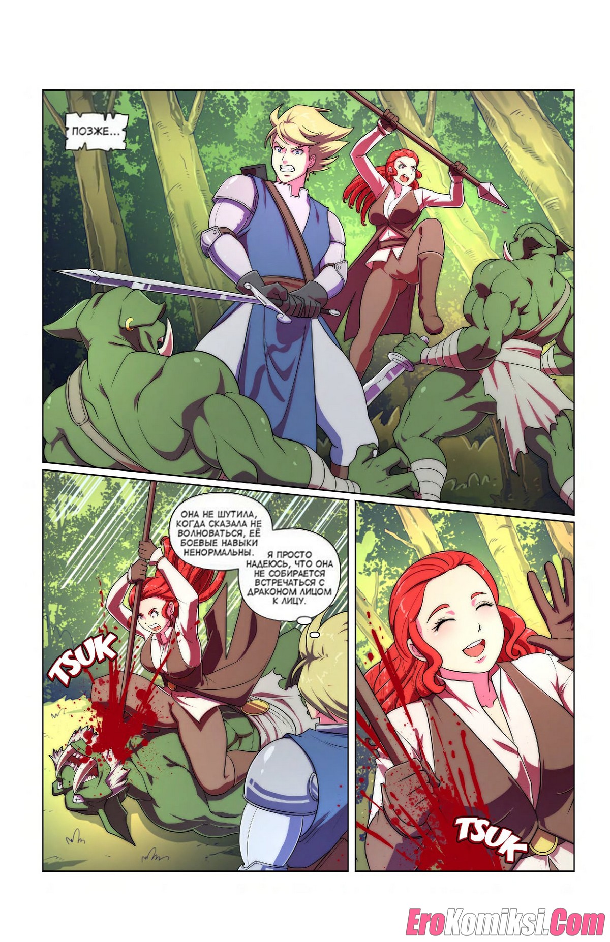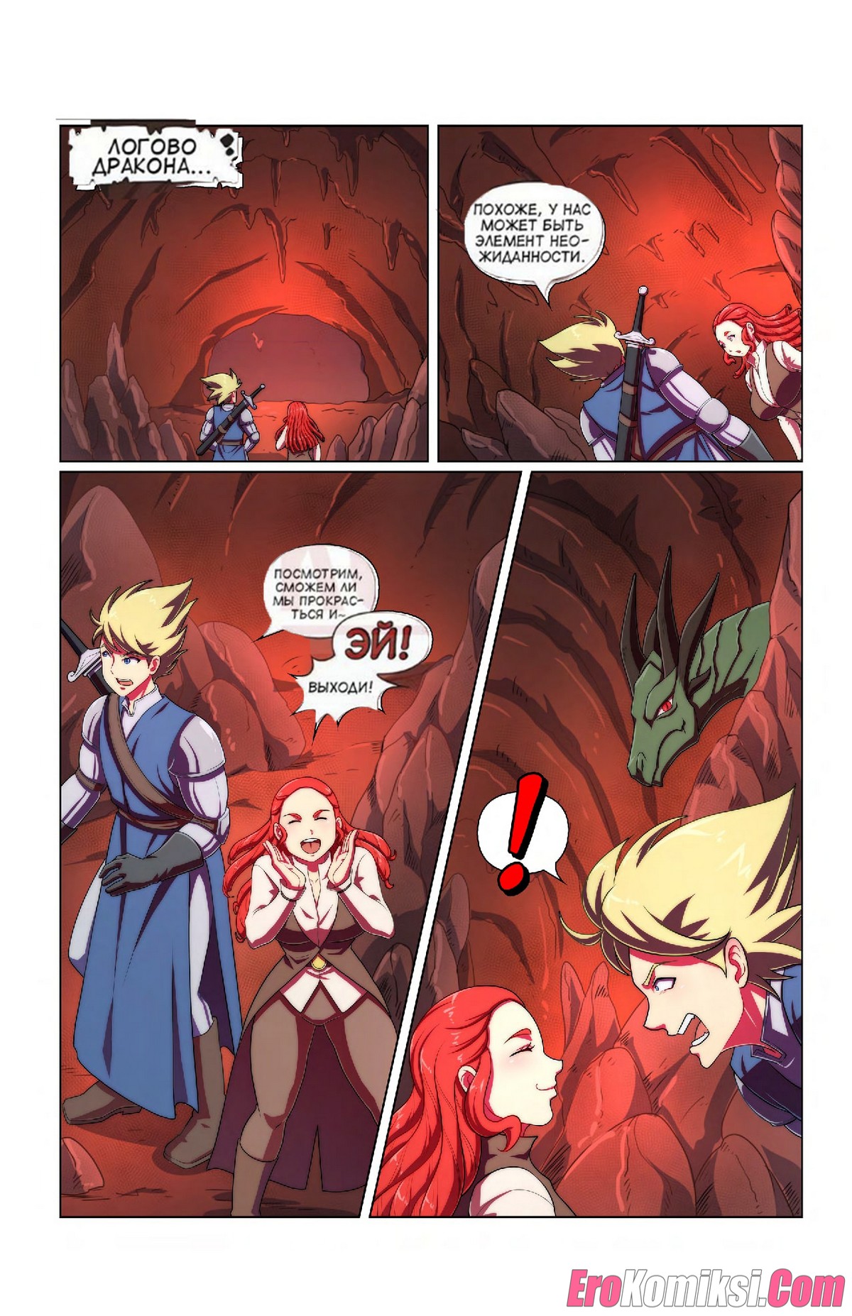Порно комикс Пленник дракона. Dragons Captive. Bokuman Горячая сисястая красотка сражалась со своим дружком против дракона. Затем они решили расслабиться и повеселиться. Красотка осталась голой и стала сосать большой хуй парня, после чего дала ему себя выебать.