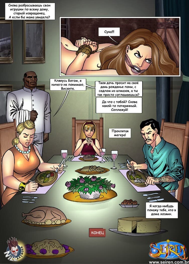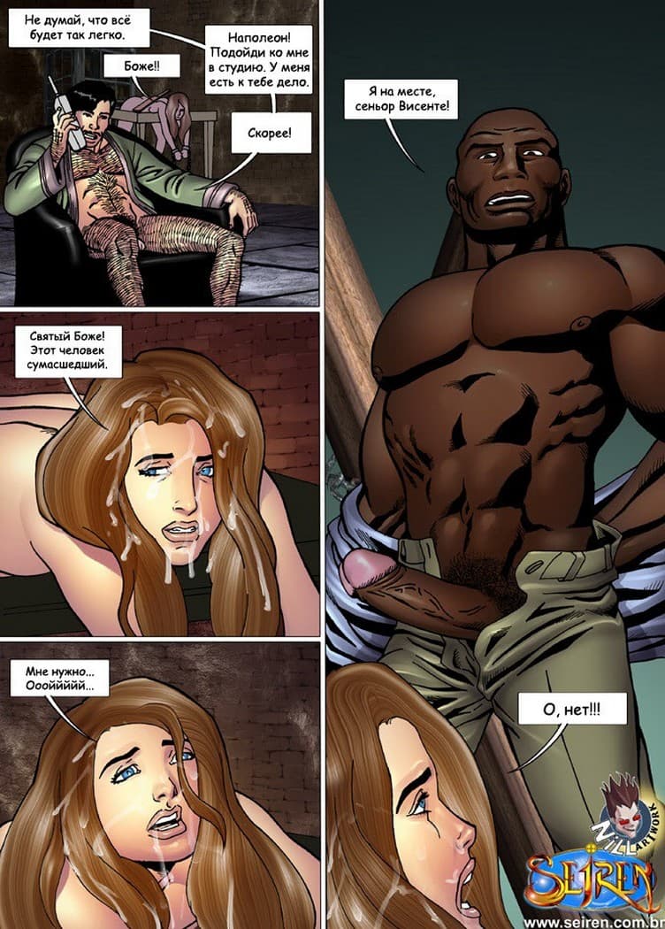 Жестокий порно комикс о несчастной красотке, которую насиловали во все дырки два мужика, в том числе и негр, снимая всю эту безумную еблю на видео.