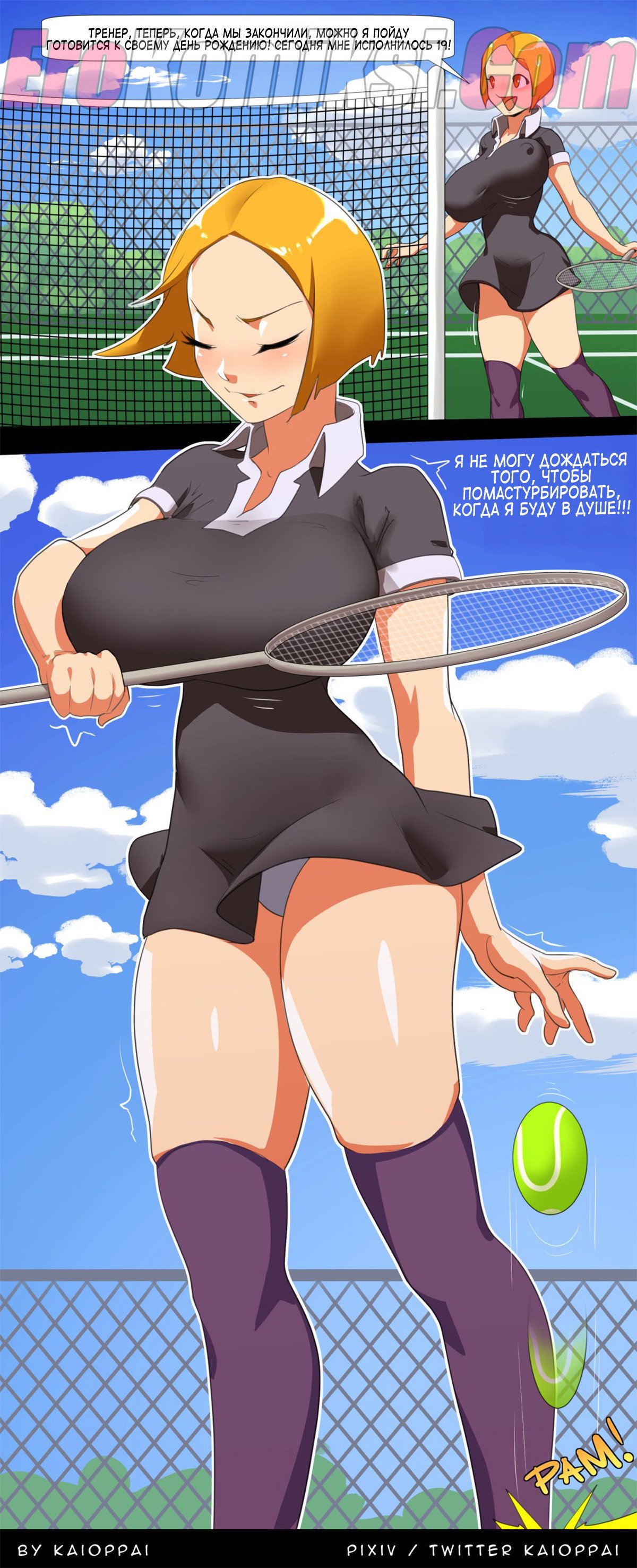Нашей героине исполнилось 19 лет и сказав об этом своему тренеру она пошла принять душ и по мастурбировать. Как только она расстегнула лифчик появился её тренер, чтобы вручить ей свой похотливый подарок…
