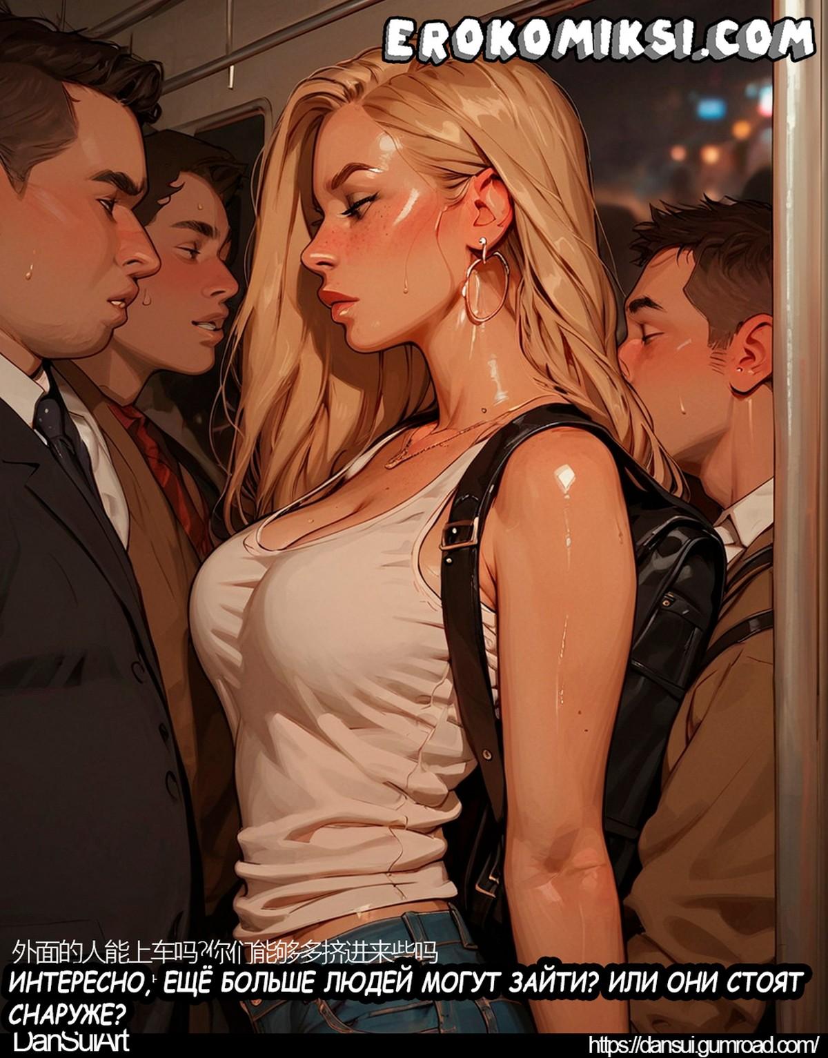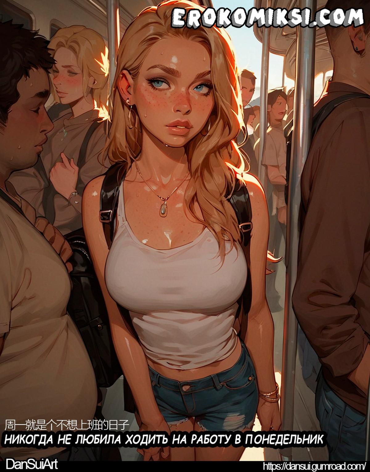 Порно комикс Поездка на работу. Горячая блондинка каждое утро едет на работу в тесном поезде, но она совсем не против, ведь её извращённый разум и тело требует таких же мужчин, который не против трахнуть красотку прямо в поезде…