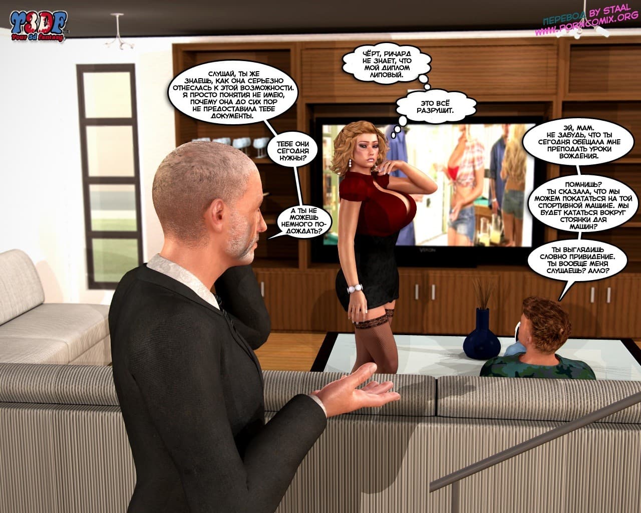 Инцест комиксы пойманные продолжаются, и в данном сюжете вы станете свидетелем того, как озабоченный парниша становится свидетелем того, как его зрелая мамочка с большими дойками изменяет отцу с его начальником. Женщина позволяет мужчине трахать ее словно конченную шлюху. Увиденное, юноша решает использовать в собственных целях, а точнее для вымогательства у взрослой мамашки удовлетворения своей похоти…