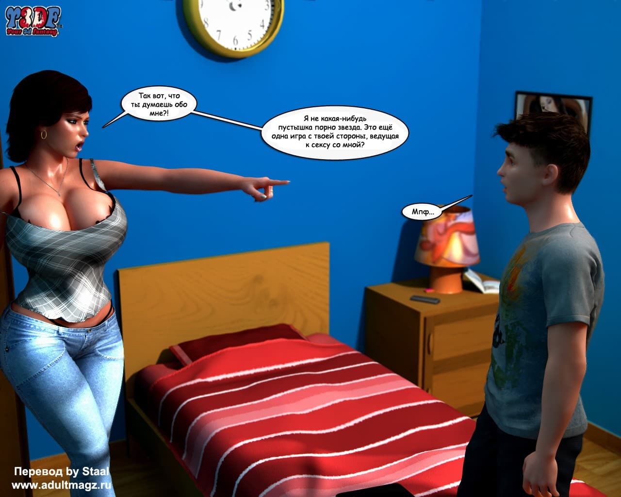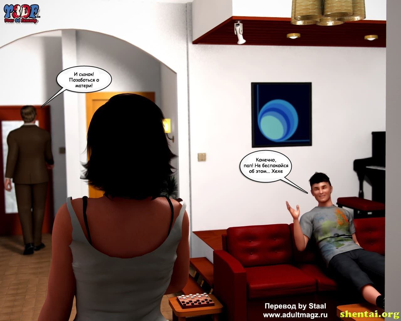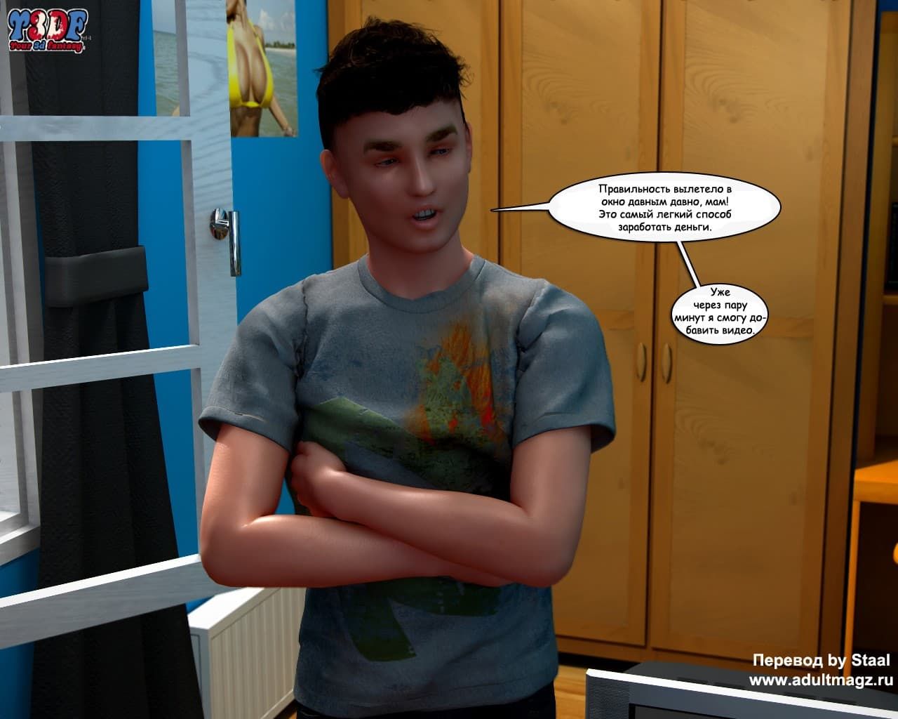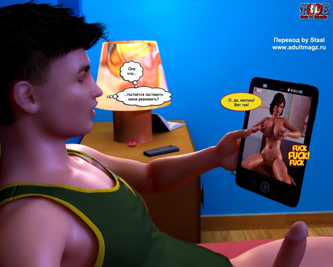 Порно комиксы инцест 3д продолжают длинную и возбуждающую историю о взрослой мамаше с большими дойками, которую никак не оставит в покое ее похотливый сынок. На этот раз наглец установил камеру наблюдения в спальне родителей, чтобы подсматривать за самым интересным. Но позже женщина обнаруживает хорошо замаскированное видео устройство. Но для нее это ничто не меняет, ведь сексуальные домогательства не прекращаются, более того ситуация резко принимает серьезный оборот, ведь зрелая мамка оказывается, залетела…