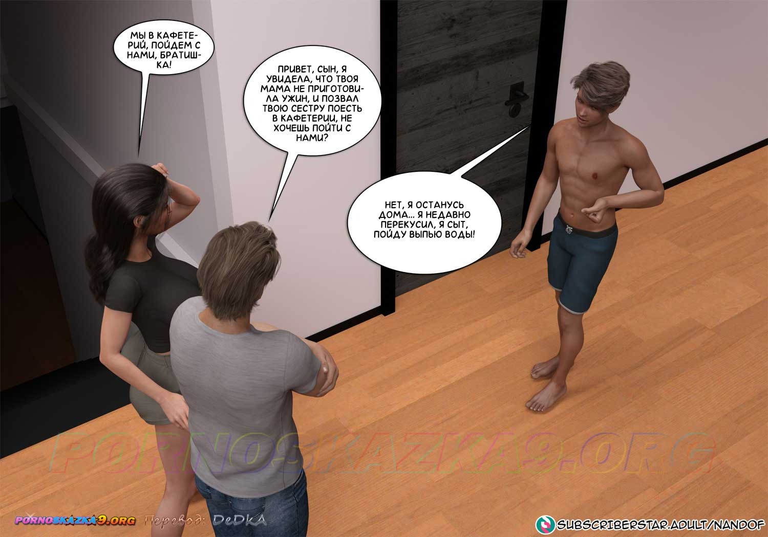 Порно комикс Помощь матери. Часть 3. Келли надеялась, что Крис забудет о том, что она обещала прийти к нему в комнату и сделать для него то же самое, что он сделала для нее на кухне, но после того, как Дженни ушла с отцом в кафетерий, Крис сам пришел в комнату Келли, чтобы напомнить ей о ее обещании…