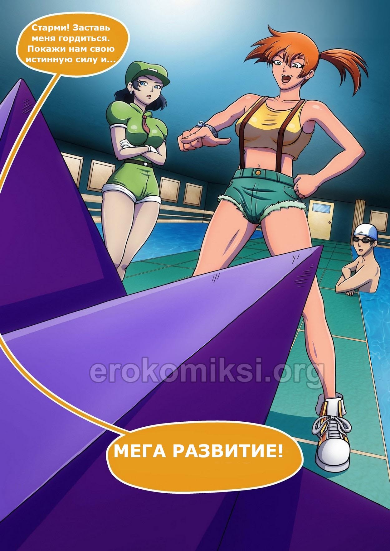 Порно комикс «Представление Мисти» расскажет историю о том, как очень сексуальная тренер покемонов по имени Мисти занимается тренировкой своего самого сильного бойца. Они уже готовятся к тому, чтобы та перешла на следующий уровень эволюции. Но тренер не ожидала, что когда ее звезда перейдет на следующий уровень, она превратится в очень сексуальную девушку с большой грудью, и захочет заняться сексом со своим тренером. Они начинаю трахаться в бассейне.