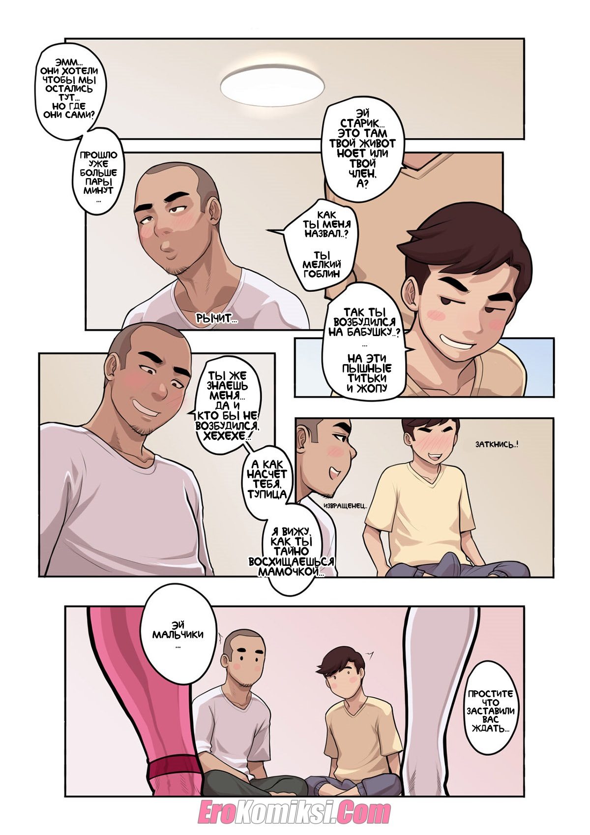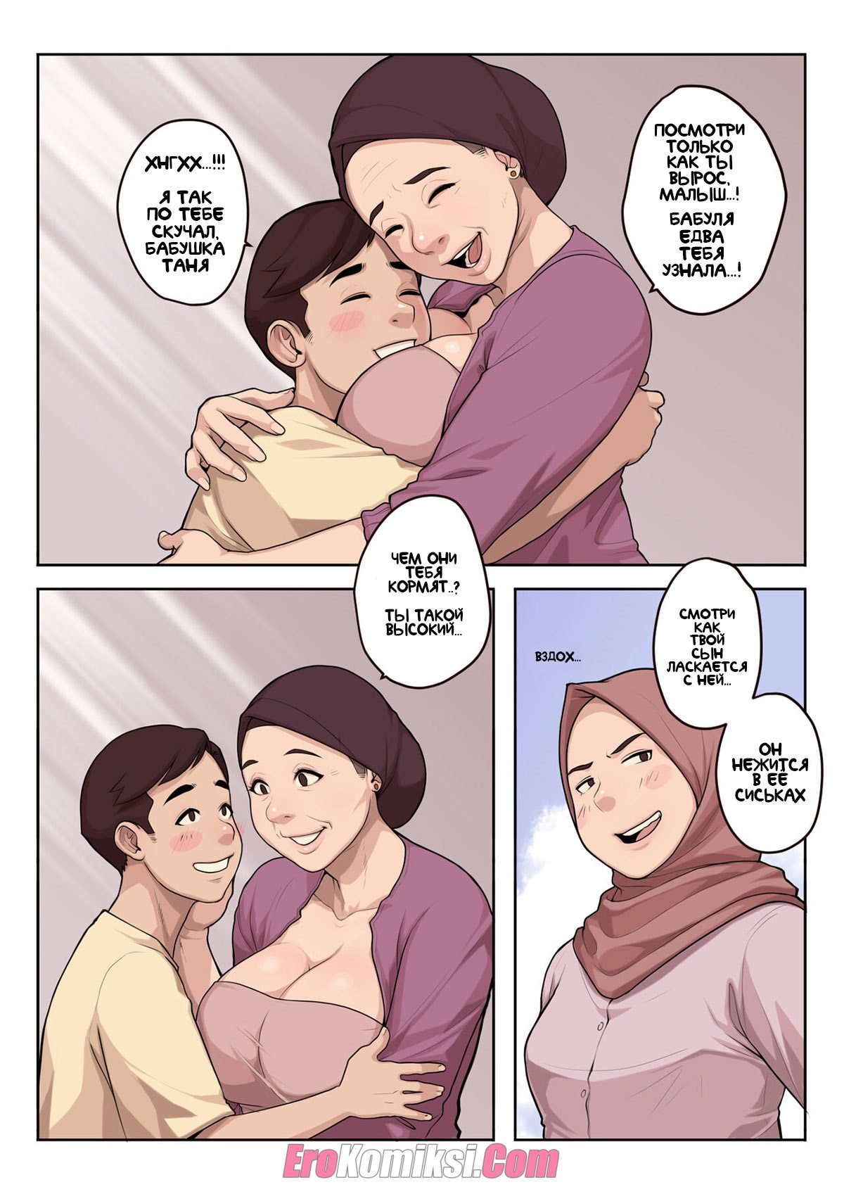 Порно комикс Прерывание последнего поста. Бабушка Татьяна и Мать Мелл решили устроить сыну Кевину и Джефу сюрприз на Ифрат. Они отужинали и отошли. Джеф, сын Татьяны не понимает что происходит, как и сын Мелл. Они уже изрядно напились и вдруг девушки зашли в комнату полуобнаженные. Таня и Мелл решили отдаться своим любимым. Это их семейная традиция…