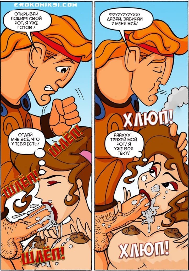 Порно комиксы мультики Дисней расскажут историю о Геркулесе, его возлюбленной Мег и подлом Аиде. Красавица Мег являлась рабыней Аида, и по его желанию ей приходилось подставлять свои дырочки под член ненасытного бога, в том числе и узенькое отверстие ануса. Но это не означало, что она удовлетворяла Геркулеса, такой активной и сексуальной девушки хватало на обоих героев…
