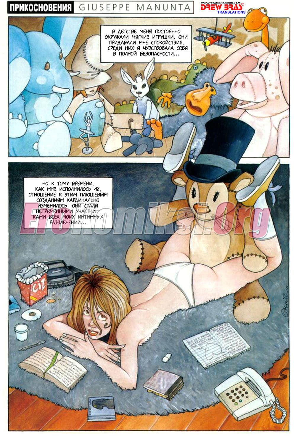 Manunta похоже решил пройтись по всем сексуальным девиациям. Придется и нам с вами проследовать его путем. На этот раз он знакомит нас со сложным случаем фетишизма, особенно приятным для представителей сильного пола. Название скорее переводится, как «Объятия», но только я не нашел, как в русском языке можно назвать объятия кистью, пальцами, (ничего кроме рукопожатия в голову не пришло) поэтому остановился на ни к чему не обязывающем «Прикосновения».