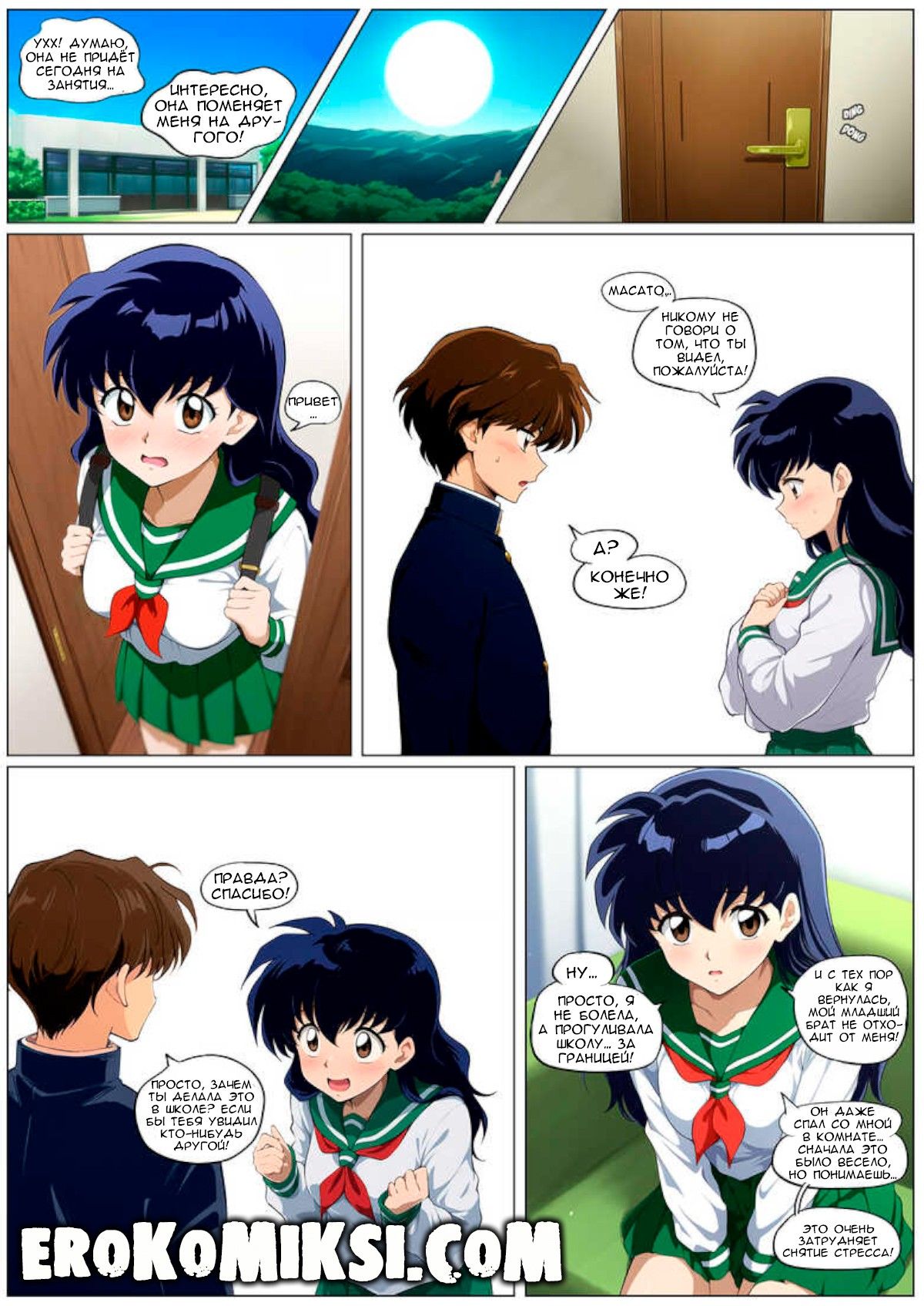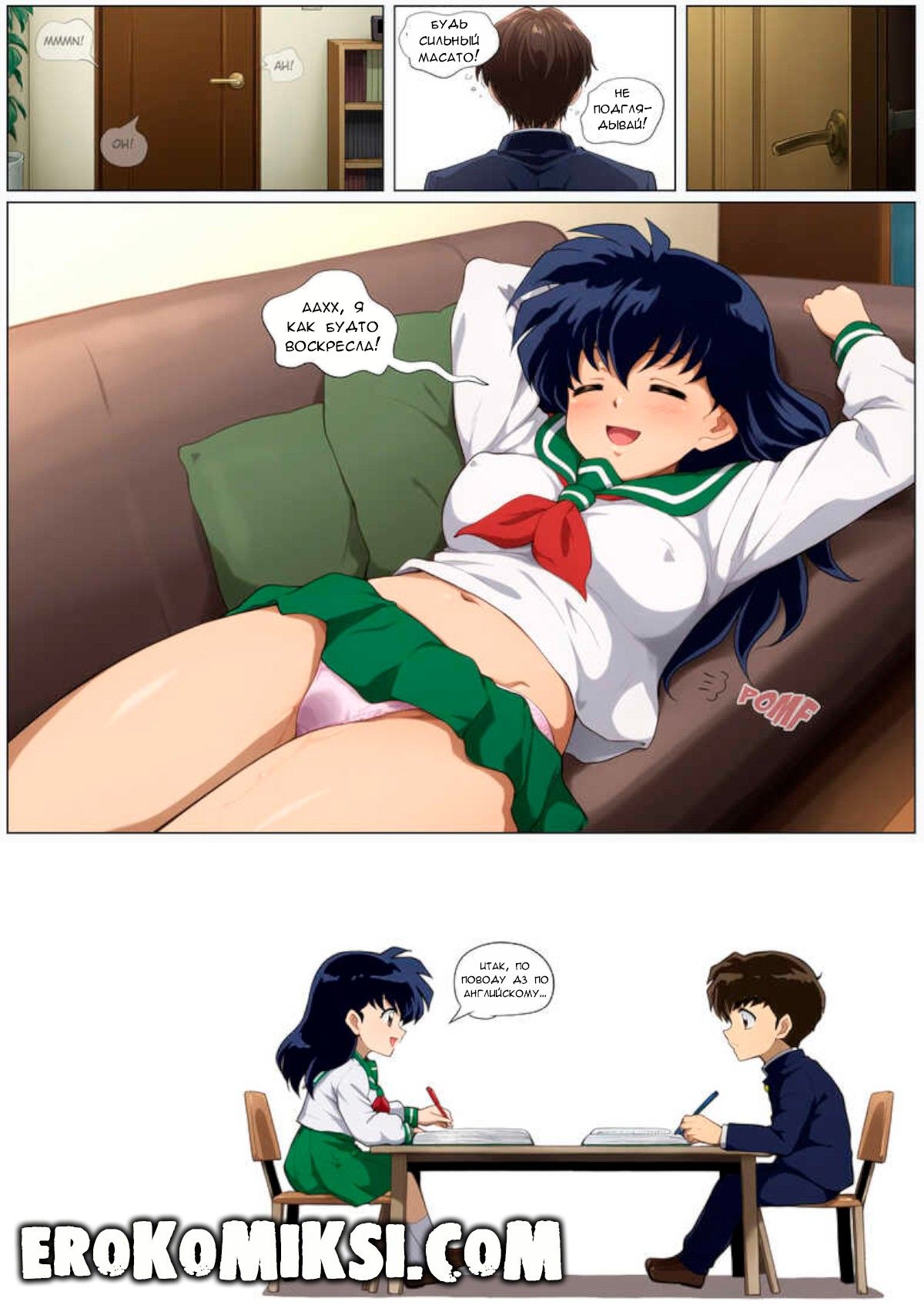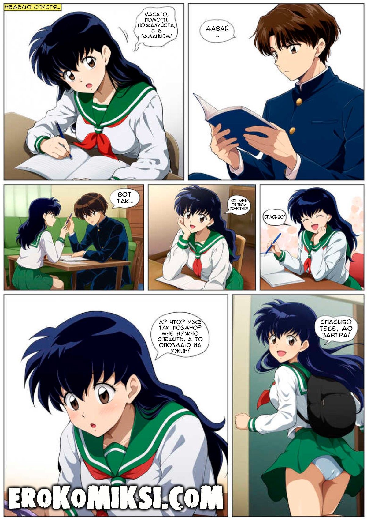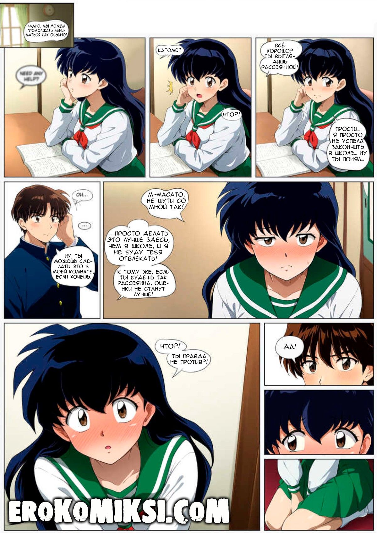 Порно комикс Приятель по учебе. Кагоме пропустила много занятий по причине «болезни» и поэтому вынуждена заниматься дополнительно с Масато, но никто не знает, что прежде чем приступать к учёбе, они снимают стресс друг друга при помощи секса…