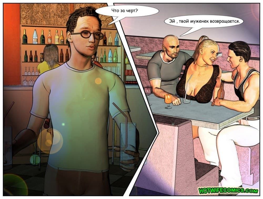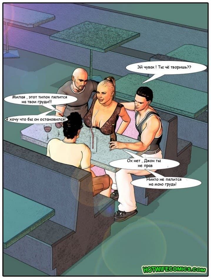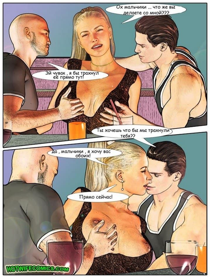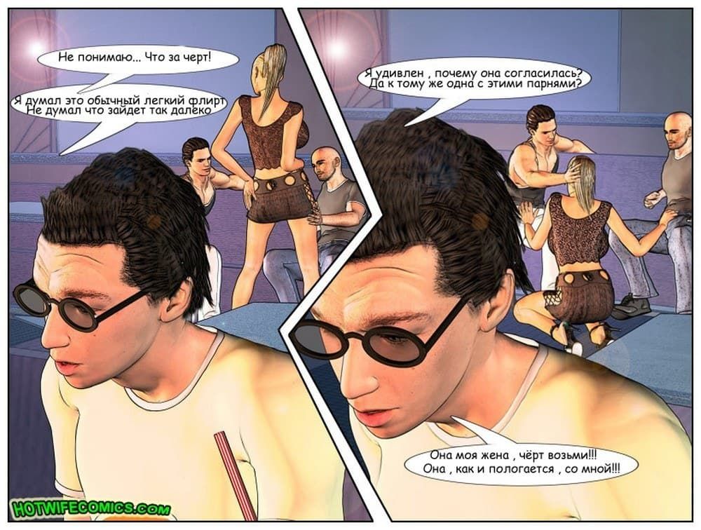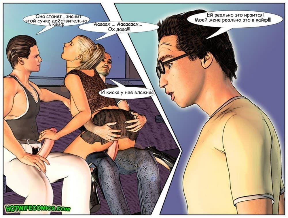 Эта история об измене и бурном групповом сексе. Грудастая жена отдалась двум незнакомым чувакам в клубе, не обращая внимания на активные протесты своего мужа.