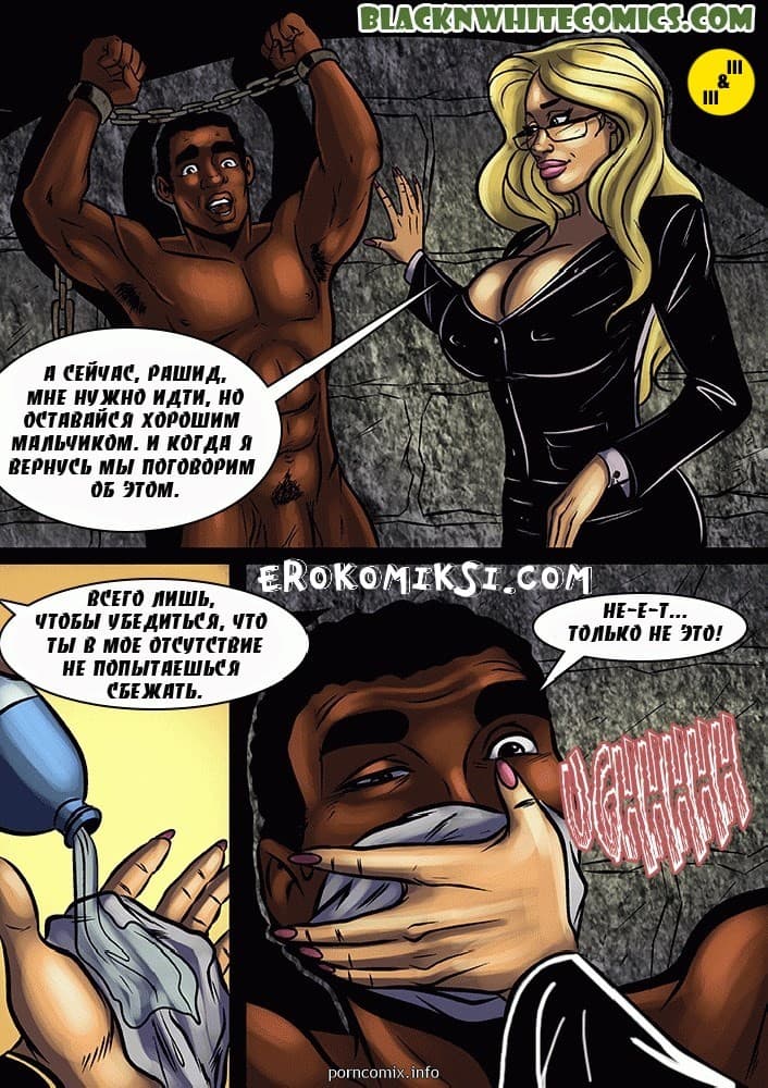 Порно комикс Пропавший. Откровенные порно картинки ебли в комиксе «Пропавший» покажут, как один чернокожий парень после бурного вечера в баре, на утро оказался голым в каком-то темном подвале, на его удивление он еще был пристегнут наручниками. Перед ним сидела аппетитная белая дамочка, весьма сексуальной наружности. Видимо она была причастно к тому, что его приволокли сюда. Но зачем? Почему это случилось? И что хотела эта сучка? Вскоре парень понял это, когда сиськастая красотка ухватилась за его габаритный член…
