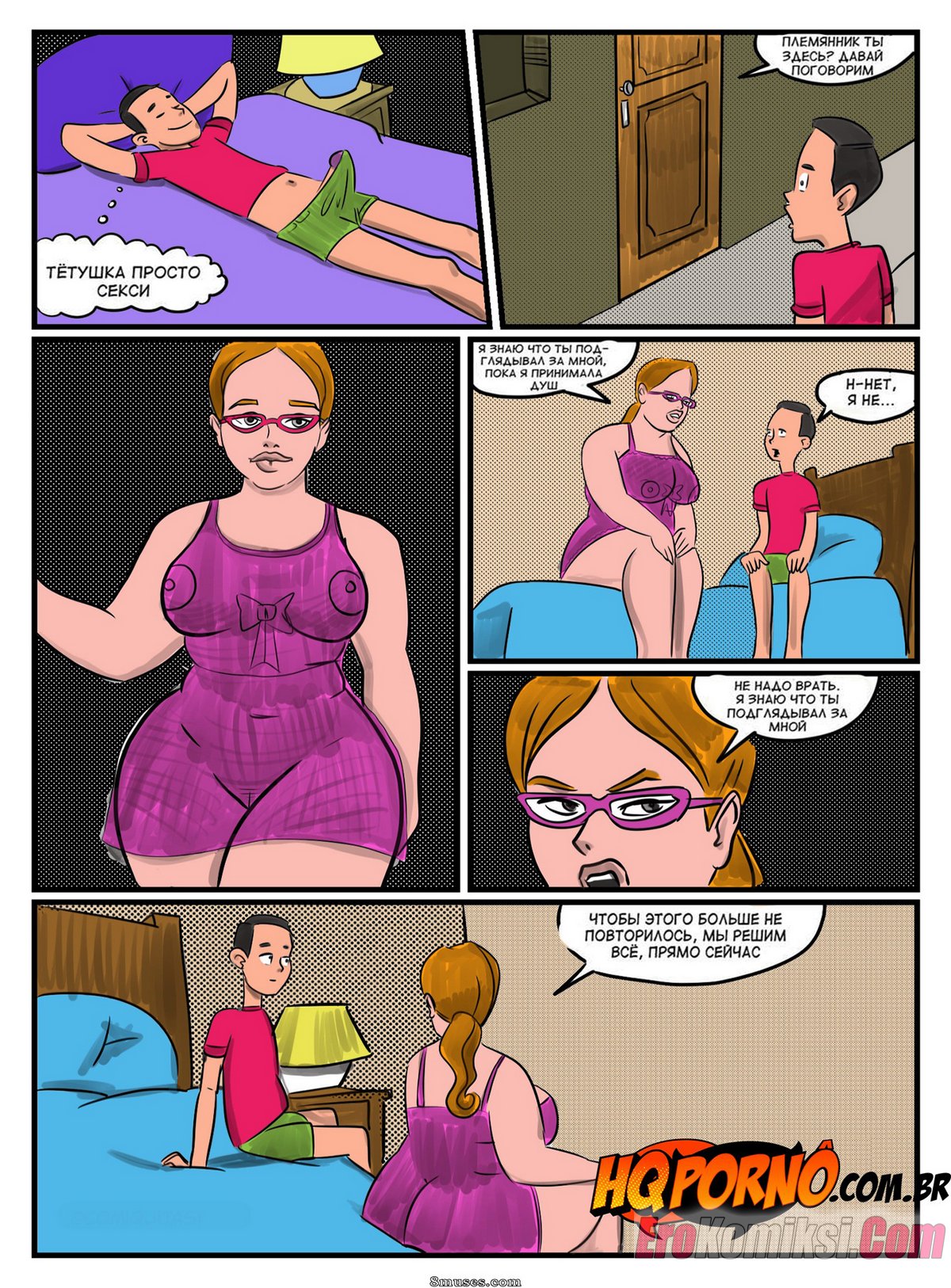Порно комикс Пухлая Тетя. Часть 1. Шаловливый племянник. Titia Gordelicia. HQPorno. TZComiX Сисястая милфа брюнетка приехала в гости к своей сестре и ее сына. Сучка пошла принять душ, а за ней стал подсматривать племянник. Милфа пошла к нему в комнату и отсосала хуй парня, после чего он кончил ей в ротик.