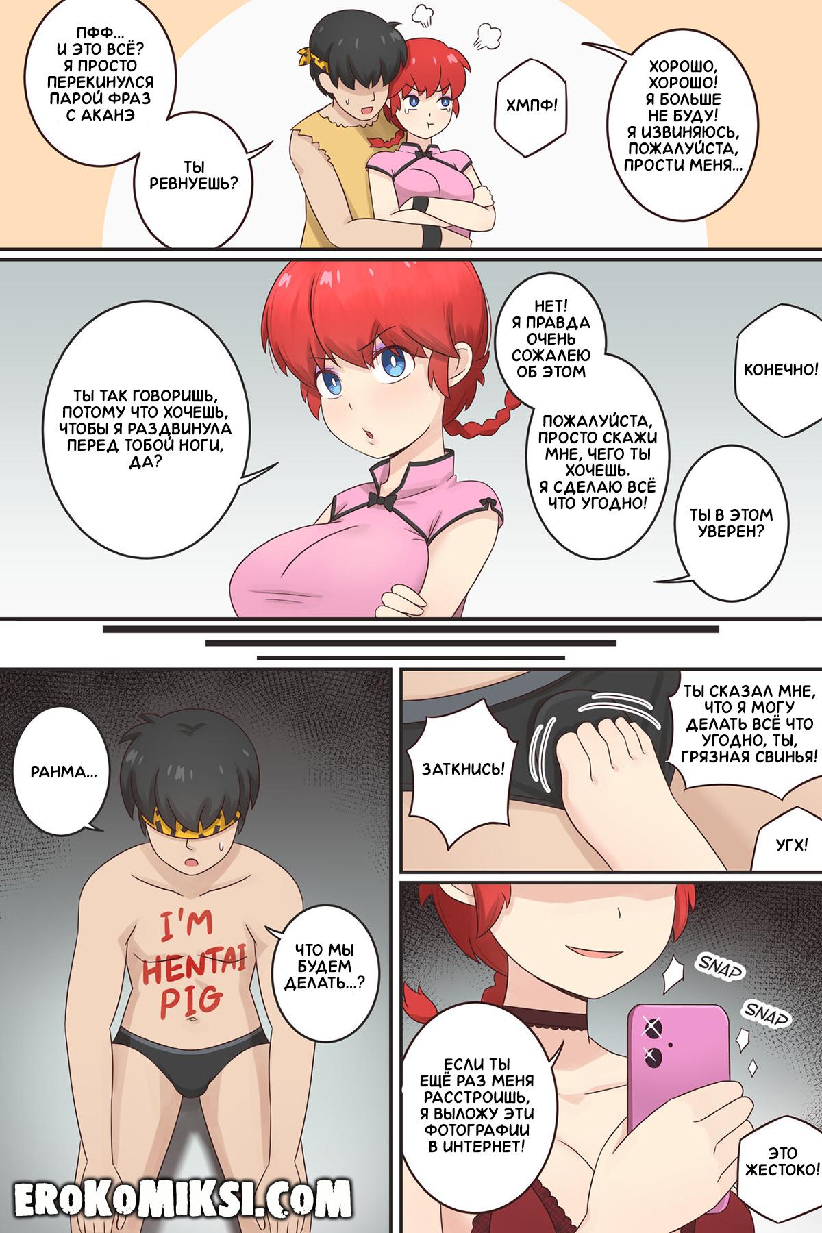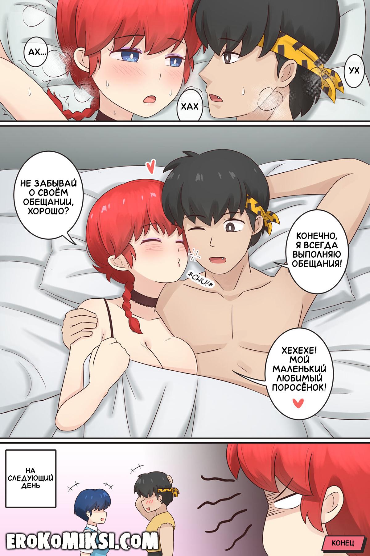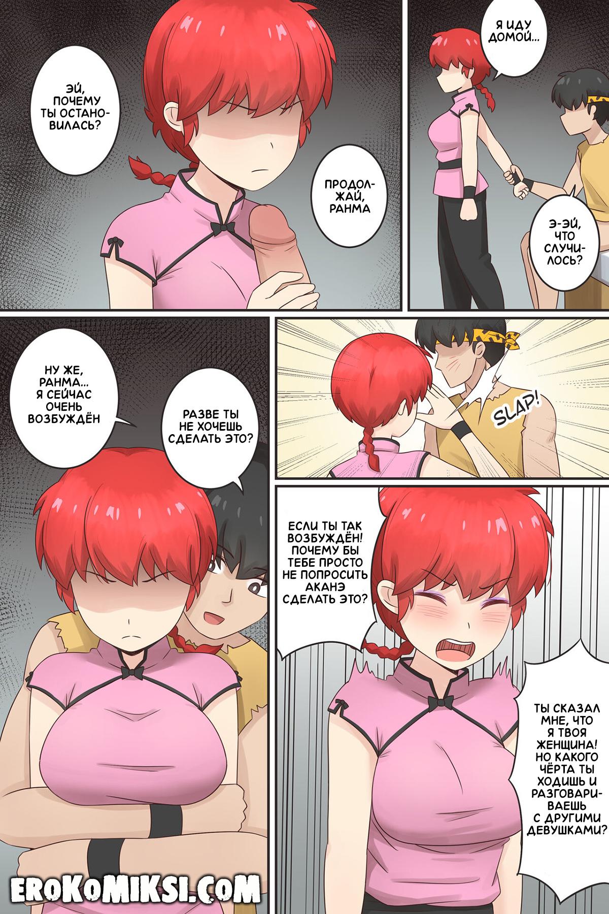 Порно комикс Ранма. Соперники-Любовники. Часть 2. Ранма начинает отсасывать член Рёги, но внезапно останавливается, так как вспоминает, что Рёга флиртует с другими девушками. Рёга уверяет Ранму, что просто болтает с другими девчонками и ничего более, и повода для ревности нет. Ранма очень злится из-за своей ревности, но всё же успокаивается и вновь даёт Рёги трахнуть её киску и кончить в неё.