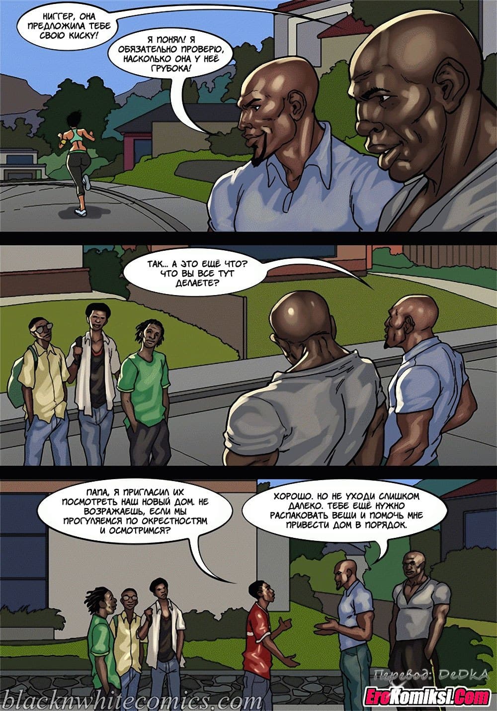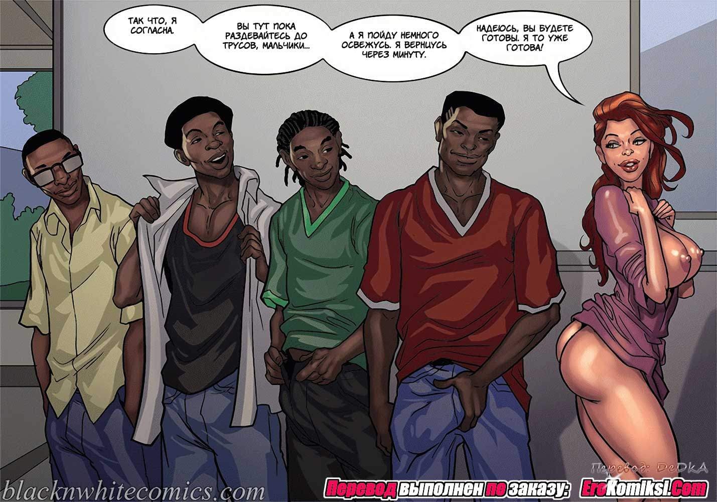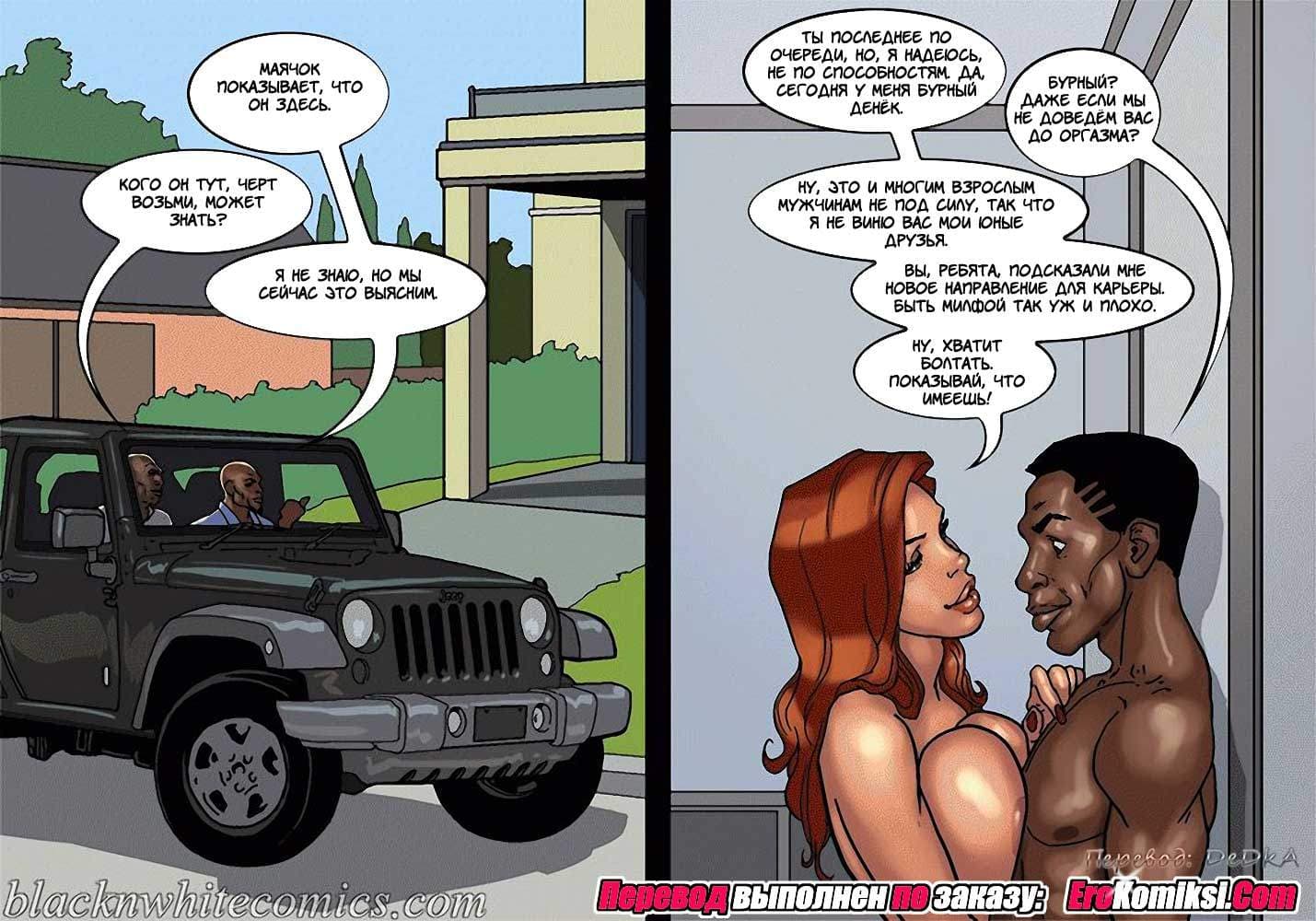 Порно комикс Распутные мамаши расскажет о том, как чернокожий парень вместе с отцом переехал в район города, где живет одни богачи. В первый же день к парню пришли его чернокожие дружбаны и компания отправилась осматривать окрестности. Вскоре они стали свидетелями того, что одной зрелой красотке доставили холодильник, а вот внести его в дом отказались, сказав, что она оплатила только доставку. Парни решили предложить аппетитной даме, которая оказалась порно звездой, свою помощь…