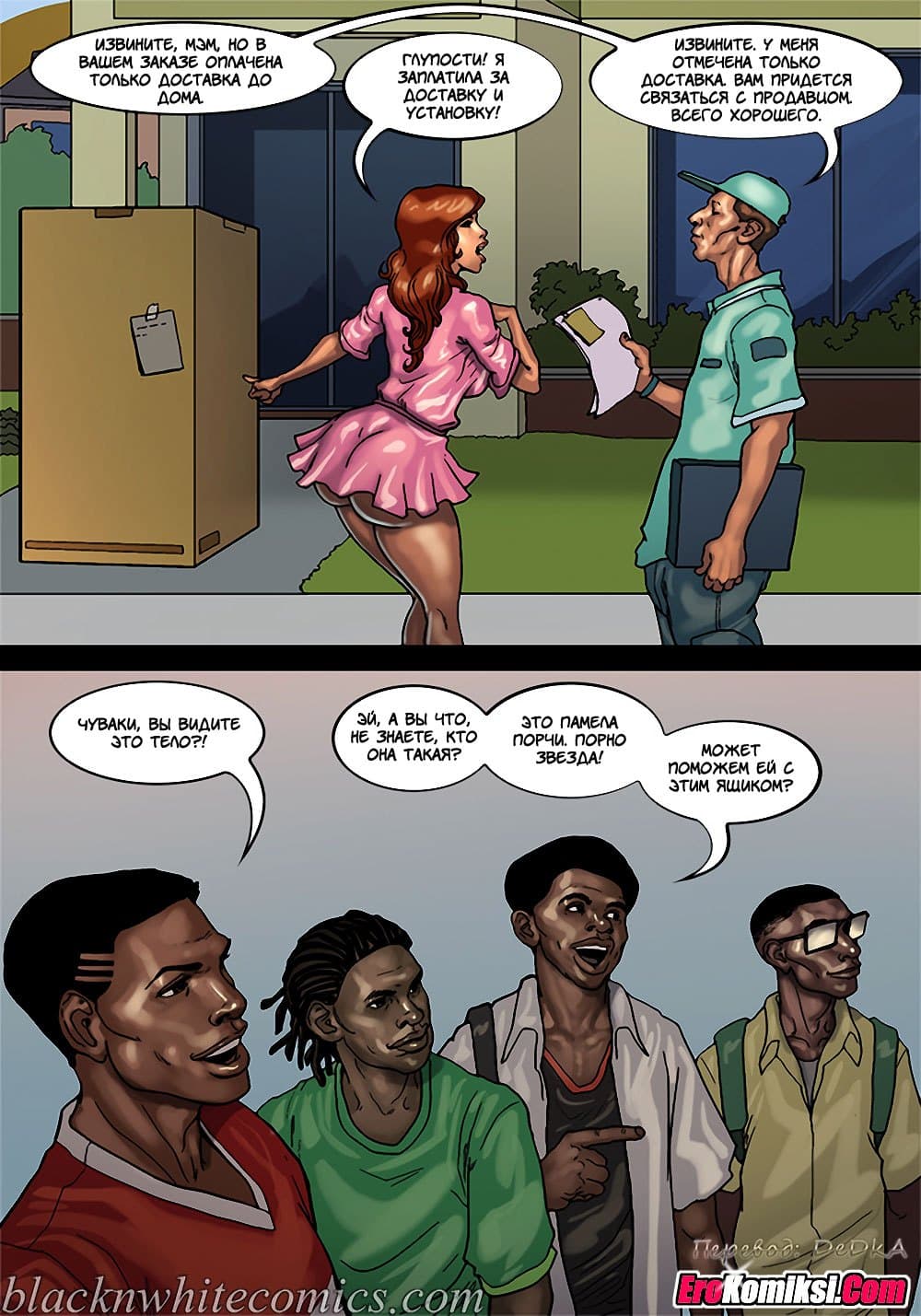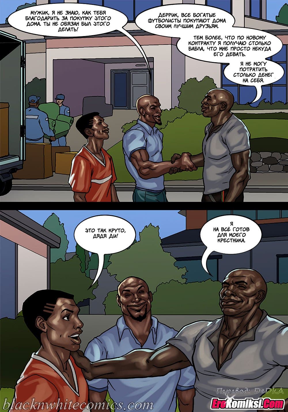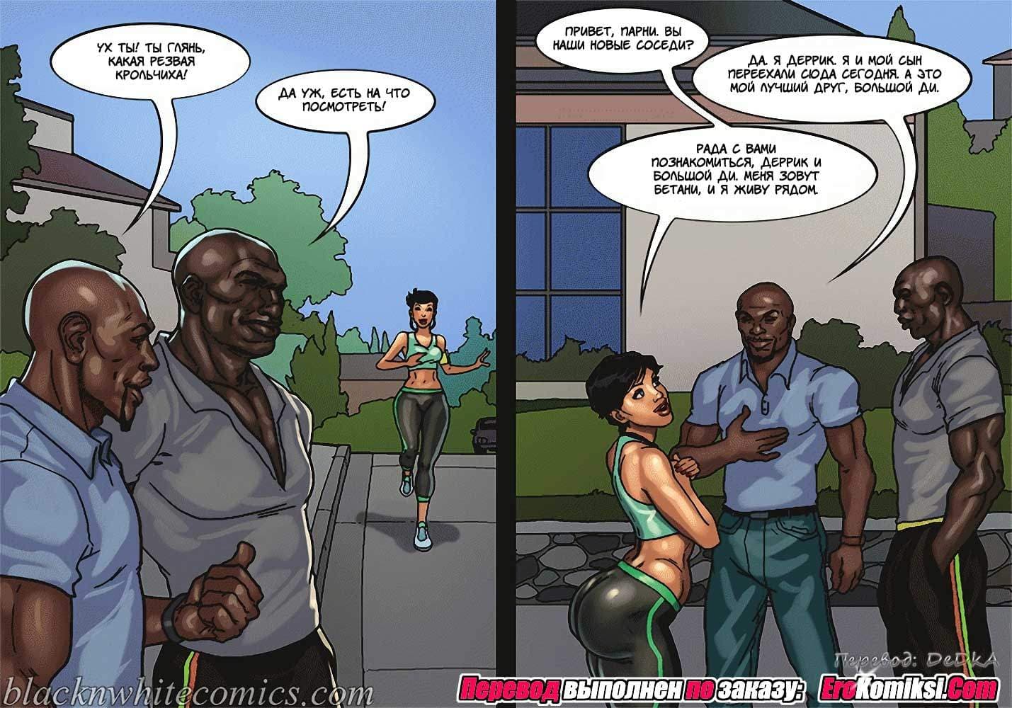 Порно комикс Распутные мамаши расскажет о том, как чернокожий парень вместе с отцом переехал в район города, где живет одни богачи. В первый же день к парню пришли его чернокожие дружбаны и компания отправилась осматривать окрестности. Вскоре они стали свидетелями того, что одной зрелой красотке доставили холодильник, а вот внести его в дом отказались, сказав, что она оплатила только доставку. Парни решили предложить аппетитной даме, которая оказалась порно звездой, свою помощь…