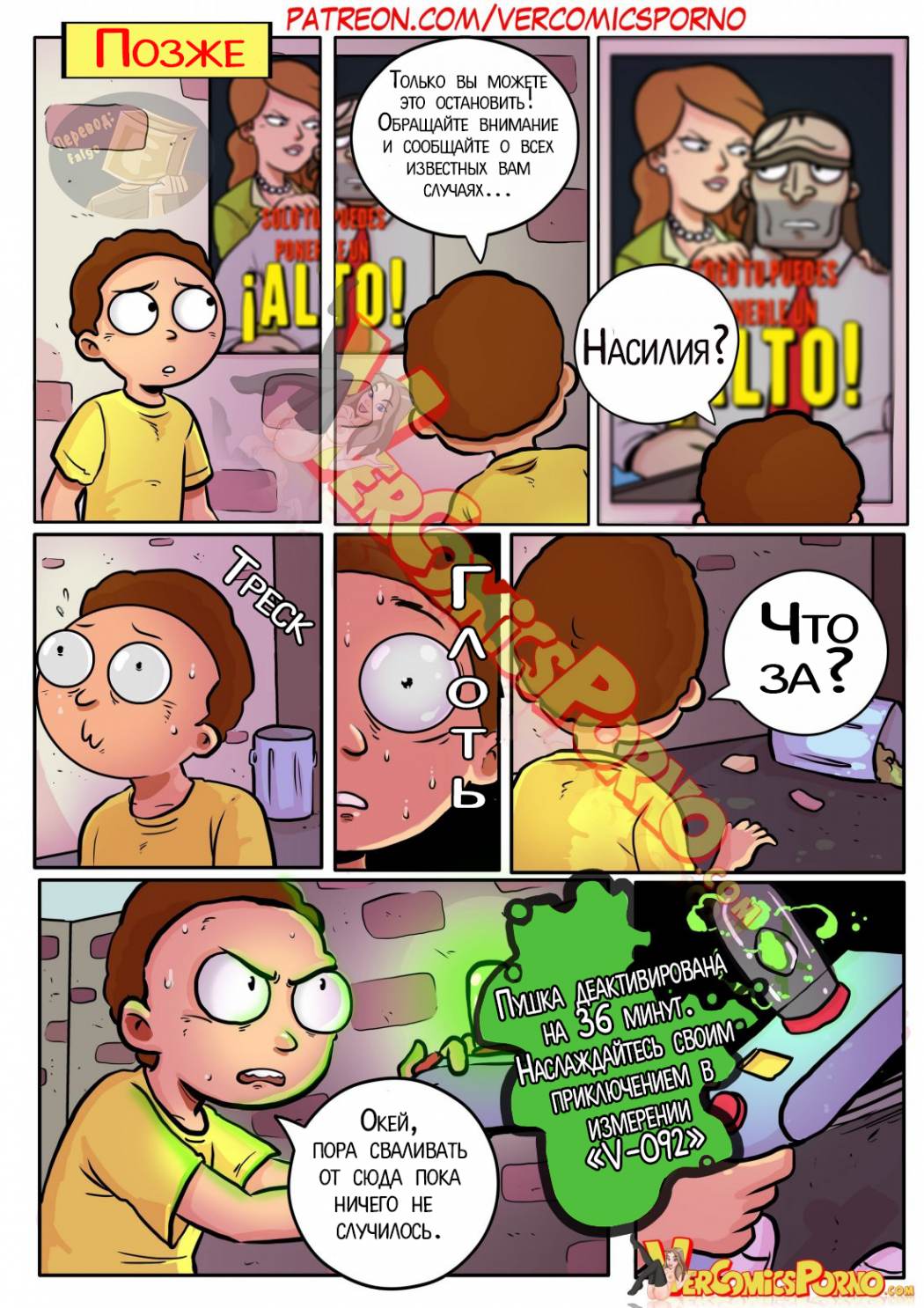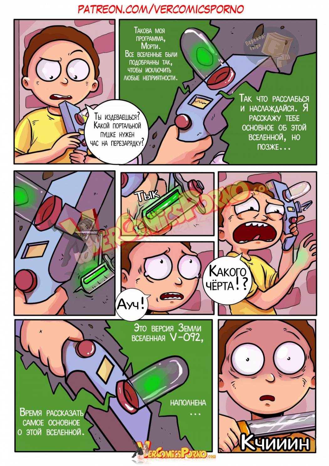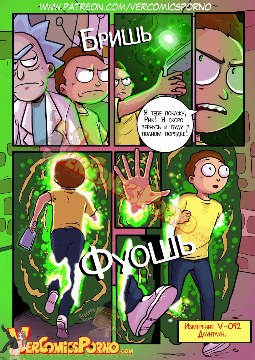 Порно комикс «Рик и Морти» расскажет отом, как Морти получает пистолет из рук придурковатого ученого, Рика, который открывает портал во времени. Морти стреляет из пистолета, пересекает портал и оказывается в беде в неизвестном месте. Парень пытается вернуться обратно, но…