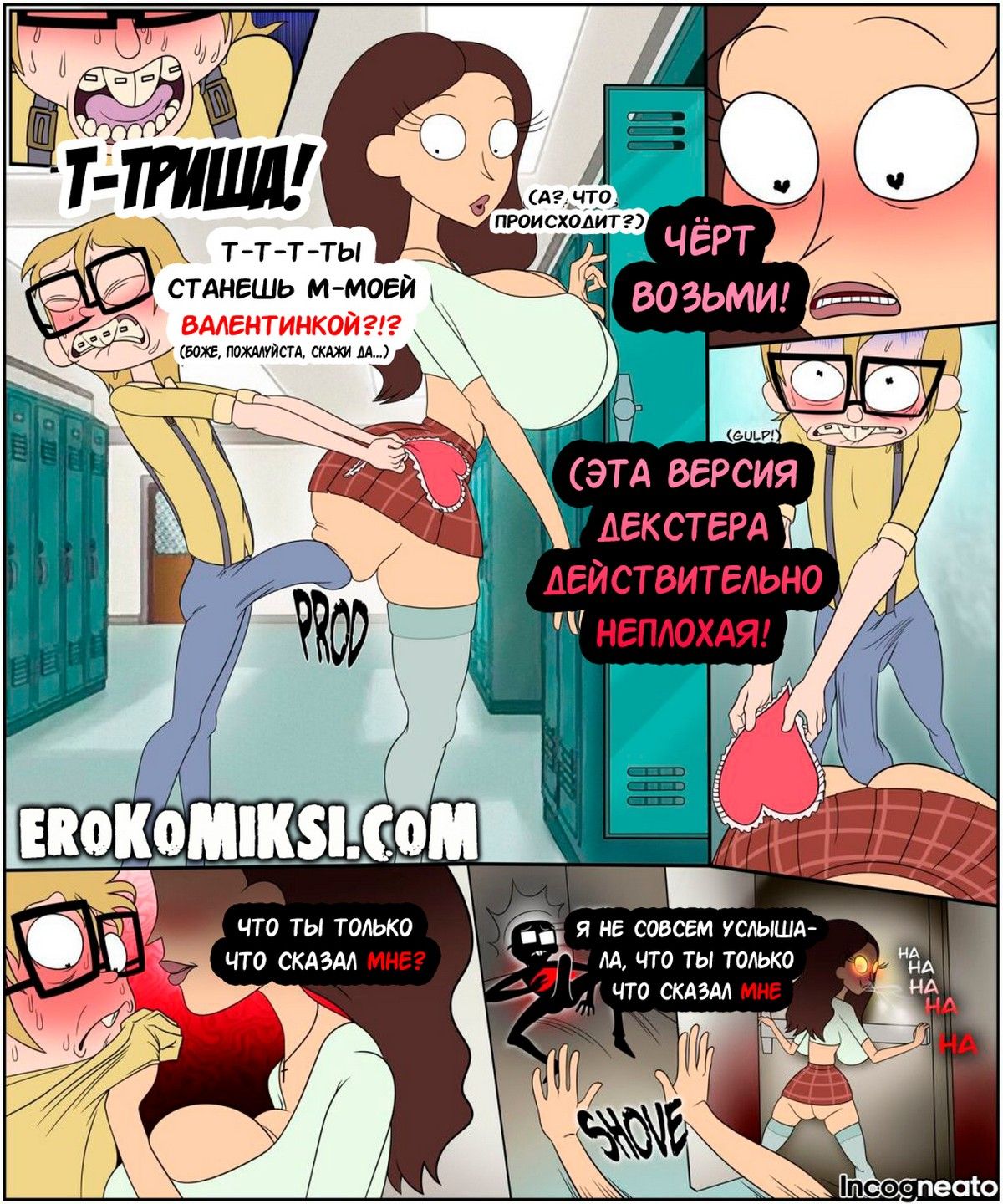 Порно комикс Рик и Морти. Ты будешь моей Валентинкой. В этой вселенной Триша была в шоке от валентинки Декстера. Увидев его здоровый член, она сразу же толкнула его в подсобку, чтобы показать свои охуенно гигантские сиськи и свои секс навыки…