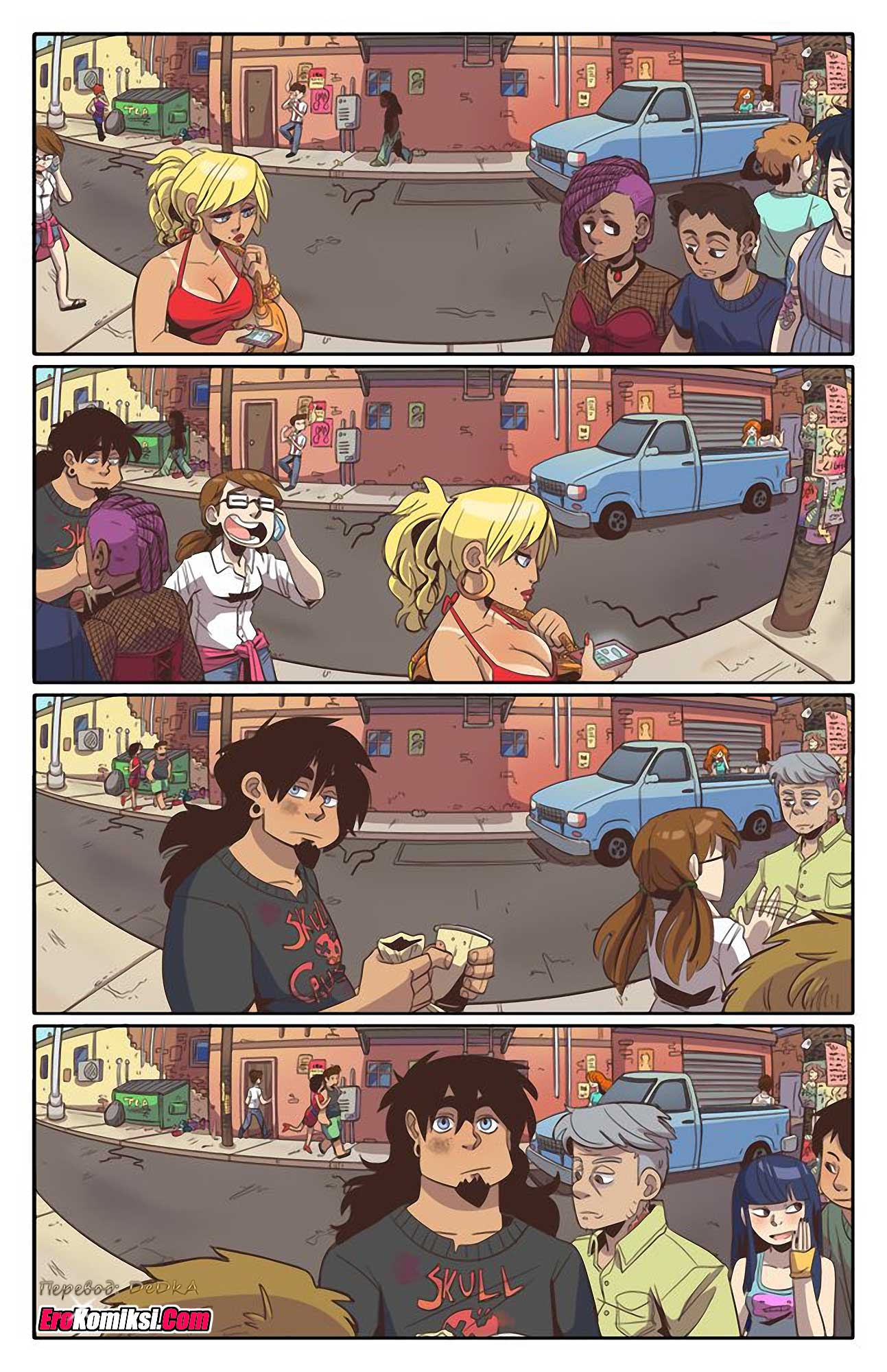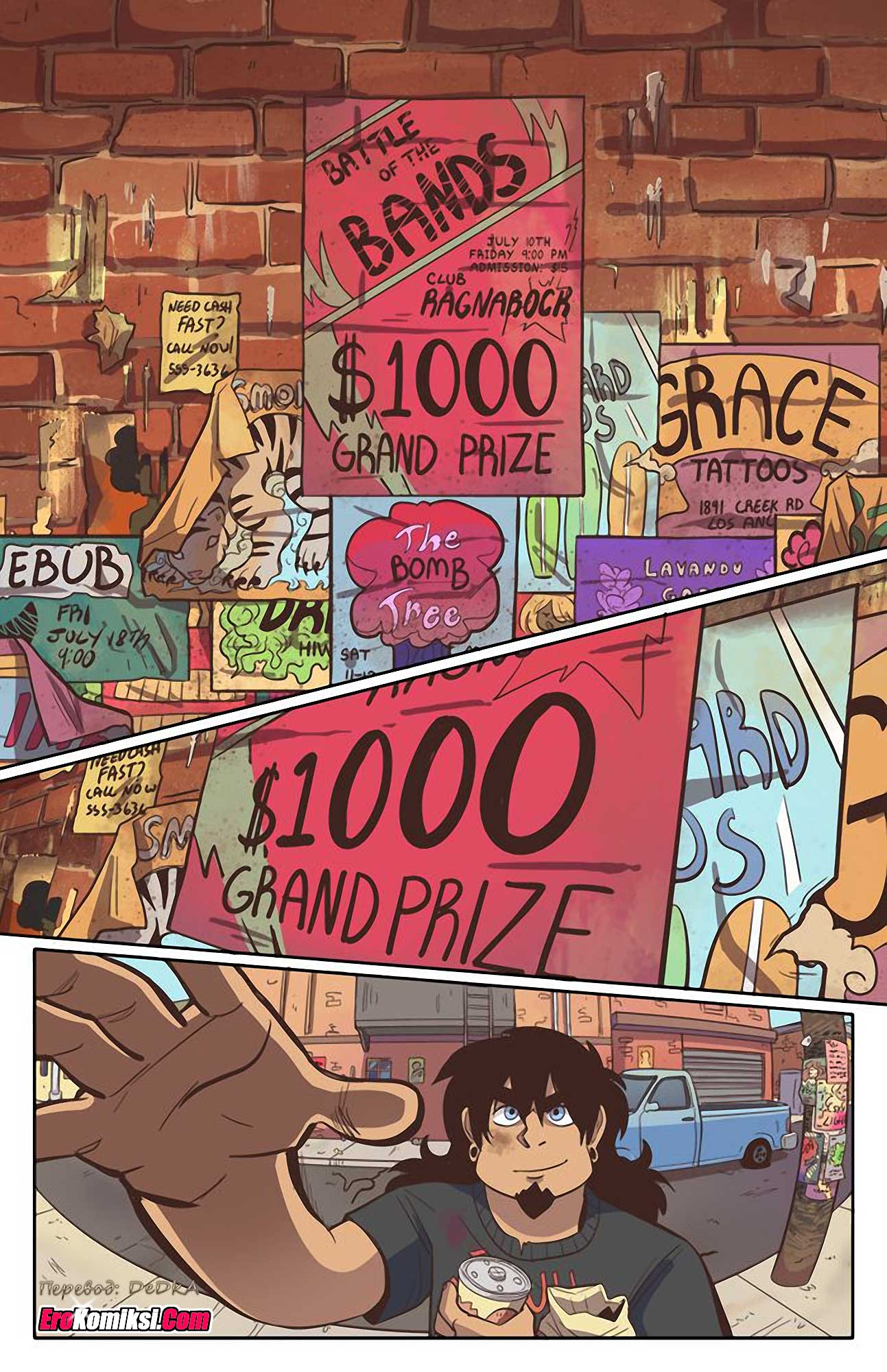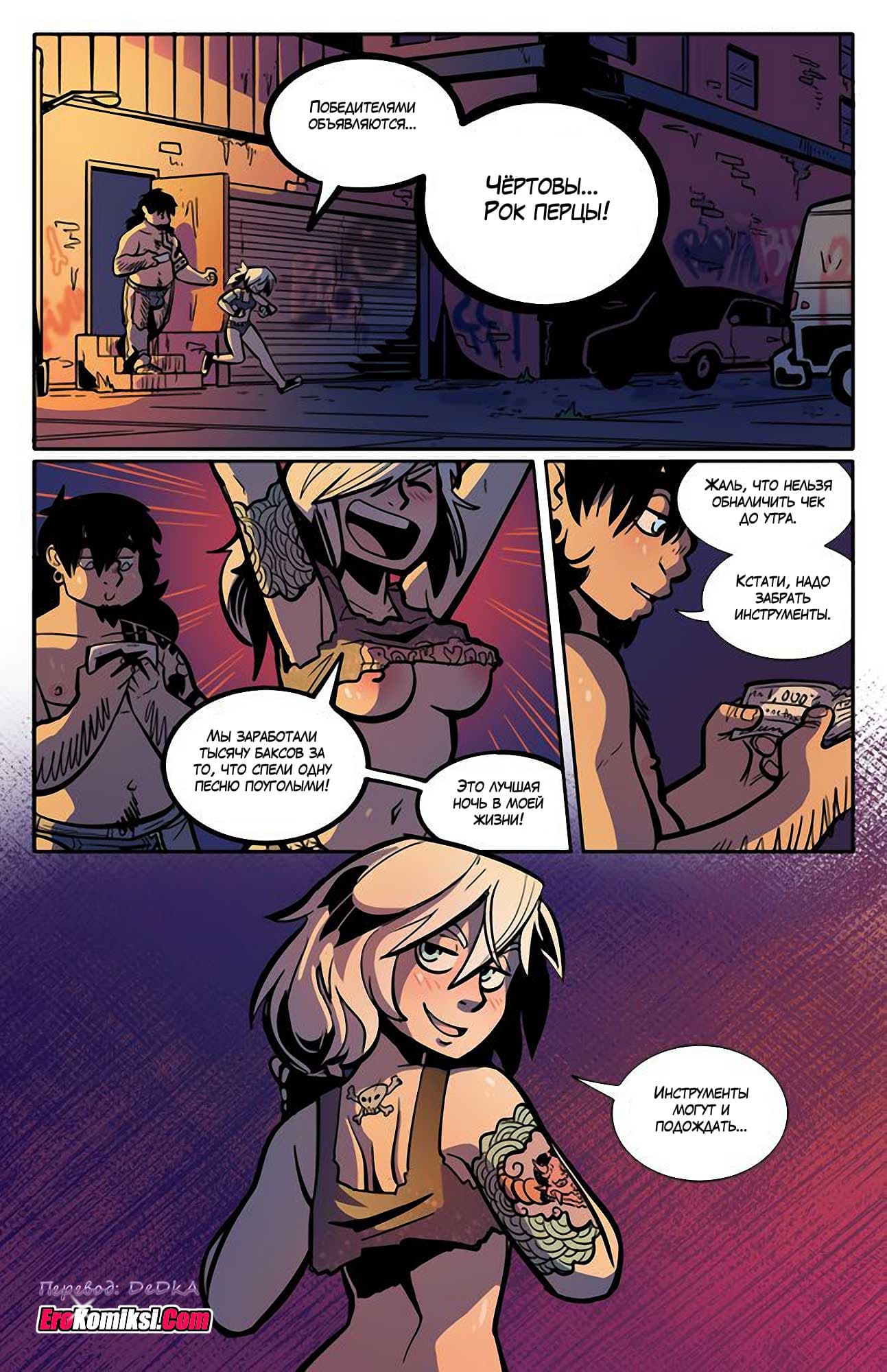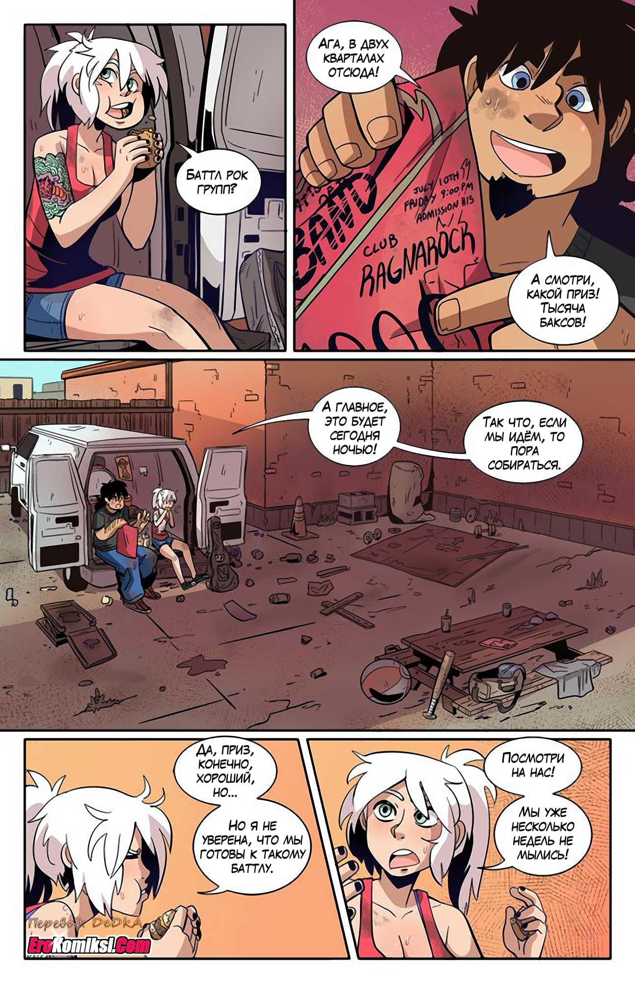 Жизнь уличных музыкантов — не сахар. Если заработанные деньги потратить на еду, то не хватит на ночлег, и наоборот… А ещё надо хоть изредка принимать душ. Можно, конечно помыться на пляже. Но утомительно вот так во всём искать выход из положения. И вдруг, конкурс! Рок баттл! Приз победителю — тысяча баксов! Это шанс! Надо только найти, где шмотки постирать…