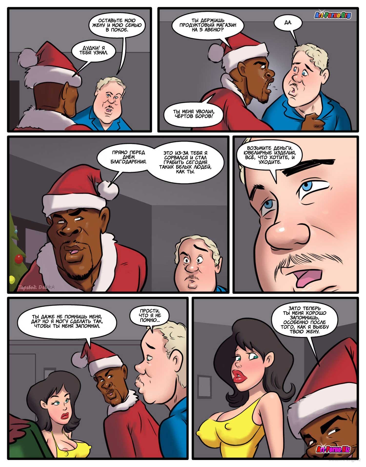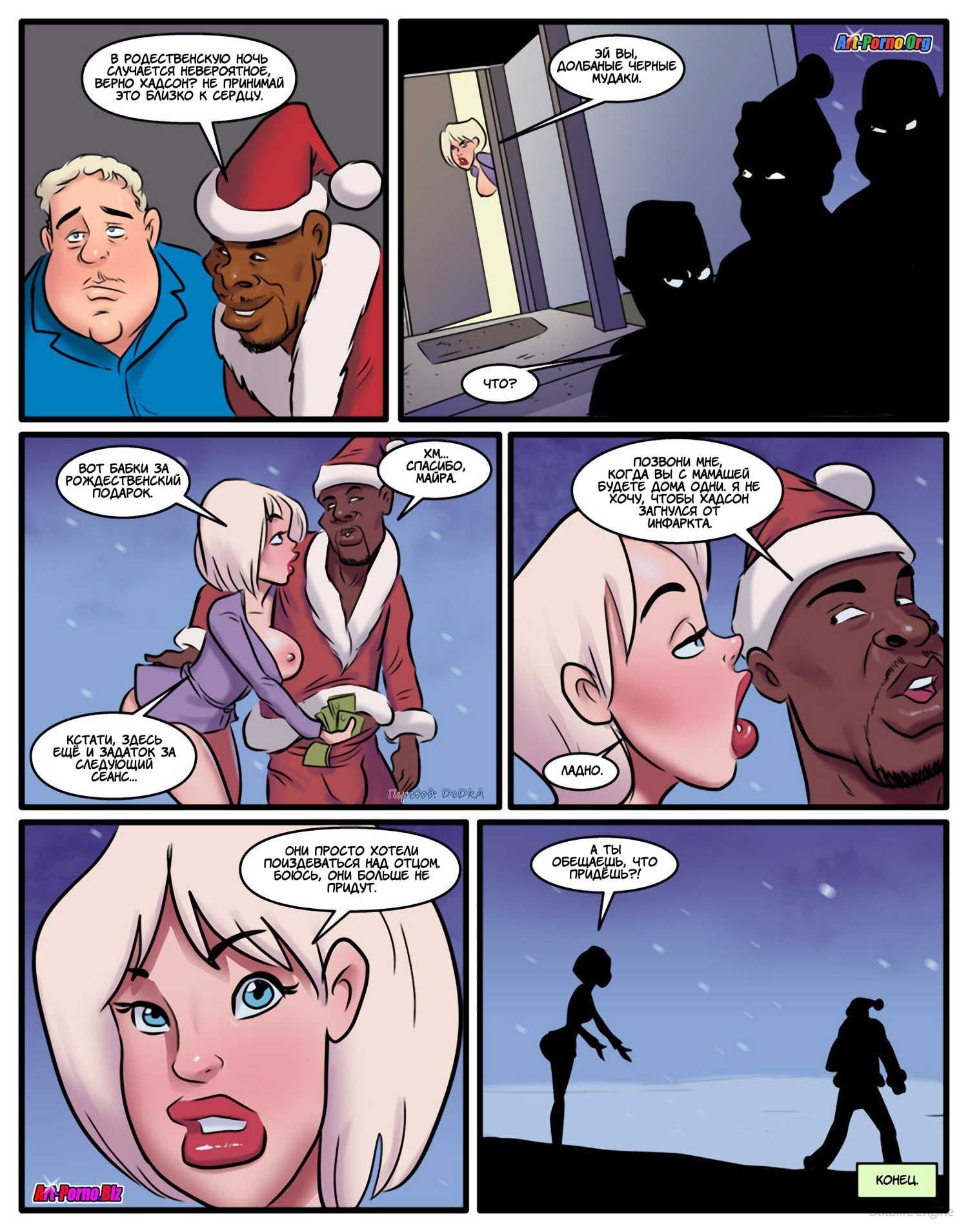 Специально для тех, кто обожает смотреть секс порно комиксы на русском, предлагаем насладиться небольшой развратной историей, речь в которой пойдет о том, как в канун Рождества полиция предупредила жителей о том, что в ночь праздника ожидается резкий рост правонарушений. Глава одного семейства мистер Хадсон был осторожным человеком, и тут же убедительно попросил дочку быть осторожней на улице, и еще потеплей одеться. Но никто и предположить не мог, что настоящая сексуальная опасность была не на улице семейства, а уже внутри их собственного дома…