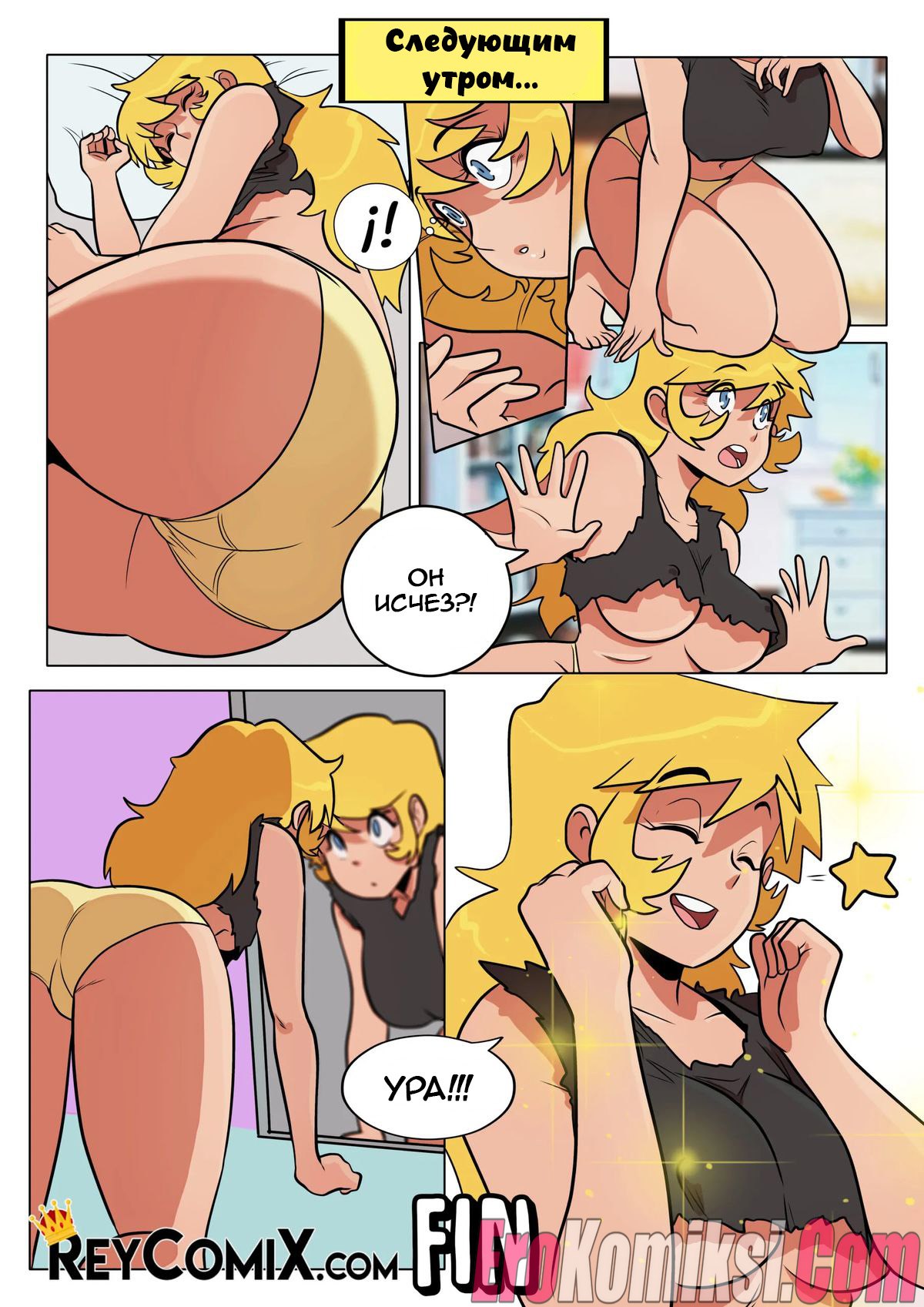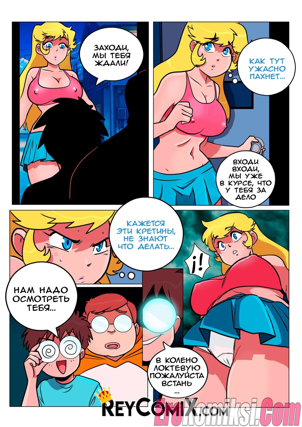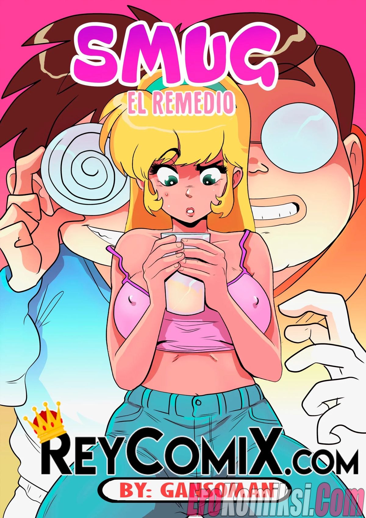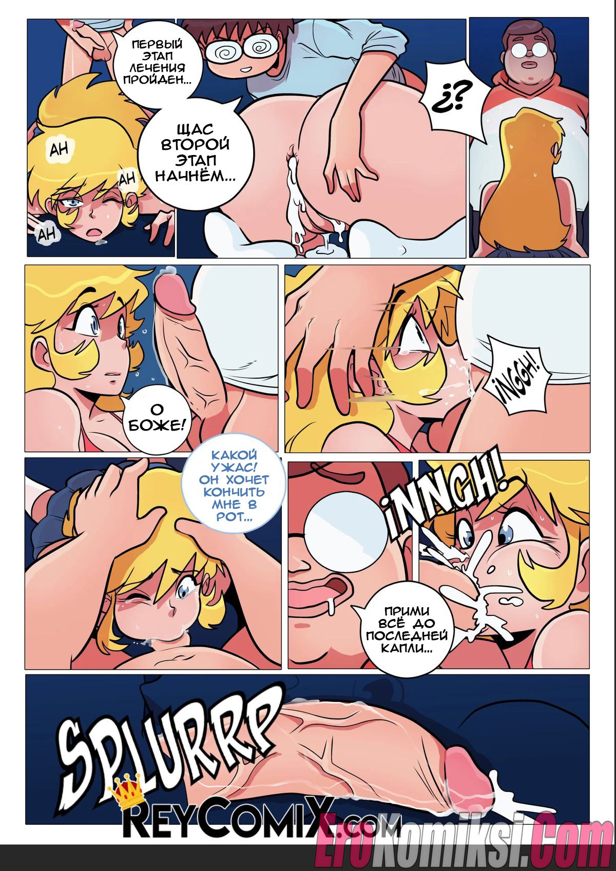 Порно комикс Самодовольный. Средство. Smug. El Remedio. Exclusivo ReyComiX У развратной блондинки с большими сиськами выскочил прыщ, причем прямо перед танцами, поэтому ее подруга направила красотку к своим знакомым парням за помощью. Но возбужденные парни раздели сочную сучку и трахнули ее во все дырочки, после чего спустили кончу ей на лицо, решив проблему девушки белковым коктейлем.