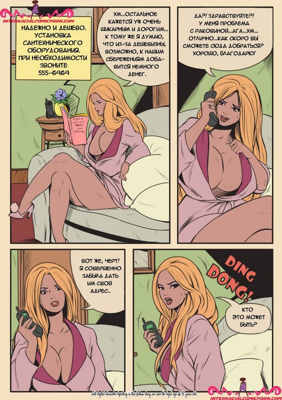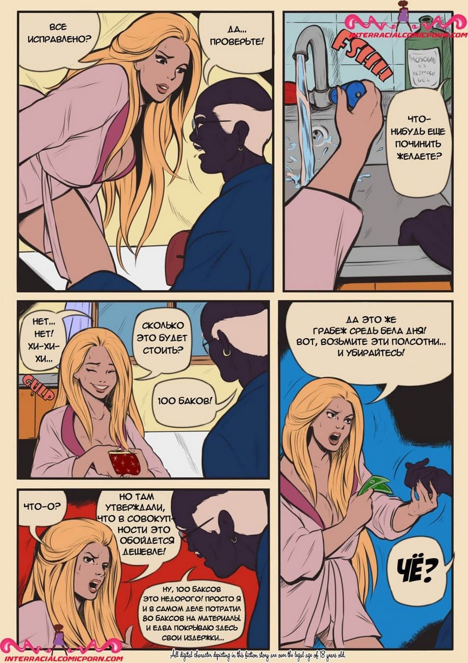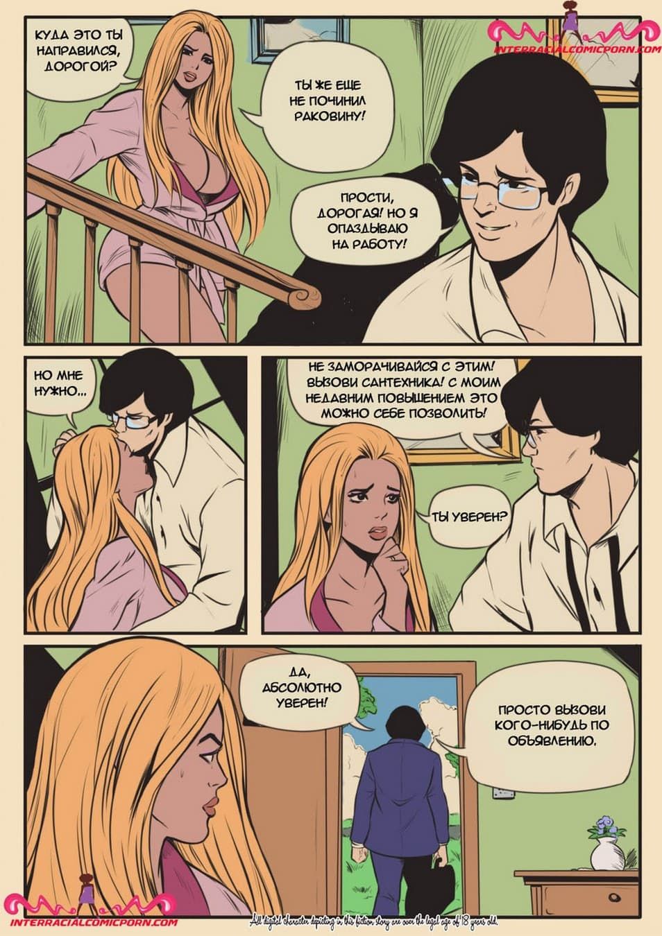 Данный порнокомикс с неграми в истории о белой женушке и ее муже, у которых сломалась раковина. Благоверному ее делать некогда, а зря… Его сексапильная телка вызвала сантехника, только тот прочистил не только трубы, но и кое — что другое, в общем, читайте, смотрите, не пожалеете.