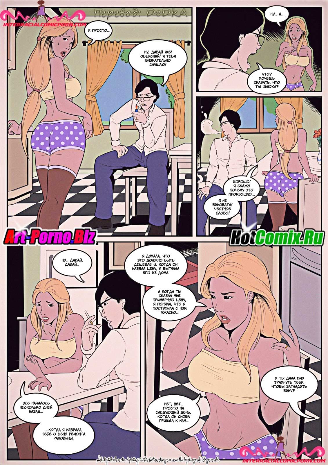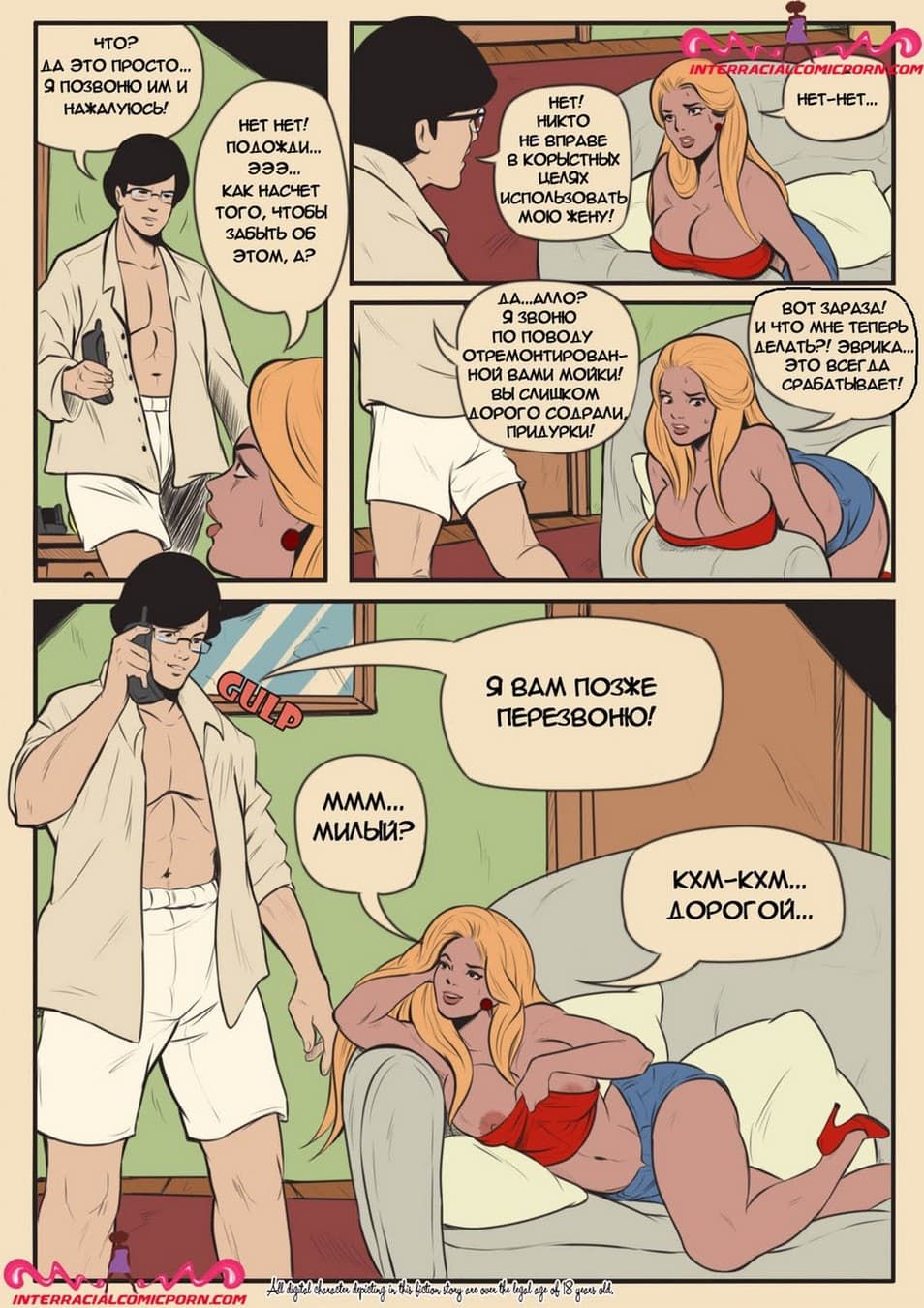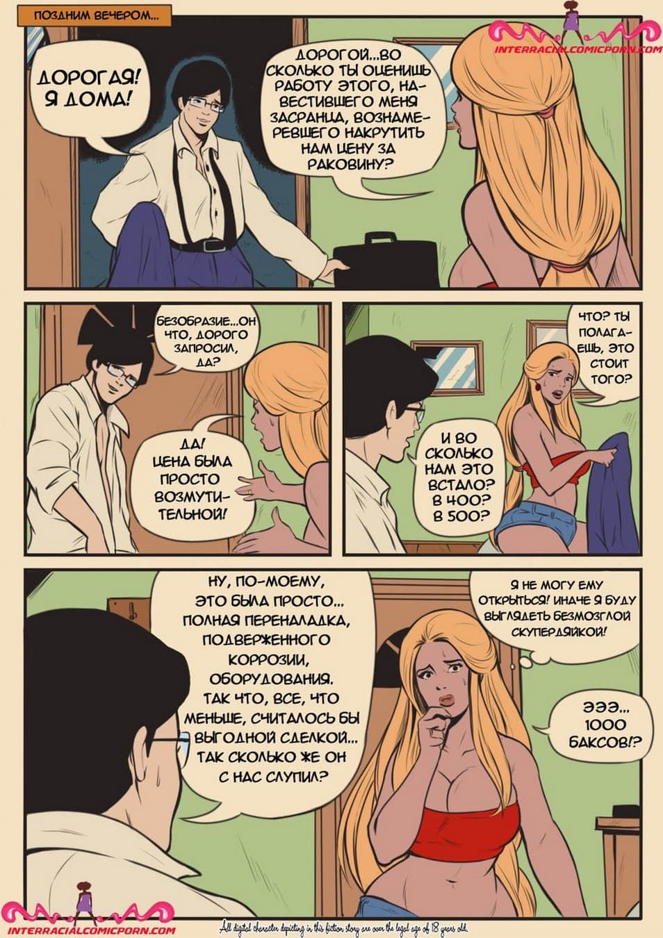 Данный порнокомикс с неграми в истории о белой женушке и ее муже, у которых сломалась раковина. Благоверному ее делать некогда, а зря… Его сексапильная телка вызвала сантехника, только тот прочистил не только трубы, но и кое — что другое, в общем, читайте, смотрите, не пожалеете.