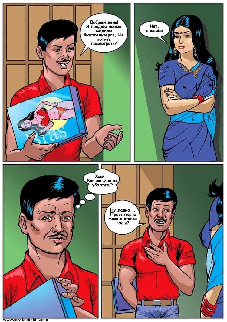 Эта серия порно комиксов переведенная на русский, которую вы можете прочитать онлайн на нашем сайте об очень сексуальной индийской женщине, которая не знает чем заняться у себя дома, пока она ждет любимого мужа с работы. Но сегодня ее скучное настроение было прервано неожиданным звонком. Это был продавец, торгующий лифчиками. Он предложил Савите примерить свой товар, а что было потом смотрите дальше.