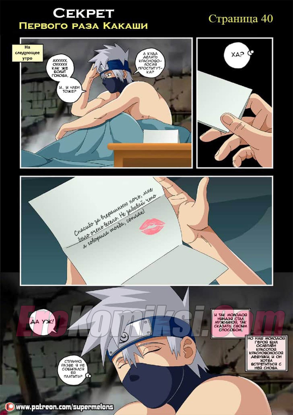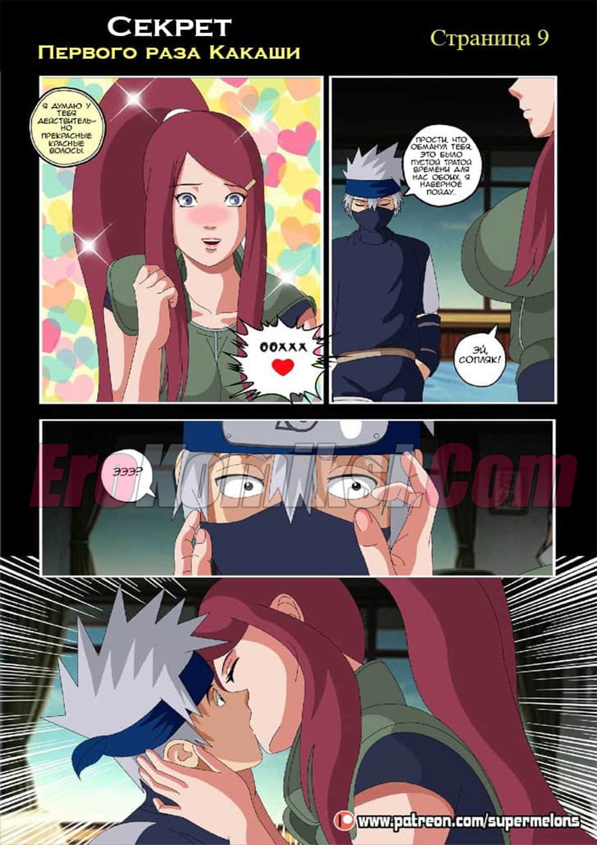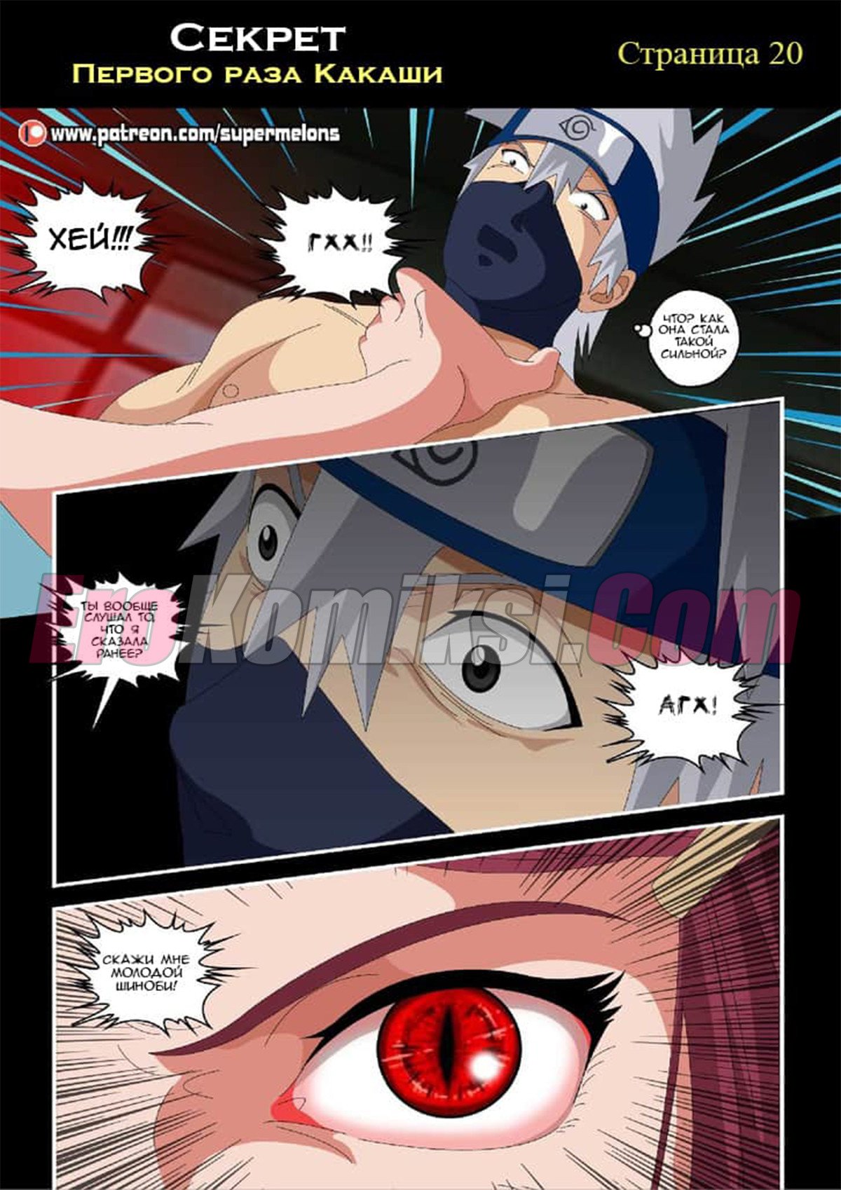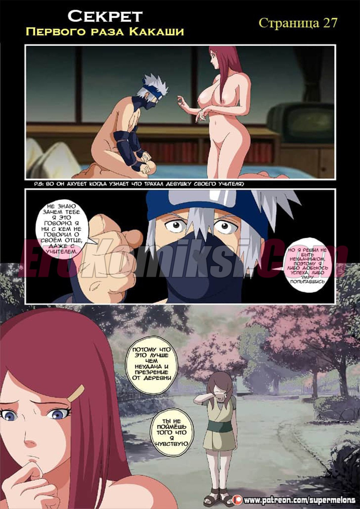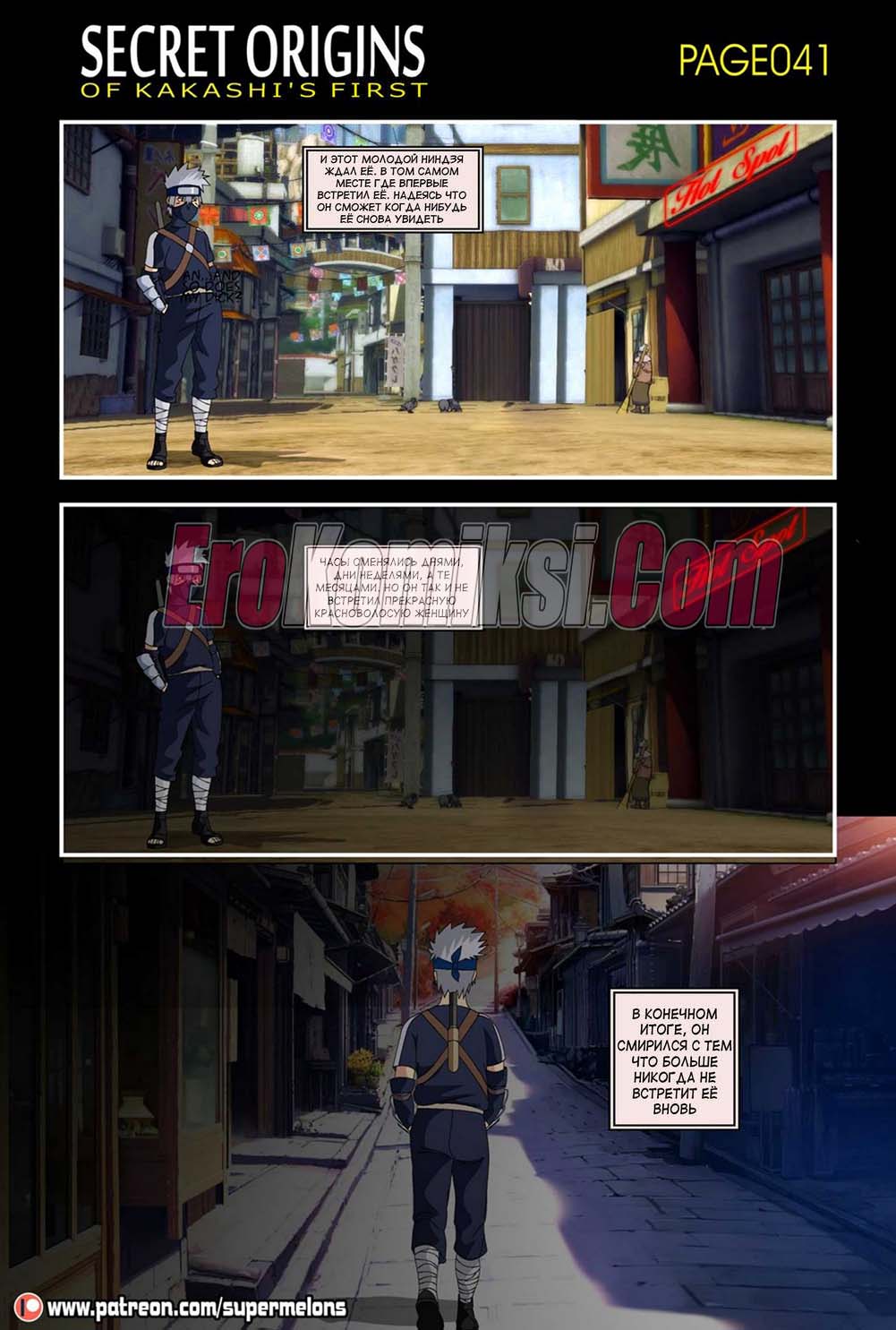 Сидя ночью у костра Какаши слушал истории своих знакомых и их желание пойти в «Красный фонарь» и трахнуть пару сучек. Какаши не выдержал и отправился туда, чтобы наконец-то трахнуть девушку. Придя в бар он увидел, одинокую даму, подумав, что эта проститутка и предложил ей совершить половой акт… А что была дальше читайте в комиксе…