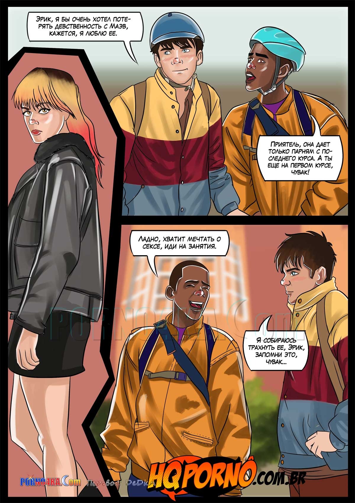Порно комикс Секс в колледже. Часть 1: Слоновья палка. Отис и Эрик с ужасом определили, что они на данный момент единственные девственники в своем колледже. Отис очень жаждет лишиться девственности с аппетитной красоткой Маэв, и ему, к счастью удается остаться с девушкой наедине. Но их уютное уединение было стремительно и неожиданно прервано…