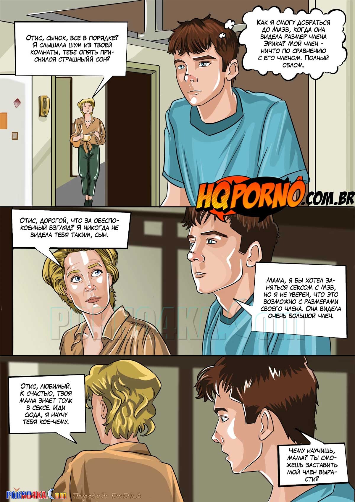 Порно комикс Секс в колледже. Часть 2: Размер не имеет значения. Отис опечален размером своего полового органа, он думает, что он никогда не сможет доставить наслаждение его обожаемой Маэв. Но появляется милфа, которая успокаивает парня и показывает, как нужно разогреть женщину перед сексом. И после этого интимного урока Отис, действительно почувствует уверенно, словно он порноактер…