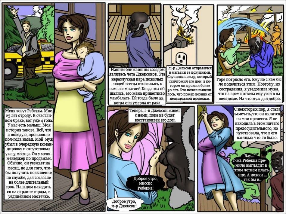 Рассказ онлайн комикса начинается с того, что старому негру, который работал на одну семью, очень приглянулась сексапильная хозяйка. Как – то он не выдержал и зашел к ней в душ с огромным оголенным стоячим членом, и здесь история для взрослых только начинается.