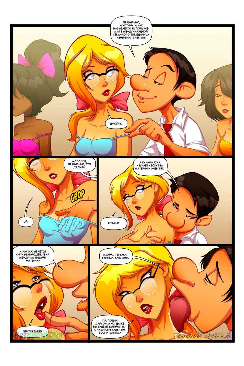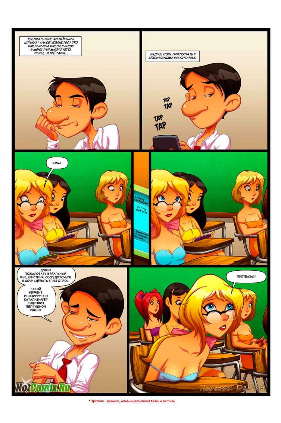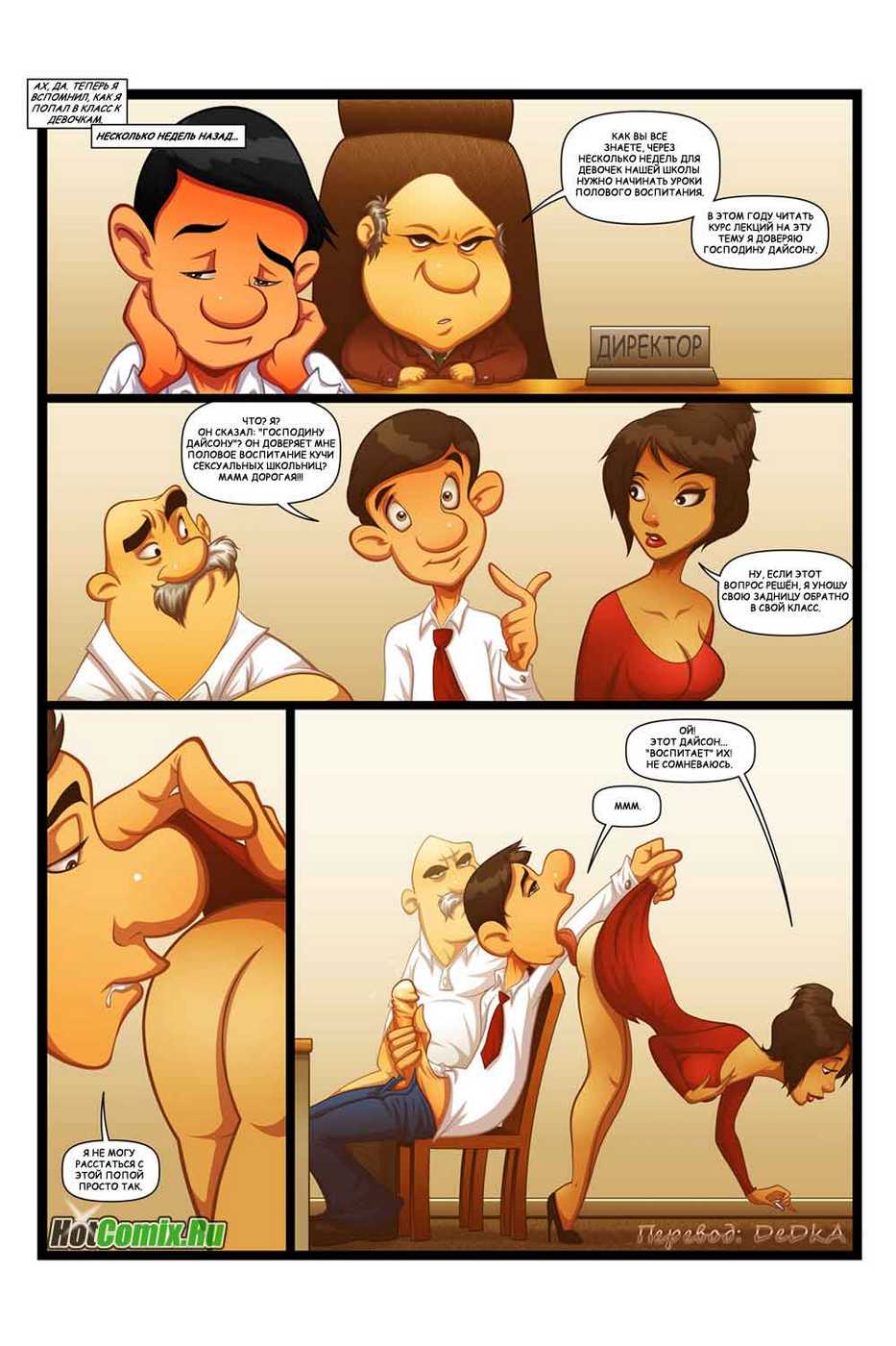 Перед вами новейший порно комикс, пошлая история которого начинается с того, что директору престижного учебного заведения каждый год приходится брать нового преподавателя, читающего лекции по предмету сексуальное образование. И как всегда, он тщательно напоминает новому учителю о том, что ученицам надо только преподавать, а не ебать!!!