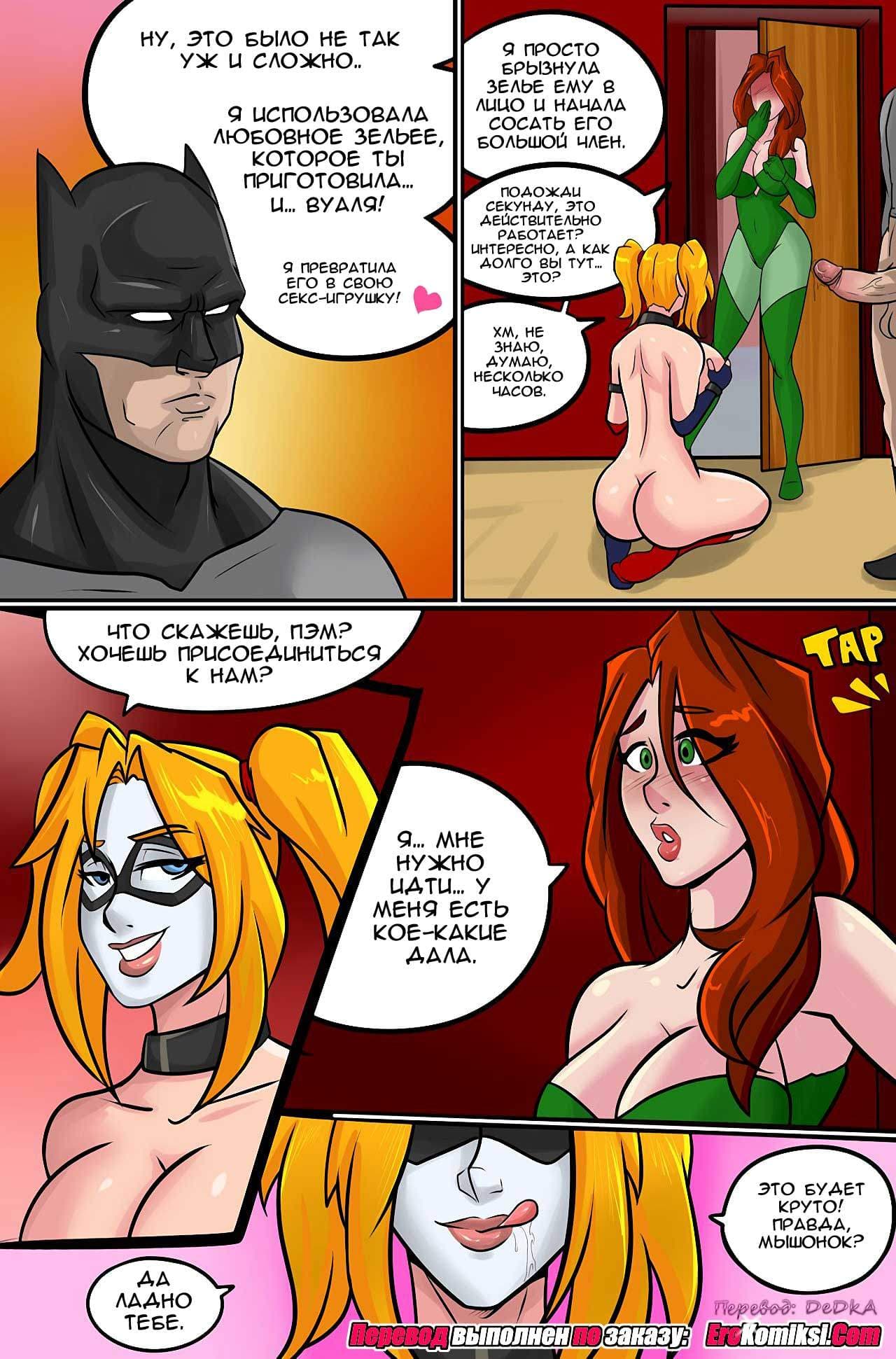 Порно комиксы Харли Квинн рассажут о том, что даже самый брутальный супергерой, часто не в состоянии противостоять чарам похотливой красотки, которая захотела его соблазнить. Тем более если это самая аппетитная героиня Харли Квинн. Заковав Бэтмена в цепи, сексуальная злодейка Харли решила немного поиграть со своим пленником и его стоячим от возбуждения членом.