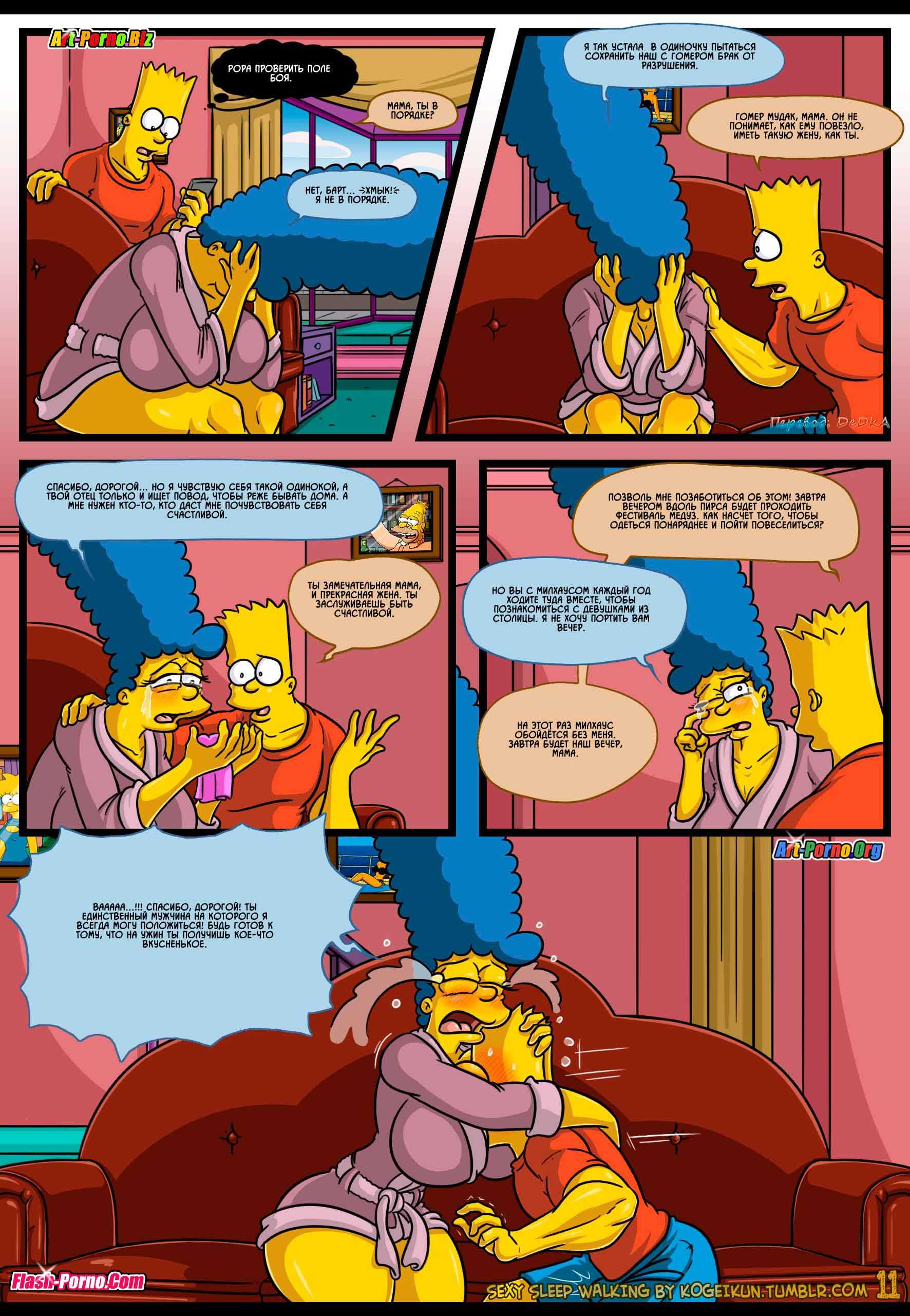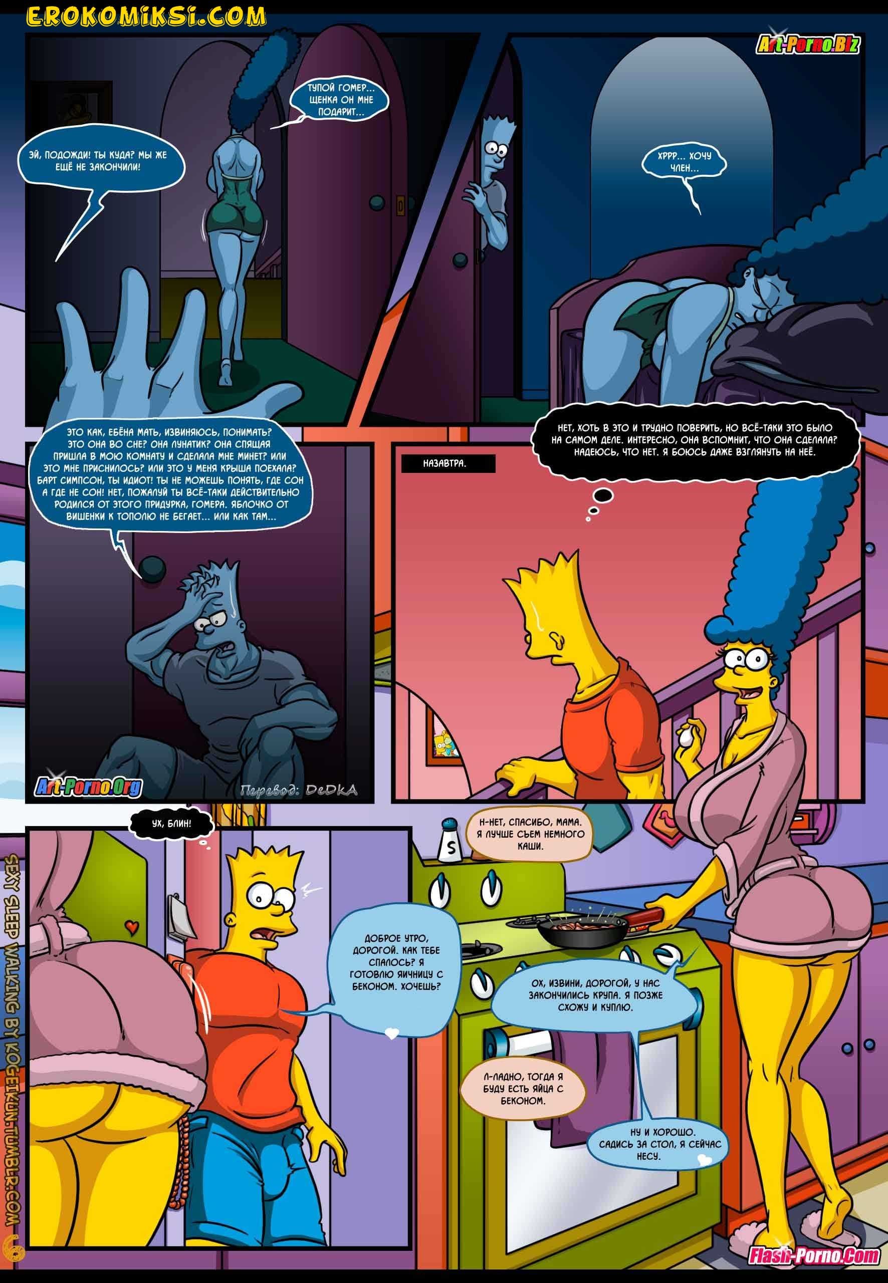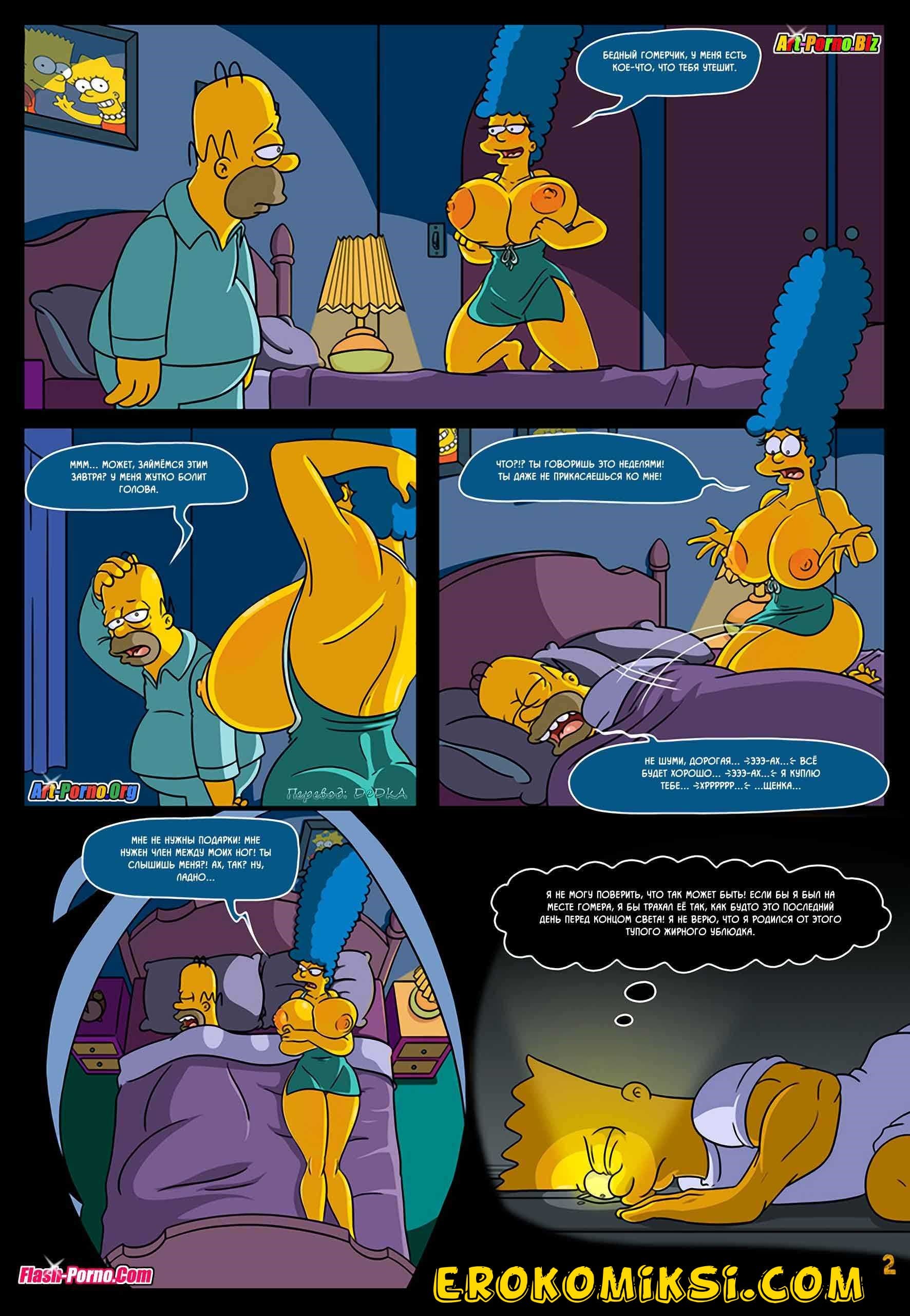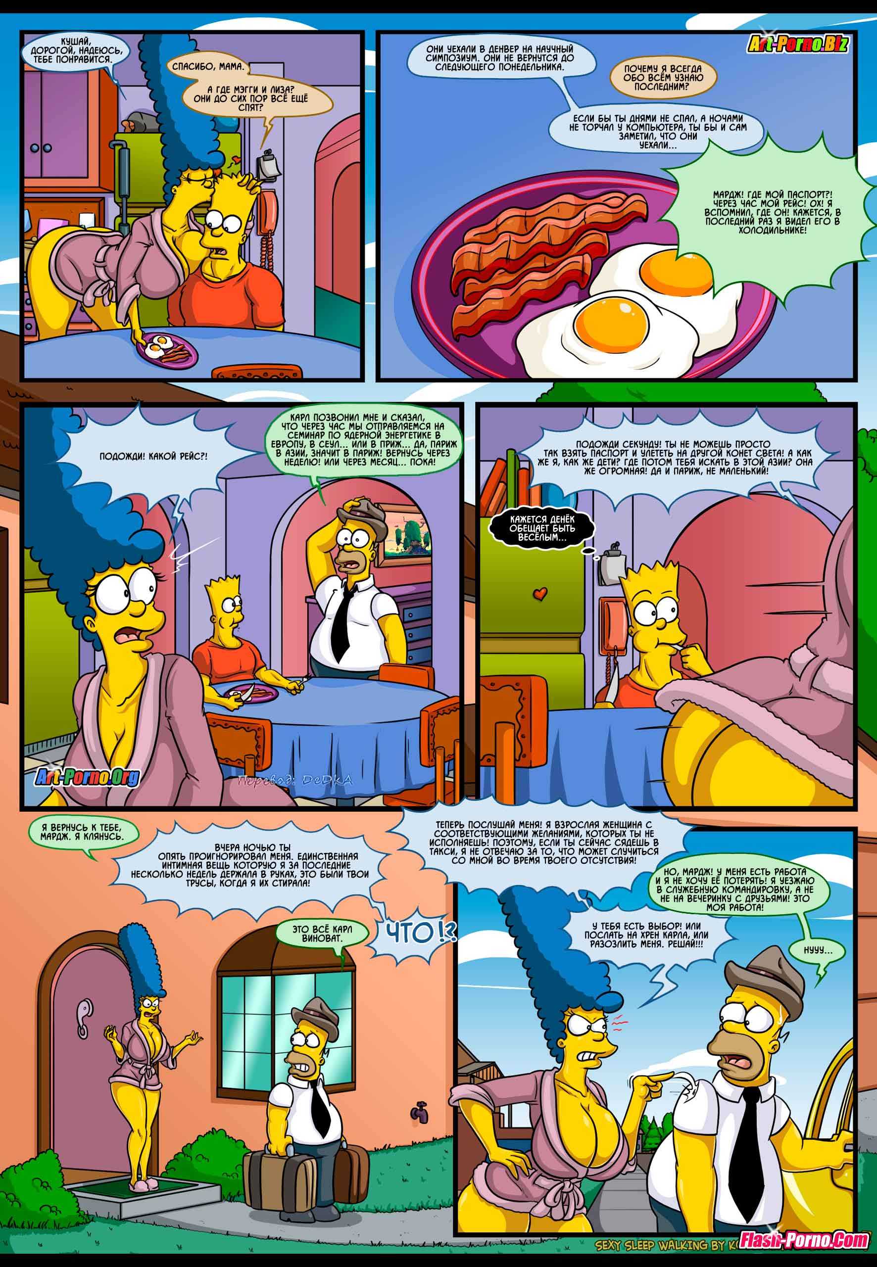 Встречайте новые порно комиксы Симпсоны на русском! Сюжет данной сексуальной истории пародирует события, происходящие в пятом эпизоде 21 сезона популярного мультфильма «Симпсоны», который имеет название «Дьявол носит Нада». Все начинается с того, что Гомера отправляют в командировку в Париж, и Мардж остается дома без своего любимого супруга. А вы, как знаете, длительное воздержание от секса, даже у порядочных домохозяек вызывает сильнейшую похоть. На фоне озабоченности Мардж подвергается нервному расстройству, итогом которого стало то, что женщина начала ходить во сне по дому в поисках кого-нибудь, кто сможет утолить её интимные желания.