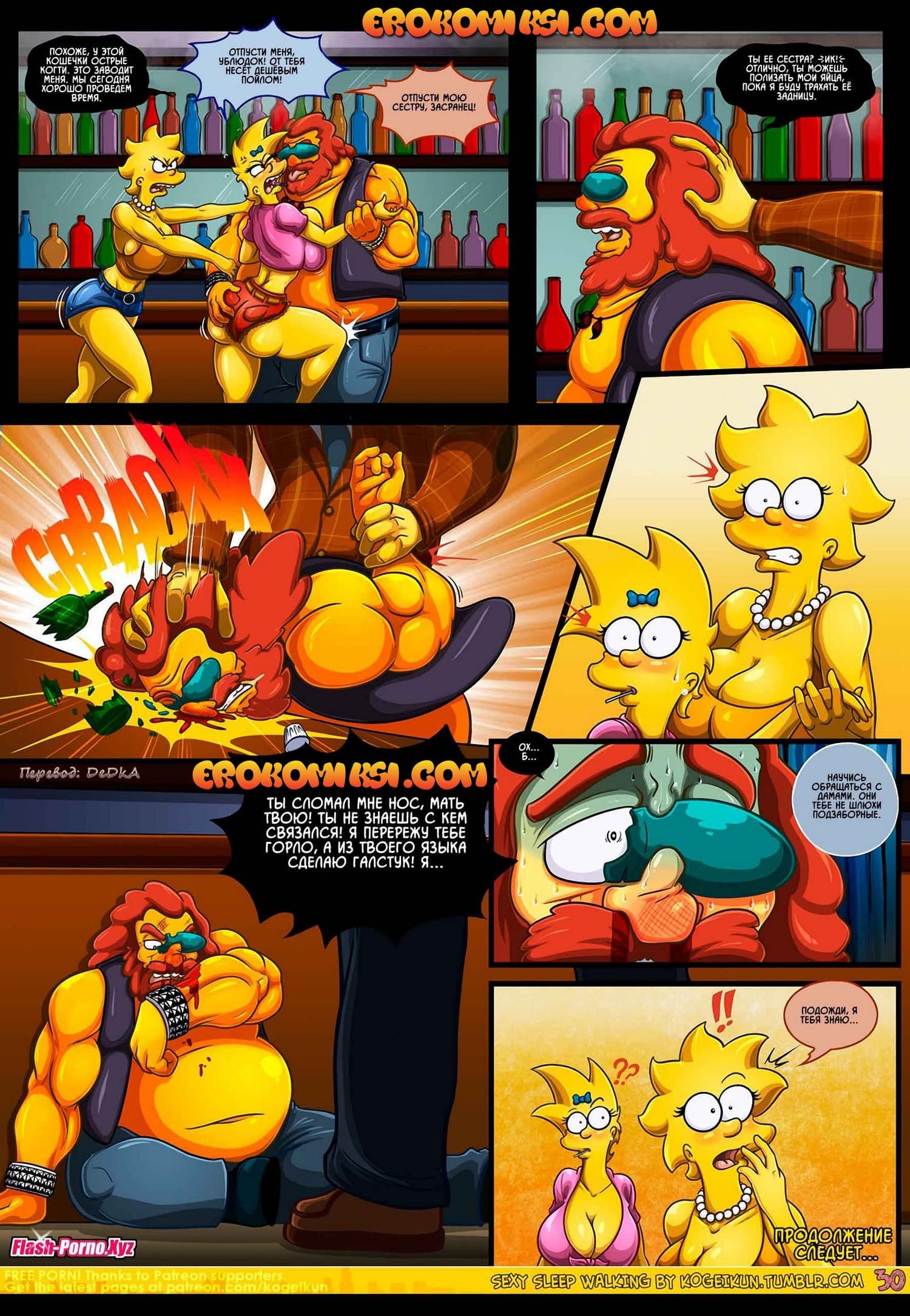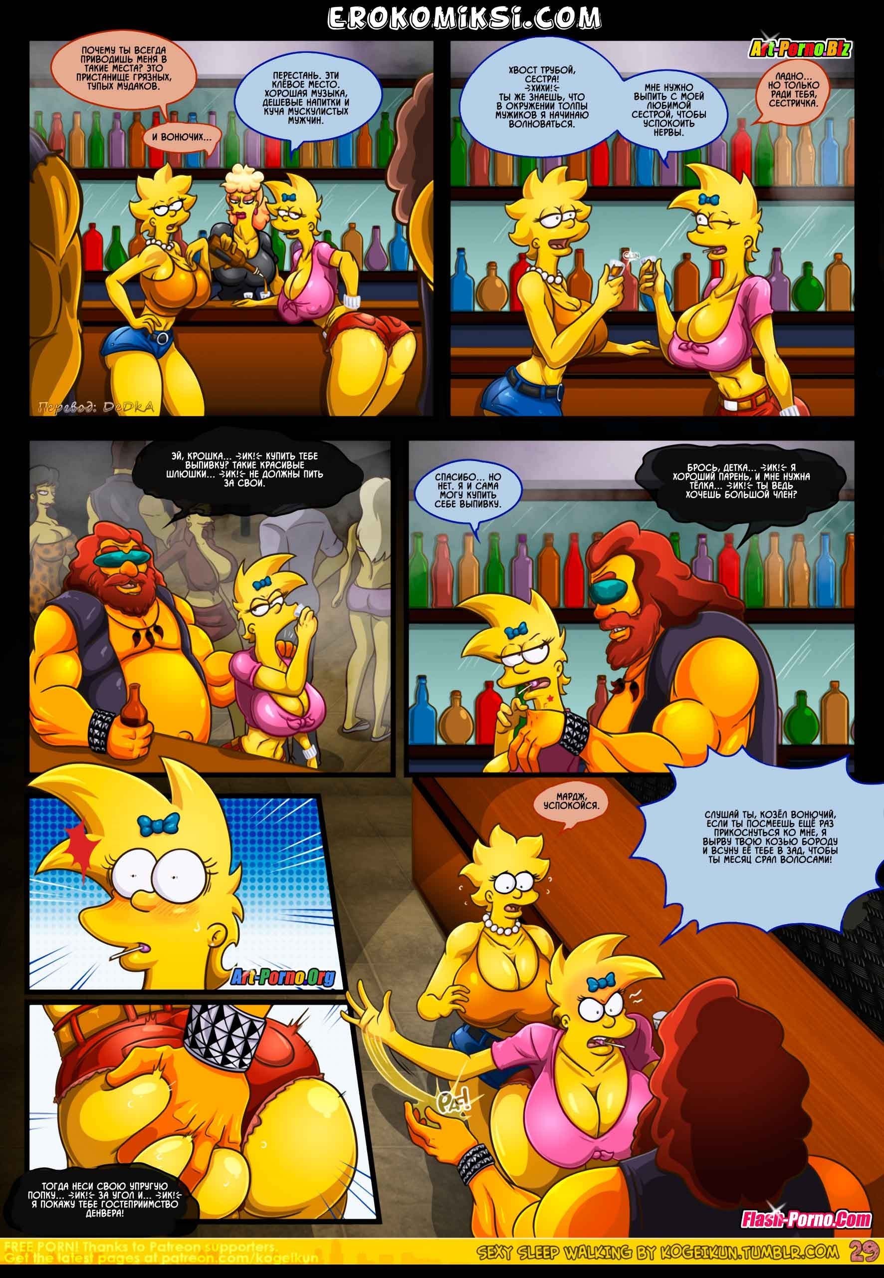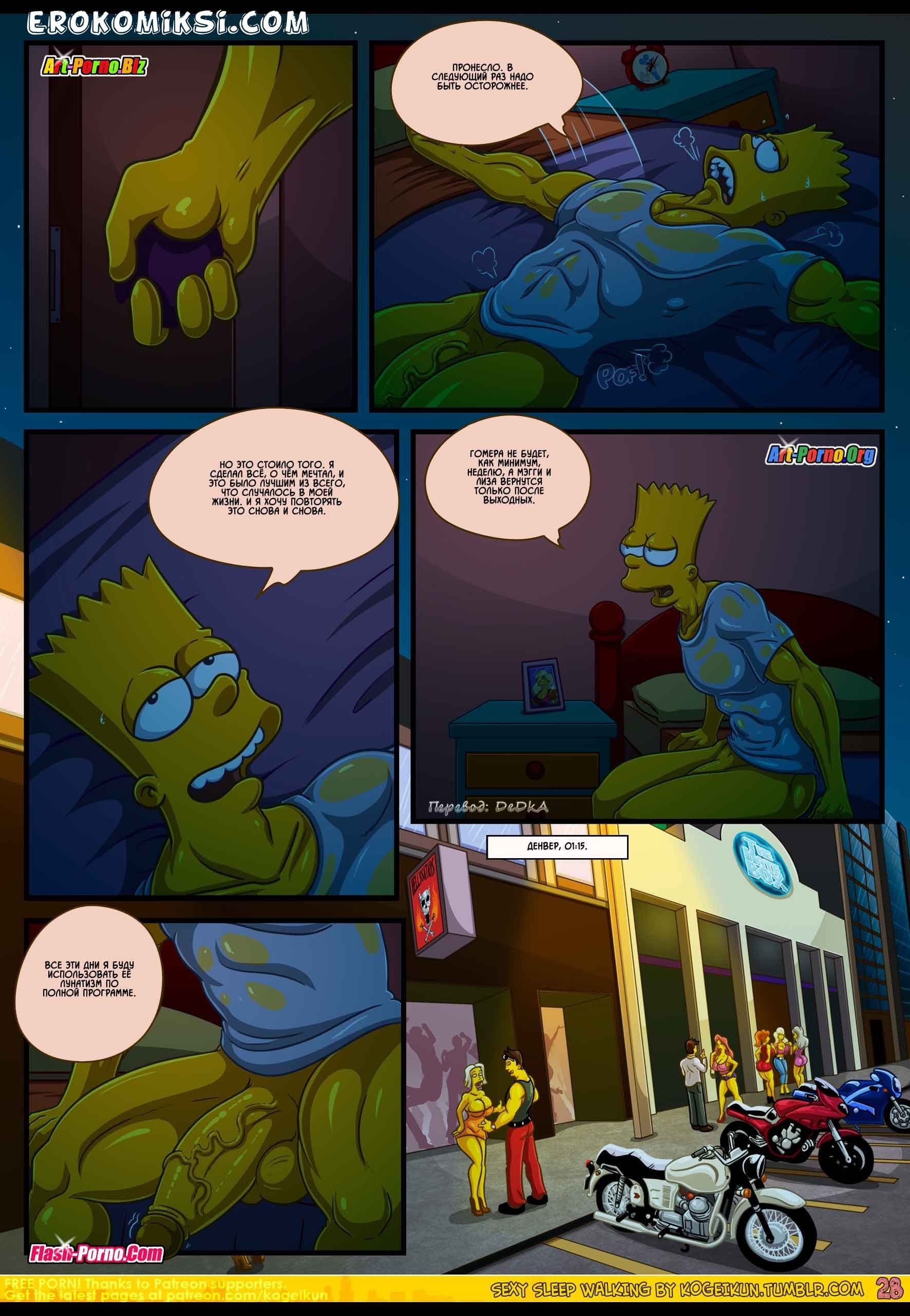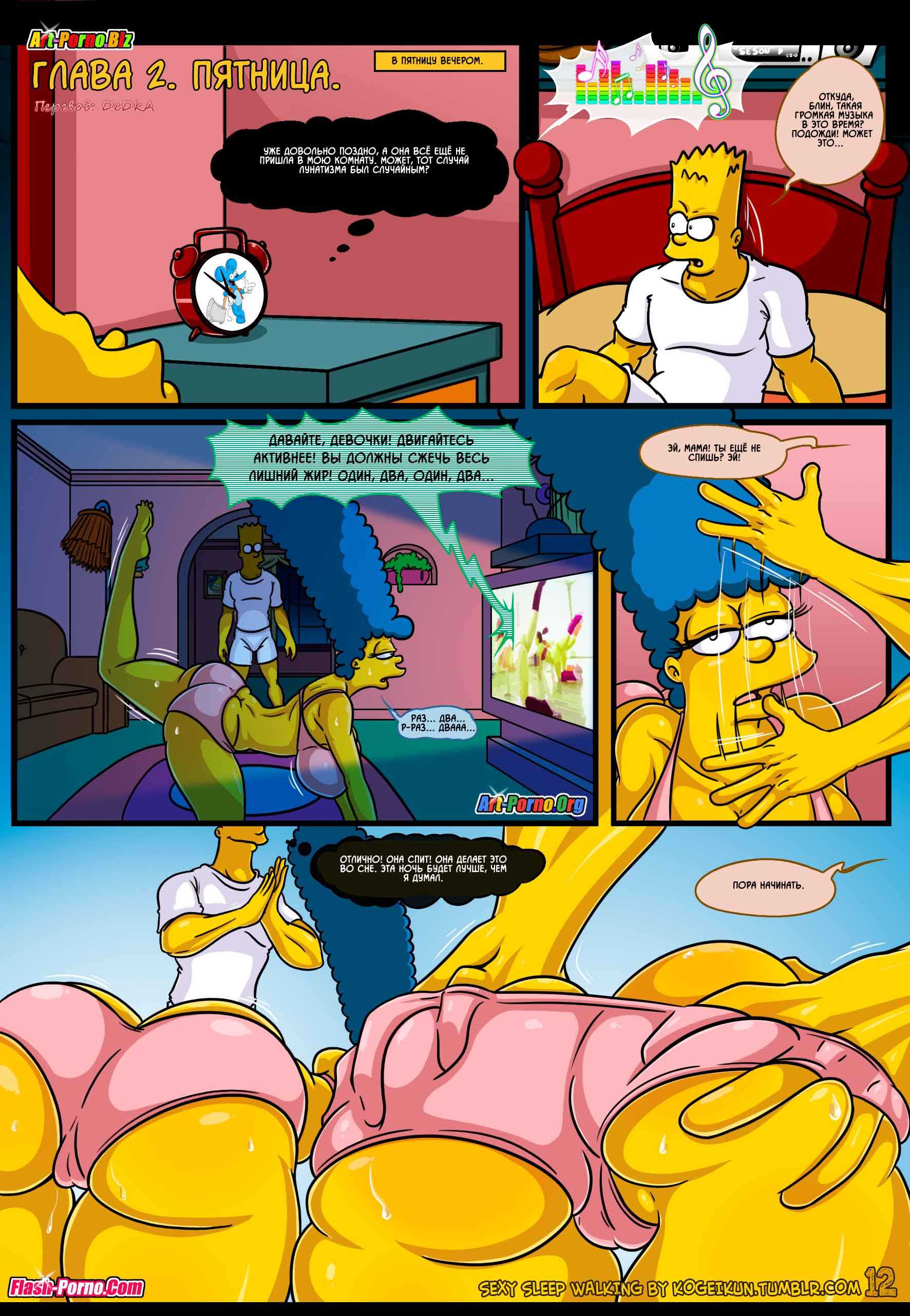 Встречайте новые порно комиксы Симпсоны на русском! Сюжет данной сексуальной истории пародирует события, происходящие в пятом эпизоде 21 сезона популярного мультфильма «Симпсоны», который имеет название «Дьявол носит Нада». Все начинается с того, что Гомера отправляют в командировку в Париж, и Мардж остается дома без своего любимого супруга. А вы, как знаете, длительное воздержание от секса, даже у порядочных домохозяек вызывает сильнейшую похоть. На фоне озабоченности Мардж подвергается нервному расстройству, итогом которого стало то, что женщина начала ходить во сне по дому в поисках кого-нибудь, кто сможет утолить её интимные желания.