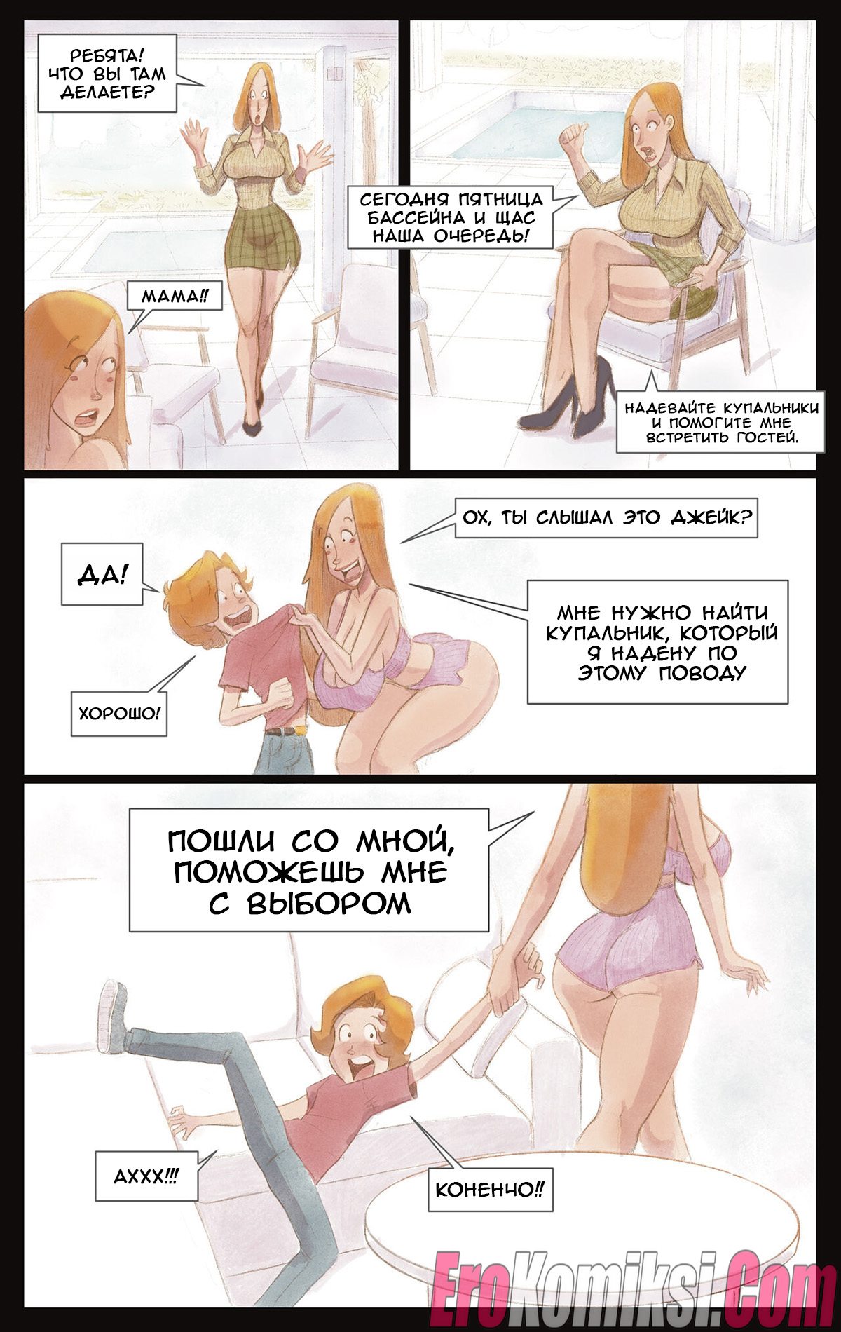 Порно комикс Семейная тайна. Часть 3. В этот раз Таня сама нашла Джейка. Их отношения изменились после произошедшего и теперь, даже когда мама дома, они трахаются у неё за спиной. Она едва ли их не словила, но её отвлекли, однако теперь её терзают сомнения. А Джейк и Таня просто продолжают трахаться в любое удобное для них время…