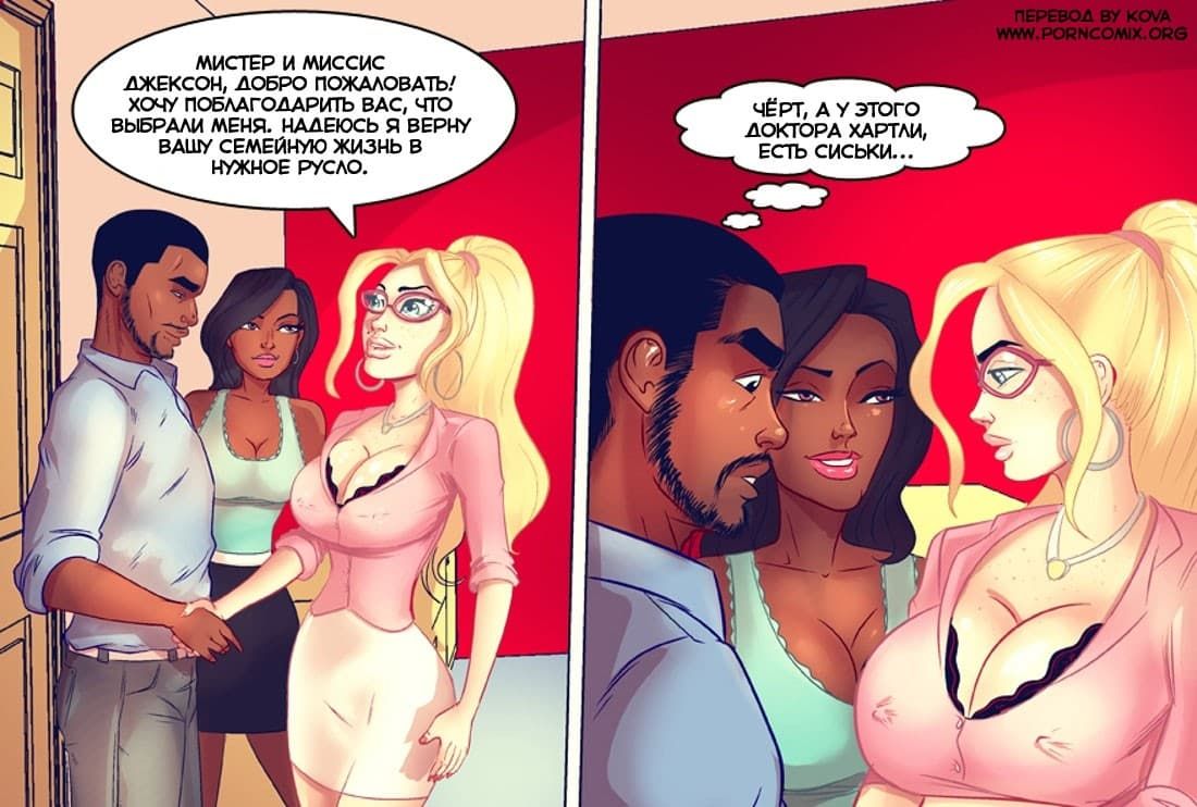 Для тех, кто обожает читать пошлые порно комиксы, предлагаем познакомиться с одной семейной парой, коих зовут Трэйси и Бобби. С недавнего времени у них все чаще и больше стали возникать в отношениях ссоры на бытовой почве. Однажды подруга Трэйси посоветовала им обратиться к известному психологу по семейно-бытовым проблемам доктору Хартли. Эта женщина считалась лучшим специалистом в своем деле, а ее эксклюзивный метод терапии мало кого оставил бы равнодушным!