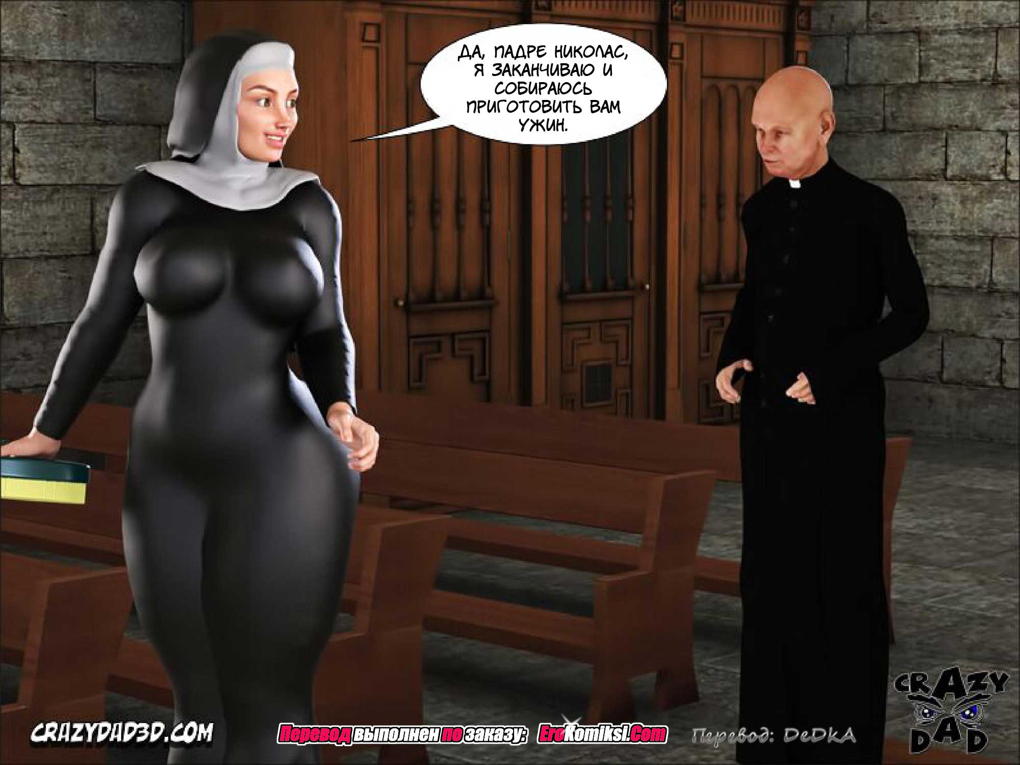 Молодая монахиня, Грейс присланная из монастыря помогать падре Николасу в приходских хозяйских делах, была очень трудолюбивой и старательной. Но ещё она была невероятно сексуальной, чего не мог скрыть даже её монашеский наряд. И греховные помыслы стали преследовать несчастного падре Николаса. Он гнал их от себя, но помыслы были сильнее и вскоре они и вовсе одолели беднягу…