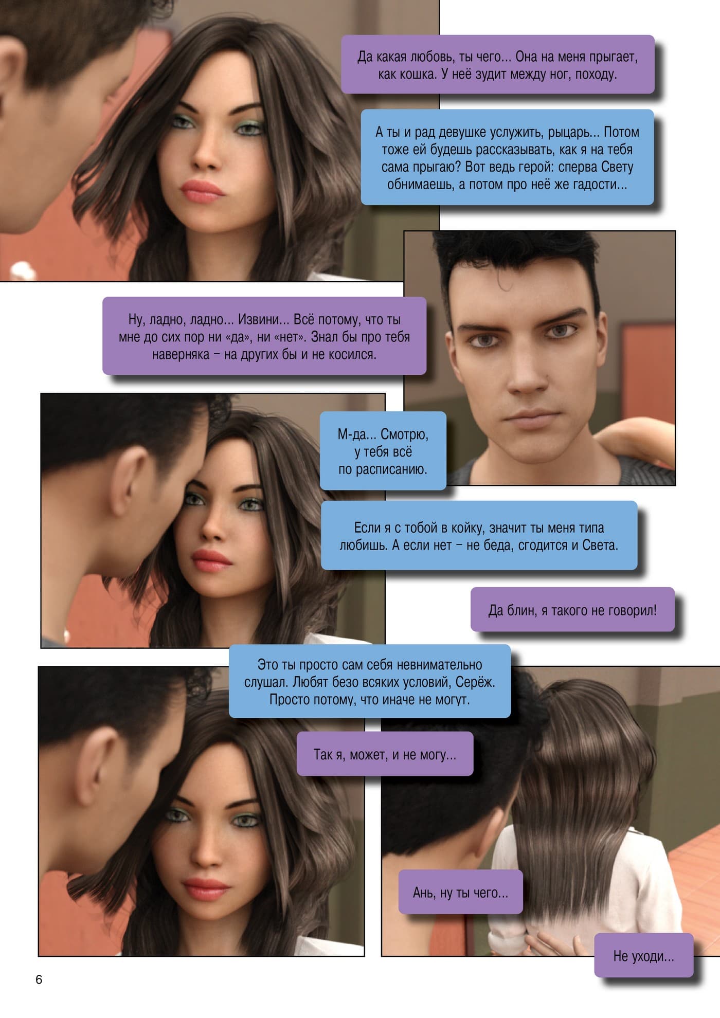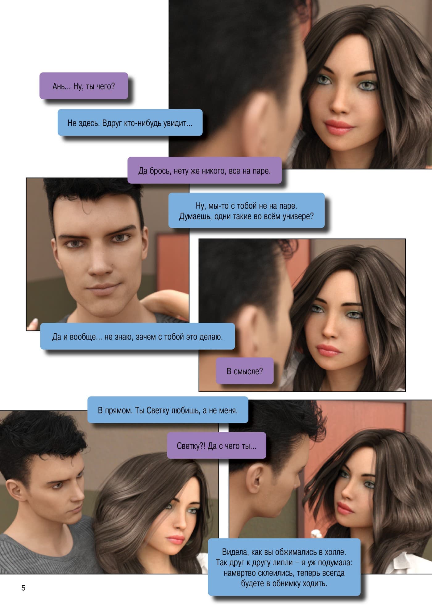 Порно комикс «Шанс для двоих» расскажет одну историю девушки по имени Анна, которую парень с ее учебного курса прибалтывал на интимные отношения. Но, Сергей, так звали озабоченного хитреца, не просто хотел переспать с Аней. Он имел еще кое-какие планы, и вскоре вы поймете, почему название данного сексуального 3D произведения звучит, как «Шанс для двоих»…