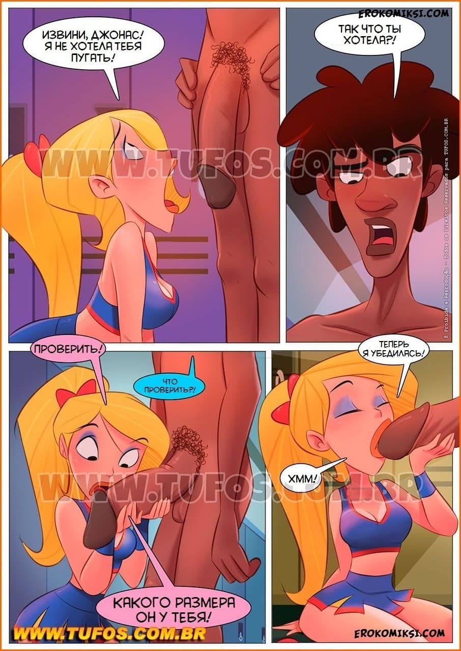 Откровенные и бесплатные эротические комиксы из серии «Школьная жизнь» по заказу для нашего сайта продолжаются. На этот раз действия разворачиваются около раздевалки, куда пошел баскетболист Джонас, проигравший в последней игре. Этот парень очень нравился Алине, но ее подруга сказала ей, что у него слишком большой член, и она просто не сможет из-за этого заняться с ним сексом. Слово за слово и между подружками произошел спор. Поэтому, дабы воочию убедиться в размерах «хозяйства» парня Алина потихоньку решила подглянуть за Джонасом, пока тот принимал душ. Сегодня парень все-таки кое-что выиграет!