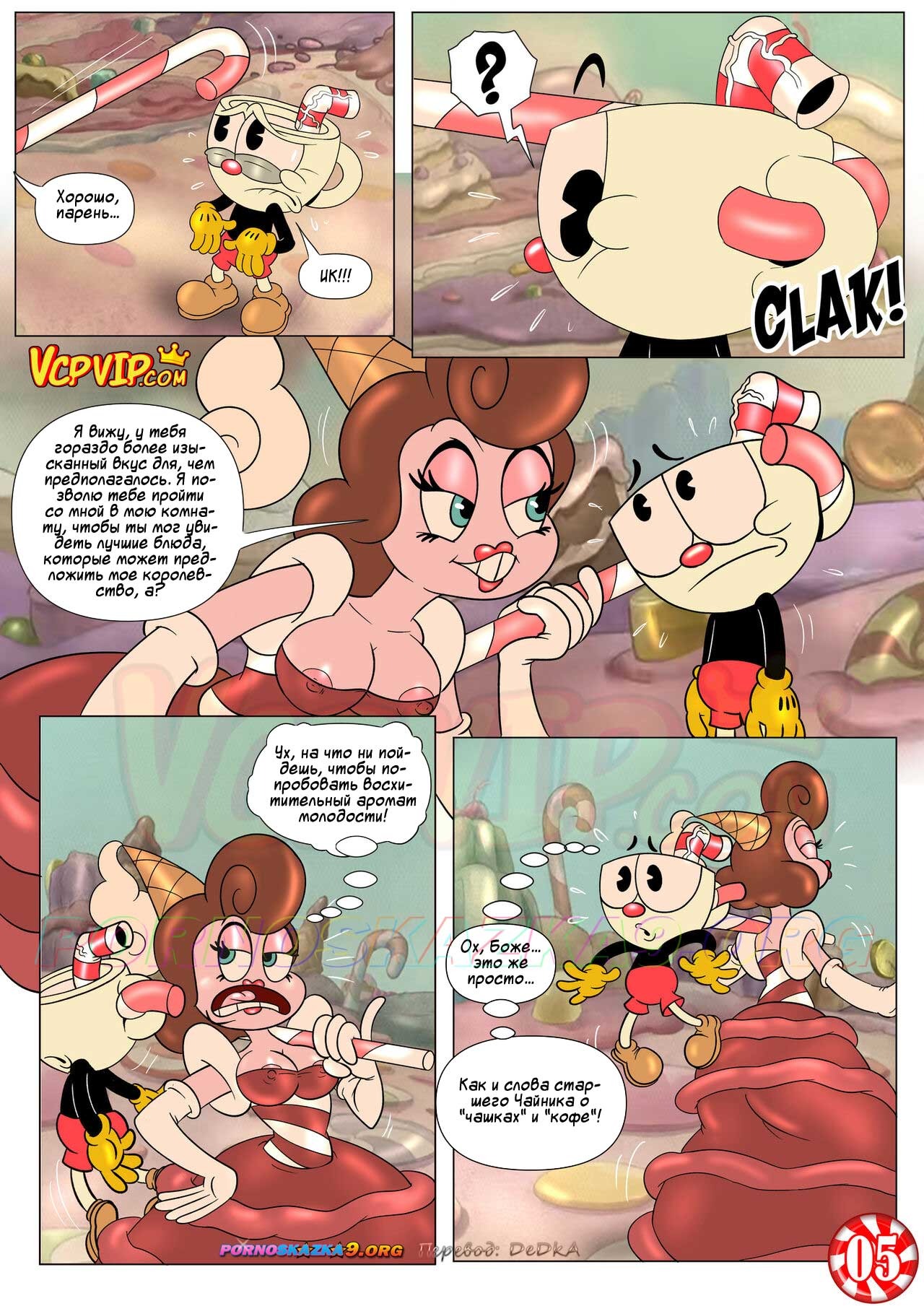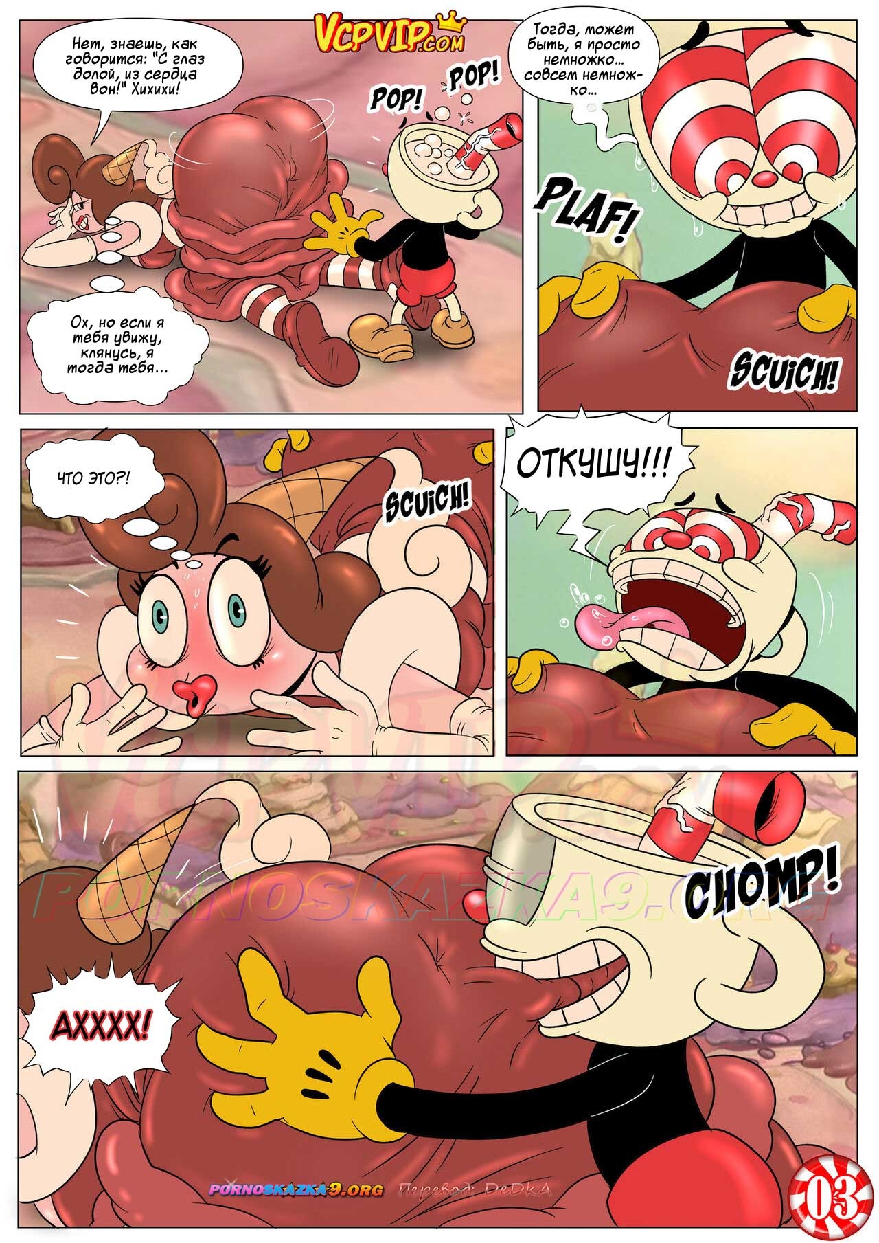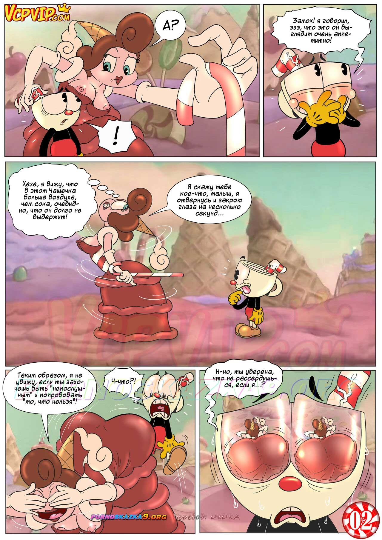 Порно комикс Шоу Чашека! Восхитительно сладкая конфетка. Секс пародия на американский мультипликационный телесериал «The Cuphead Show!» — «Шоу Чашека!» о приключениях озабоченного сексуальными желаниями импульсивного Чашека…