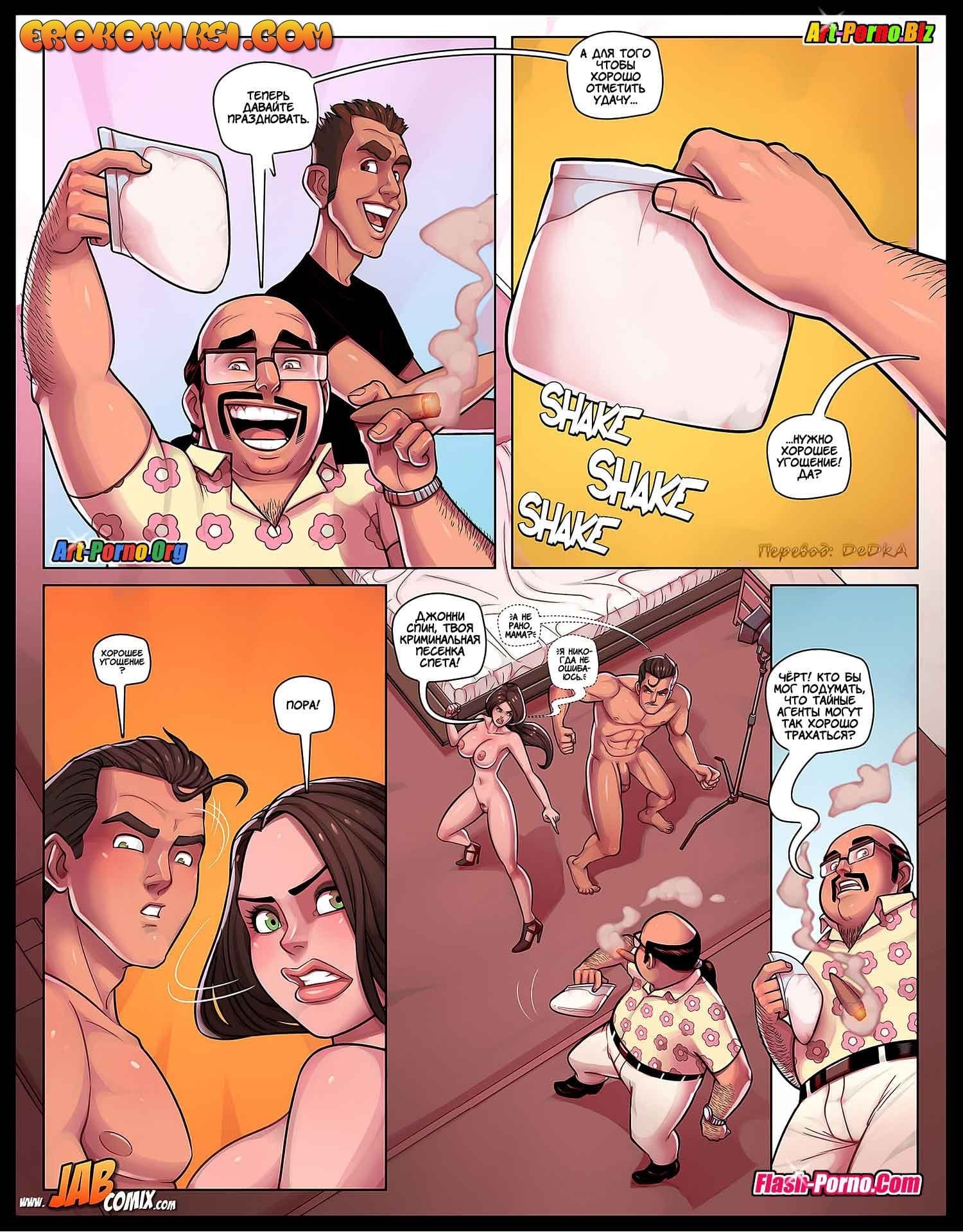 Порно комикс Шпионские игры начинается с того, что одному подготовленному шпиону Алексу дают сложное задание. Оно заключается в том, что ему необходимо собрать доказательства виновности местного наркодиллера, который, прикрываясь деятельностью своей порно студии, сбывает наркотики. Алекс под видом порноактера внедряется туда, но, когда в первый день съемок ему показывают партнершу, которую он должен трахать, Алекс понимает, что это его собственная мамаша. Зрелая женщина также работает агентом под прикрытием, и у нее такое же задание, как у сына. Раздумывая над тем, как выкрутиться и не провалить секретную операцию, дама успокоила себя мыслью, что во время съемки у Алекса просто не встанет член на собственную мать и ей предоставят другого партнера. Но, все же, как же ошибалась взрослая и очень аппетитная женщина…